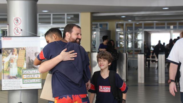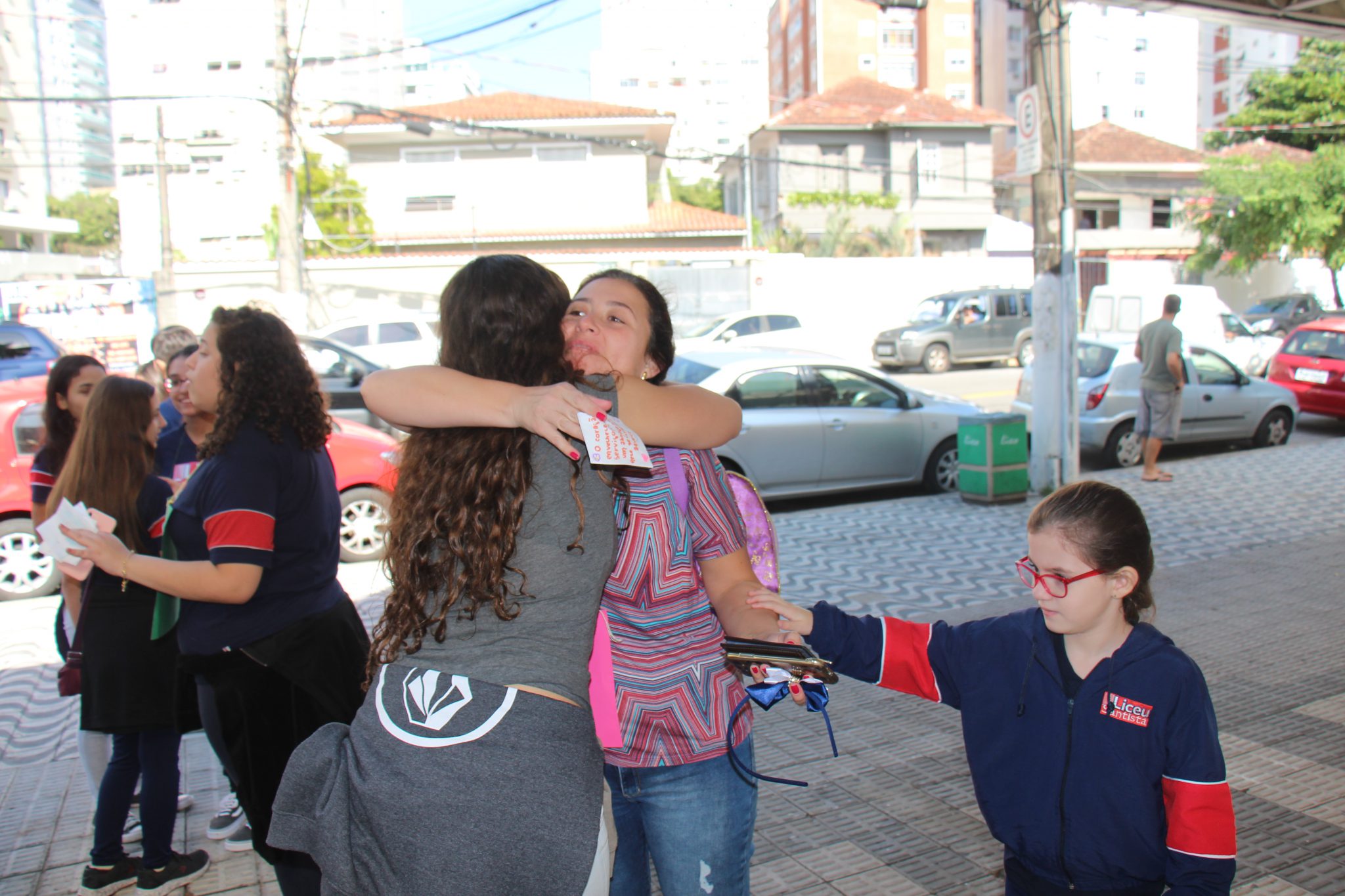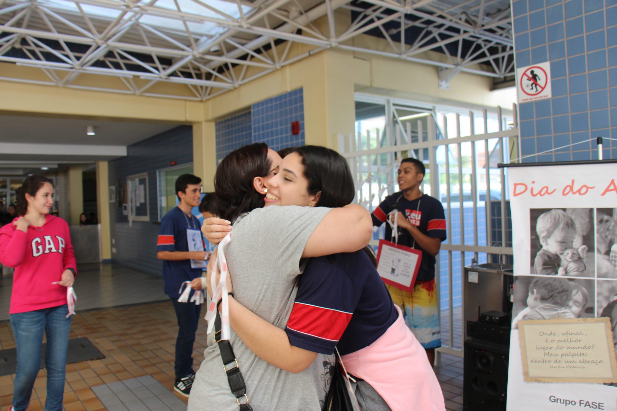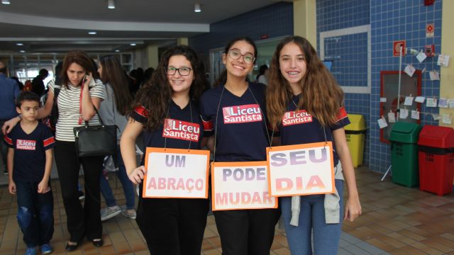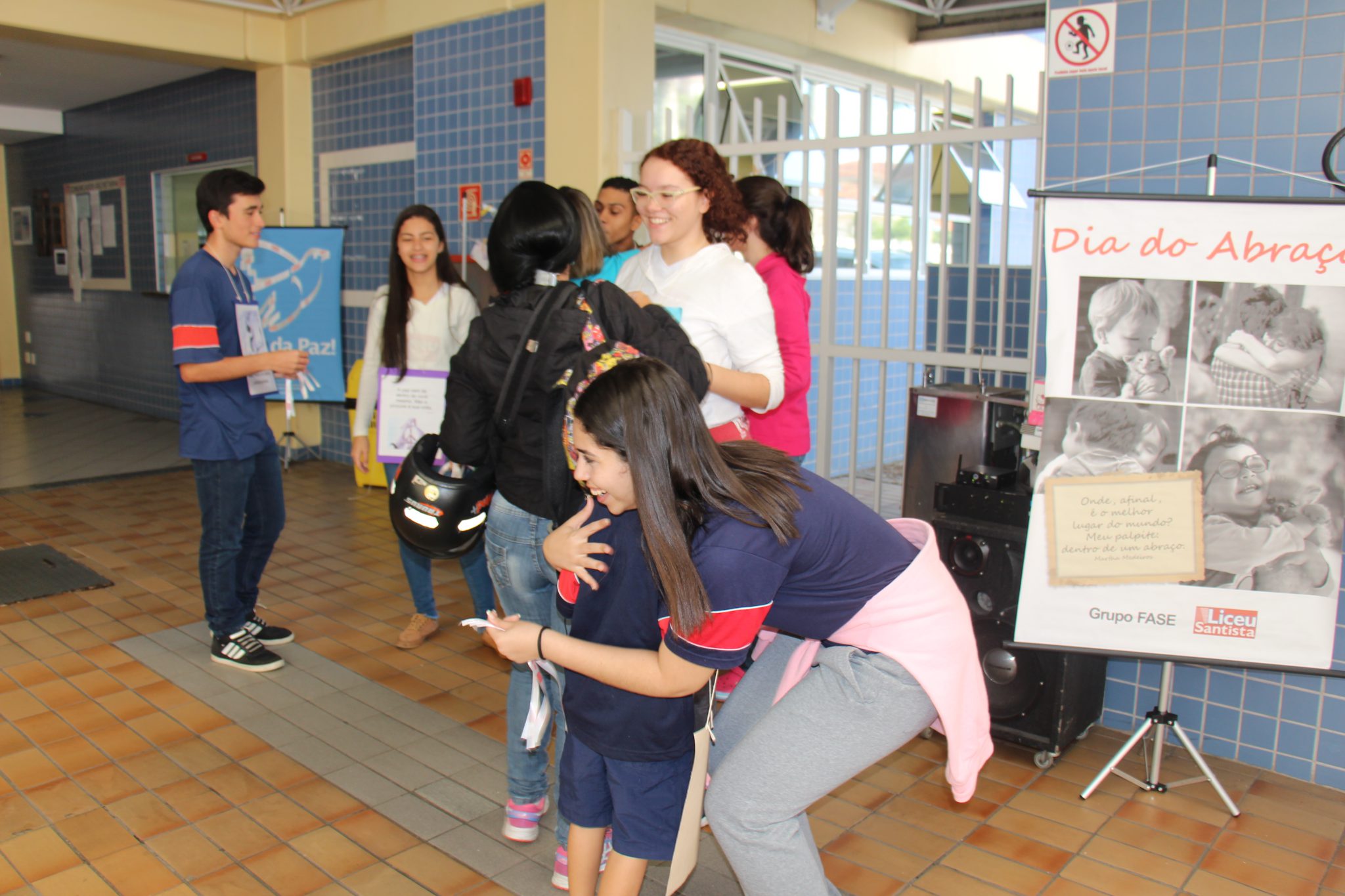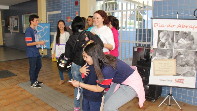 Um grupo de alunos dos Ensinos Fundamental e Médio que participa do grupo FASE (Falando Sério) preparou uma ação especial na terça-feira, 22 de maio, para comemorar o Dia do Abraço. Durante toda a manhã, os liceístas surpreenderam a comunidade com essa manifestação de carinho, mostrando que é possível trazer mais cordialidade para o dia a dia com um simples e poderoso gesto de afeto. Eles abraçaram e foram abraçados.