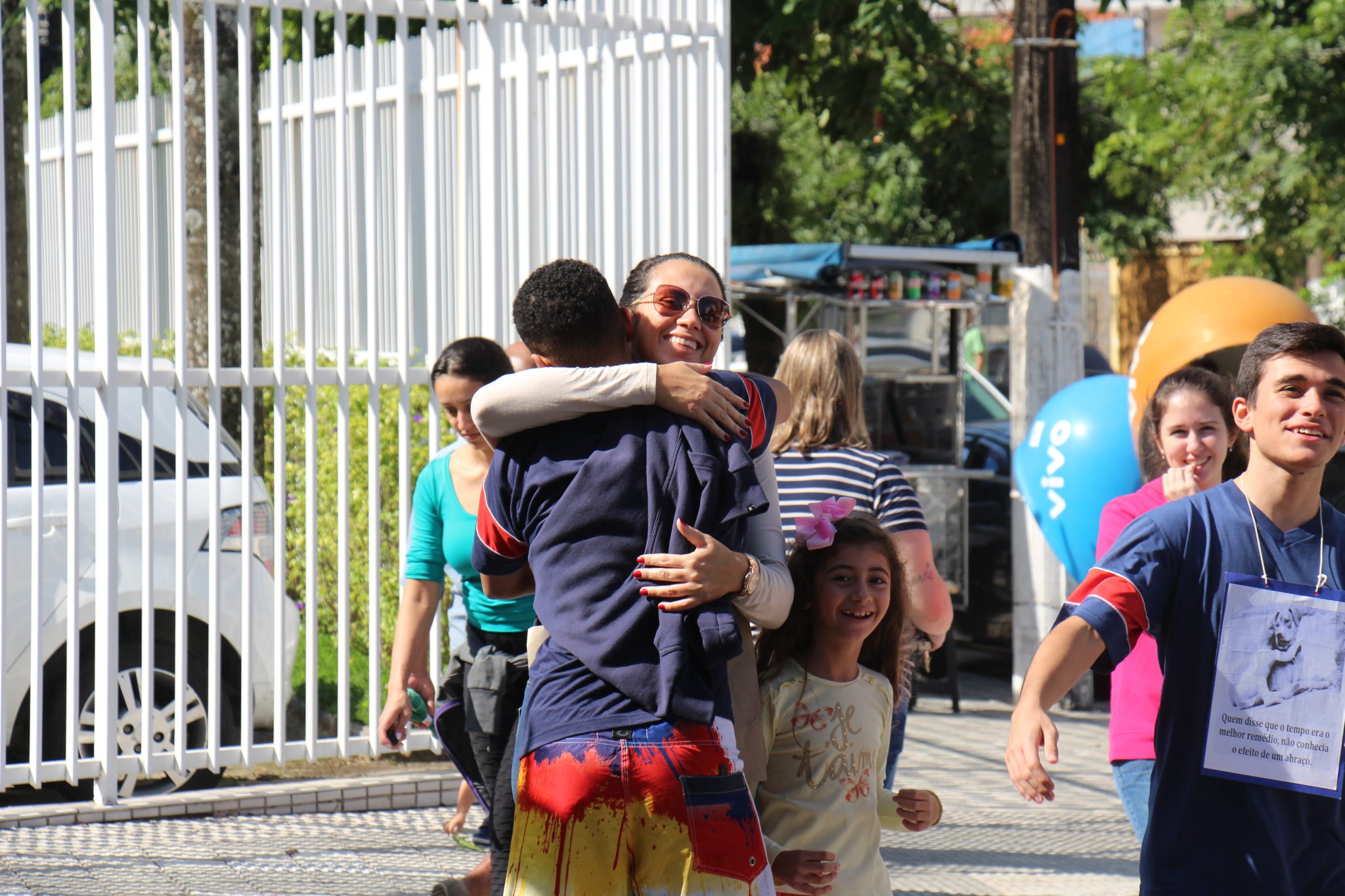 “Acreditamos que é possível firmar comportamentos positivos por meio do carinho, da atenção, do respeito e da tolerância. O abraço é uma forma de demonstrar amizade e o desejo de que a pessoa seja feliz”, reitera o coordenador de Pastoral, Sérgio Pereira Nogueira Júnior.