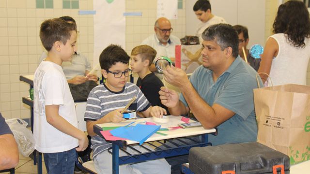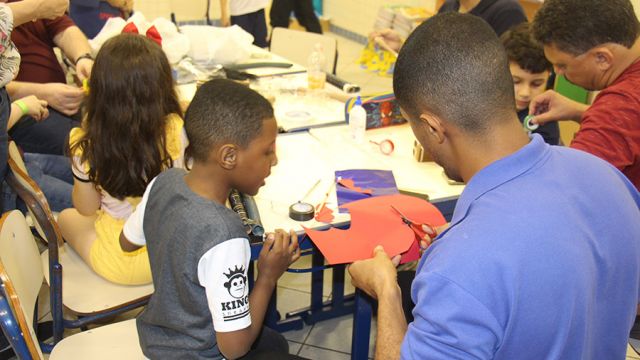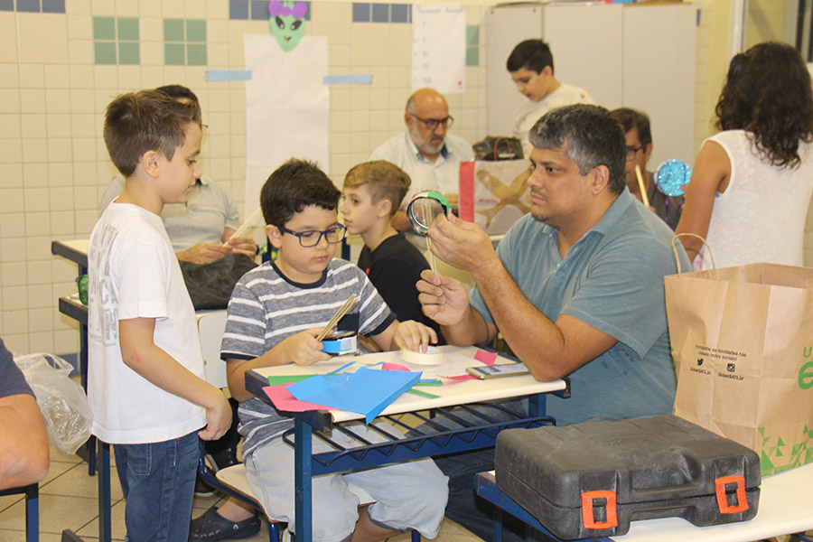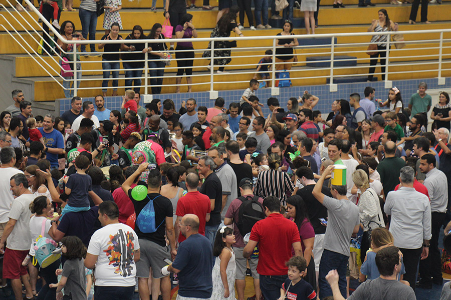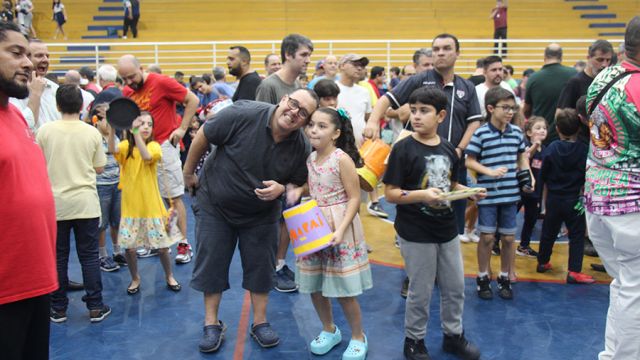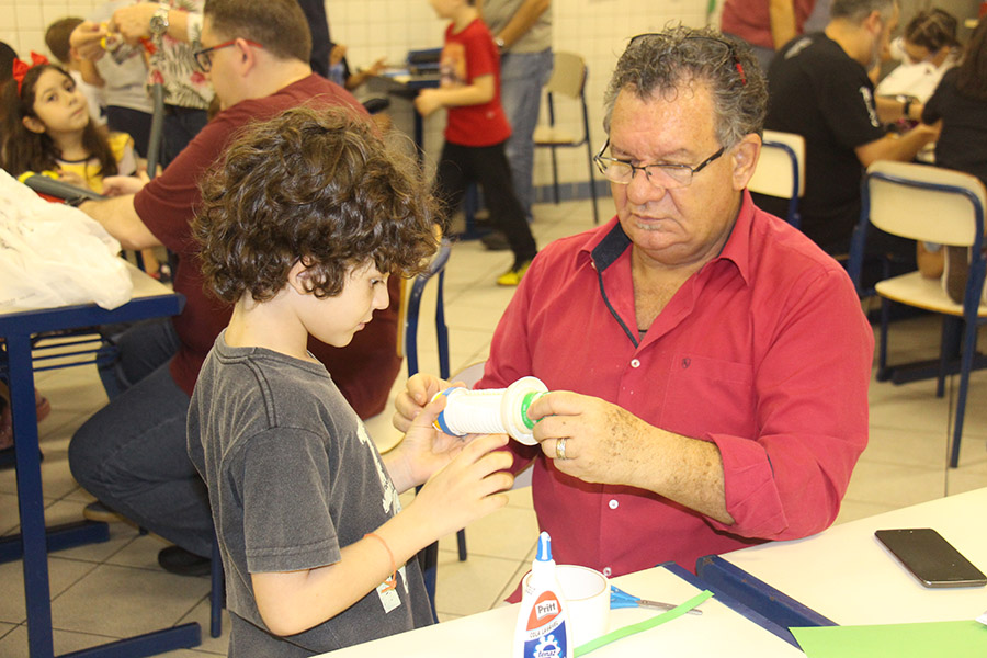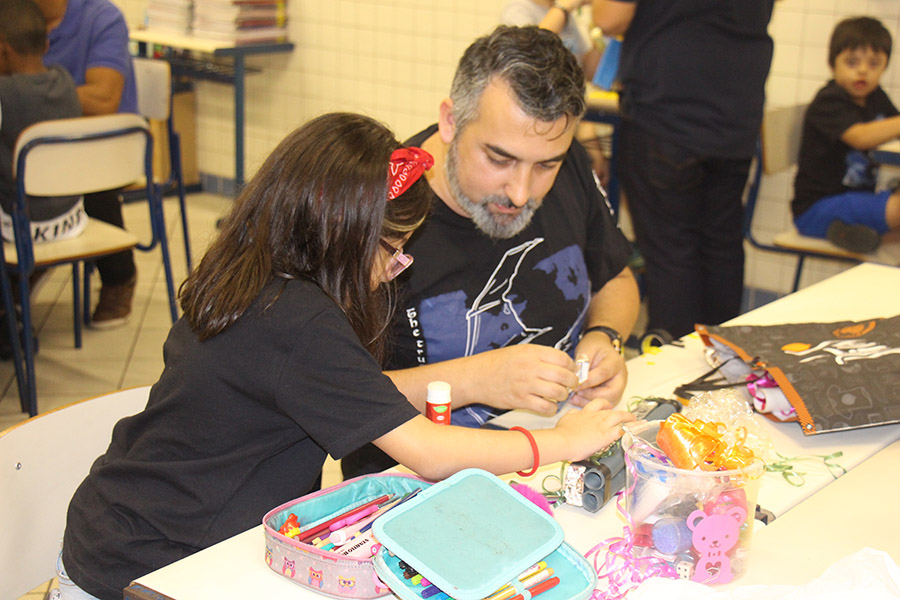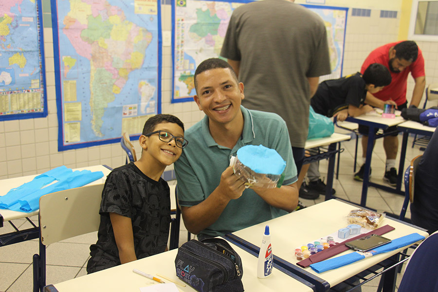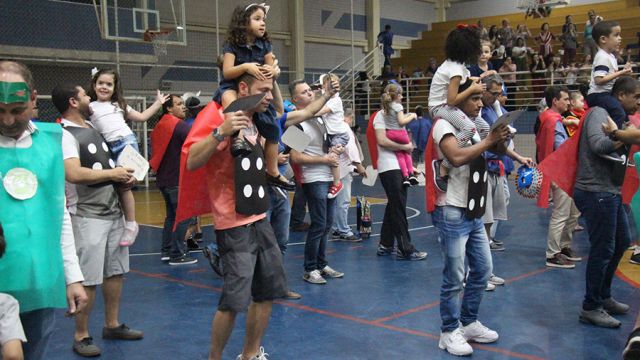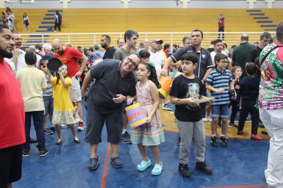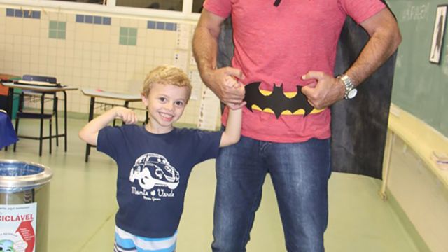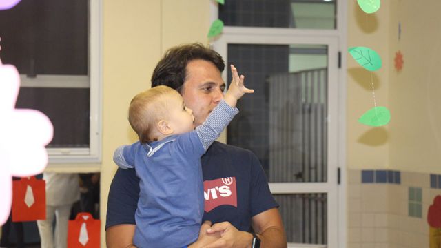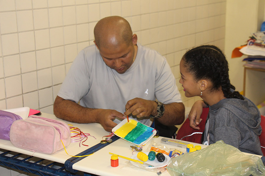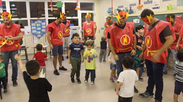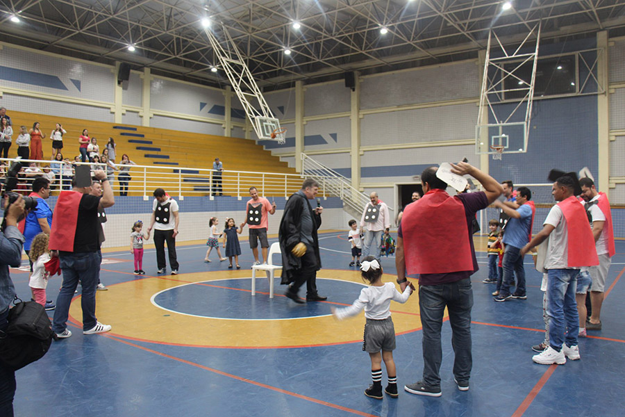 Pai, avô, tio, padrinho, mãe que também é pai também se divertiram confeccionando instrumentos de percussão utilizando materiais reciclados. De posse de seus pandeiros, reco-recos, caixas e tamborins artesanais, eles deram início a uma divertida apresentação que culminou com a chegada especial de integrantes da bateria da Escola de Samba União Imperial, sob o comando do mestre Fabio Manguinha. Com participação especial da professora Jacqueline Fernandes, as crianças entoaram a canção “Amor perfeito”, de Roberto Carlos.