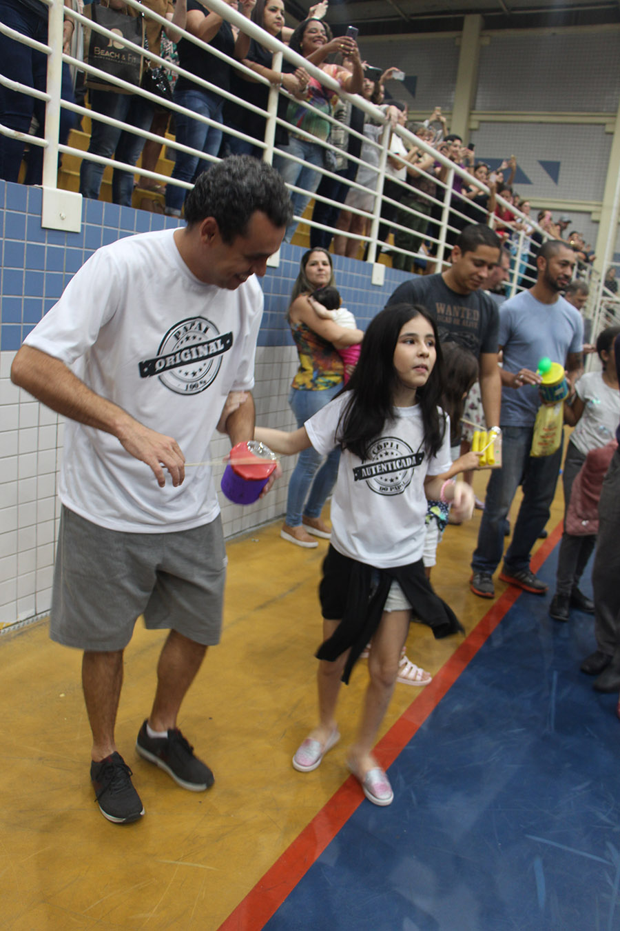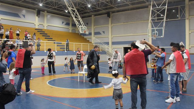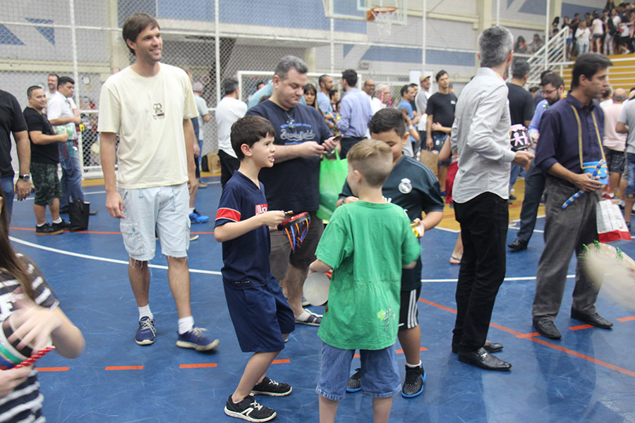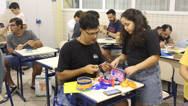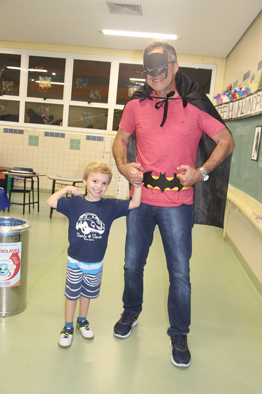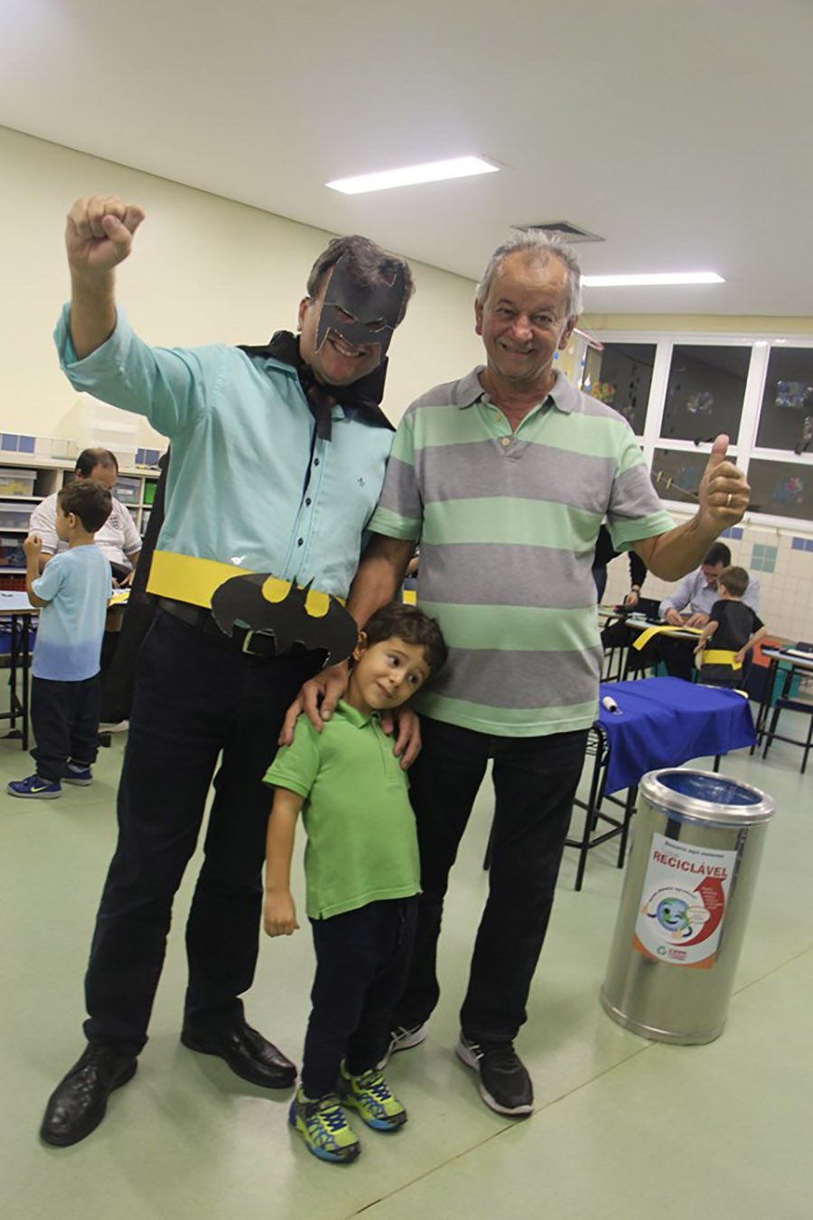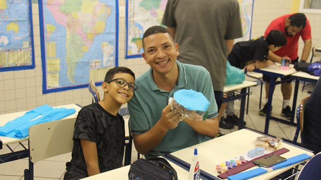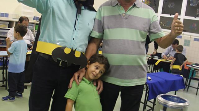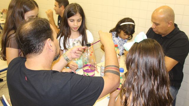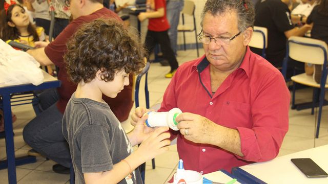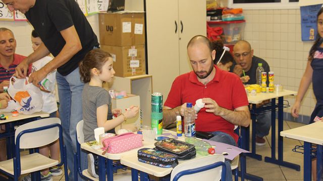 Pai, avô, tio, padrinho, mãe que também é pai também se divertiram confeccionando instrumentos de percussão utilizando materiais reciclados. De posse de seus pandeiros, reco-recos, caixas e tamborins artesanais, eles deram início a uma divertida apresentação que culminou com a chegada especial de integrantes da bateria da Escola de Samba União Imperial, sob o comando do mestre Fabio Manguinha. Com participação especial da professora Jacqueline Fernandes, as crianças entoaram a canção “Amor perfeito”, de Roberto Carlos.