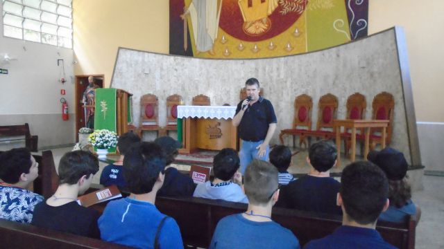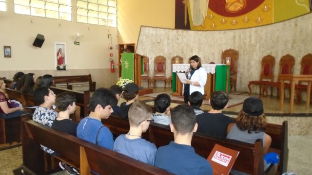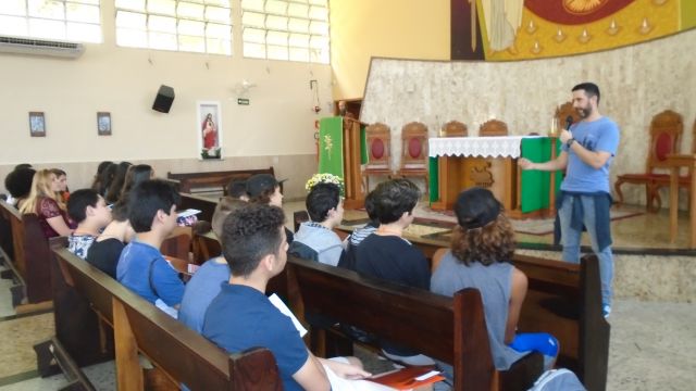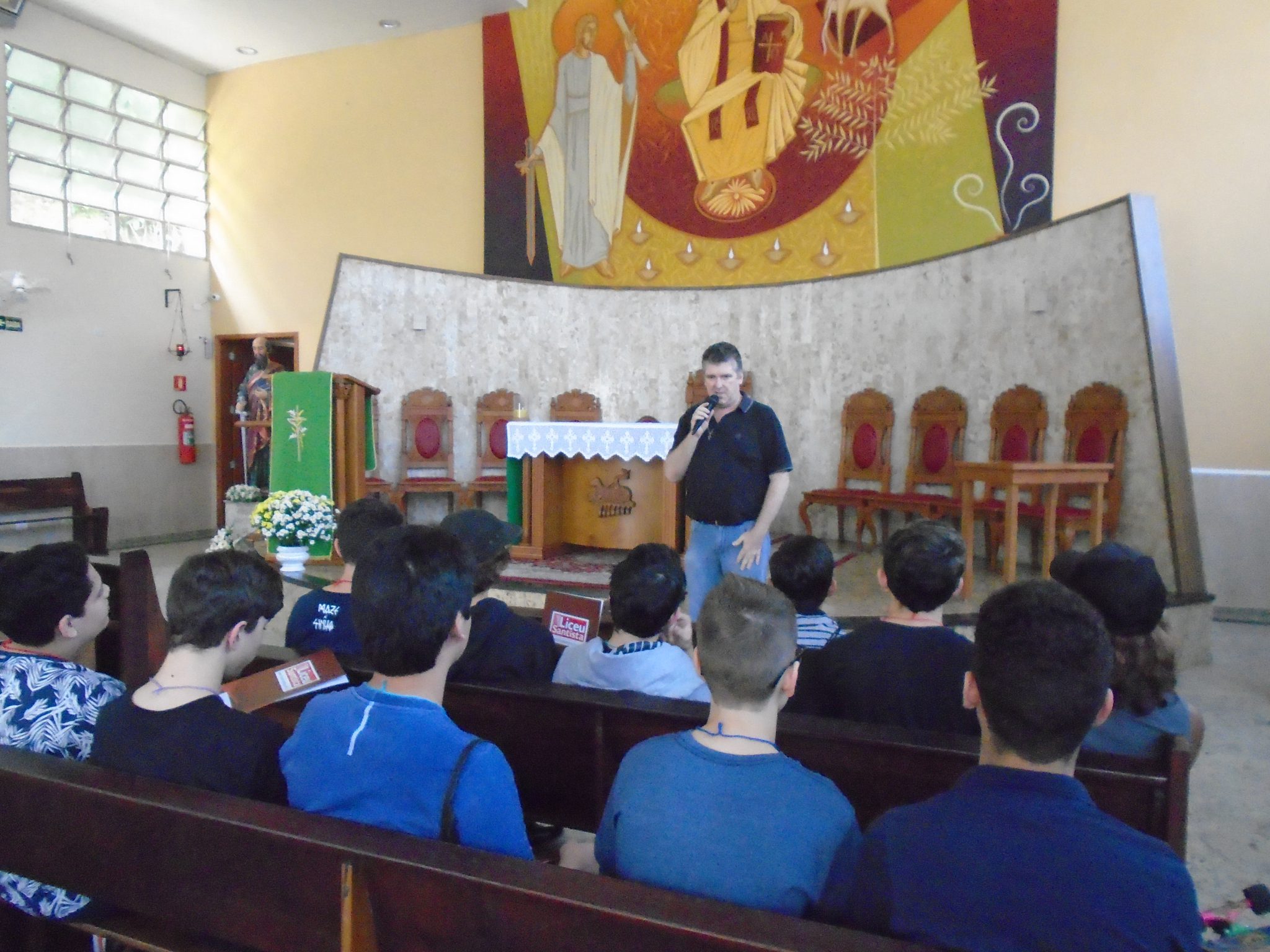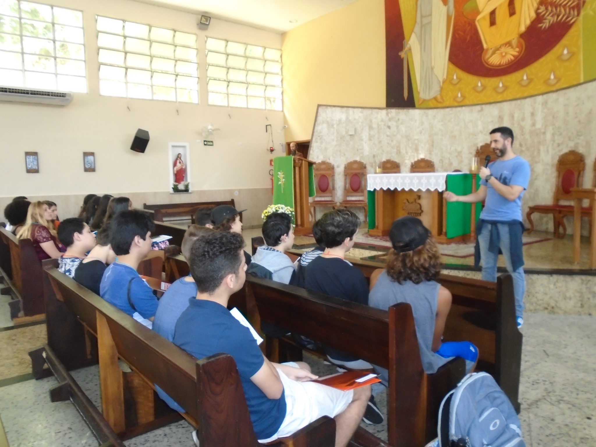 Um dia inteiro dedicado à reflexão, às lembranças, à alegria e, acima de tudo, ao fortalecimento de vínculos como amizade, respeito e amor ao próximo. Assim foi o dia 9 de outubro para os alunos do 1º ano do Ensino Médio que participaram do Encontro de Jovens na Paróquia São Paulo Apóstolo. A diretora Cláudia Cristina T.M. Santiago e o coordenador do Ensino Médio Lucas Lamosa participaram da abertura do encontro.