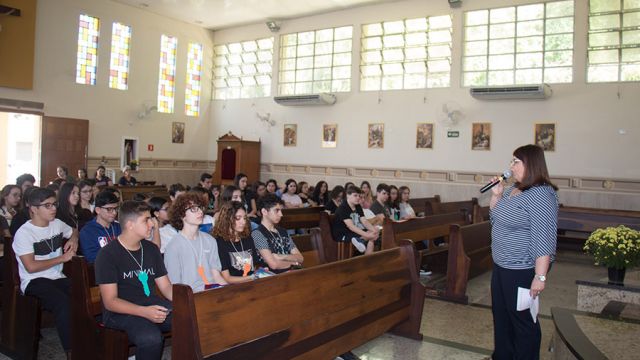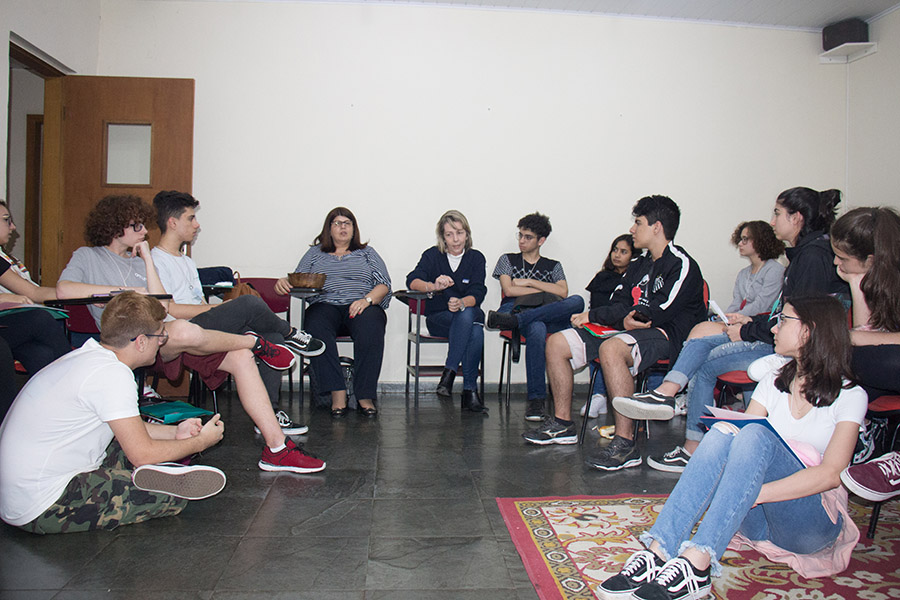 A psicóloga Luciana França Cescon conversou com os alunos sobre depressão e como reconhecer os seus sintomas em si mesmo e no outro. Romper a barreira da vergonha e pedir ajuda, oferecer-se para ouvir sem julgar o que o outro falar e compreender que a dor de um é diferente da dor do outro foram alguns dos pontos abordados por ela.
