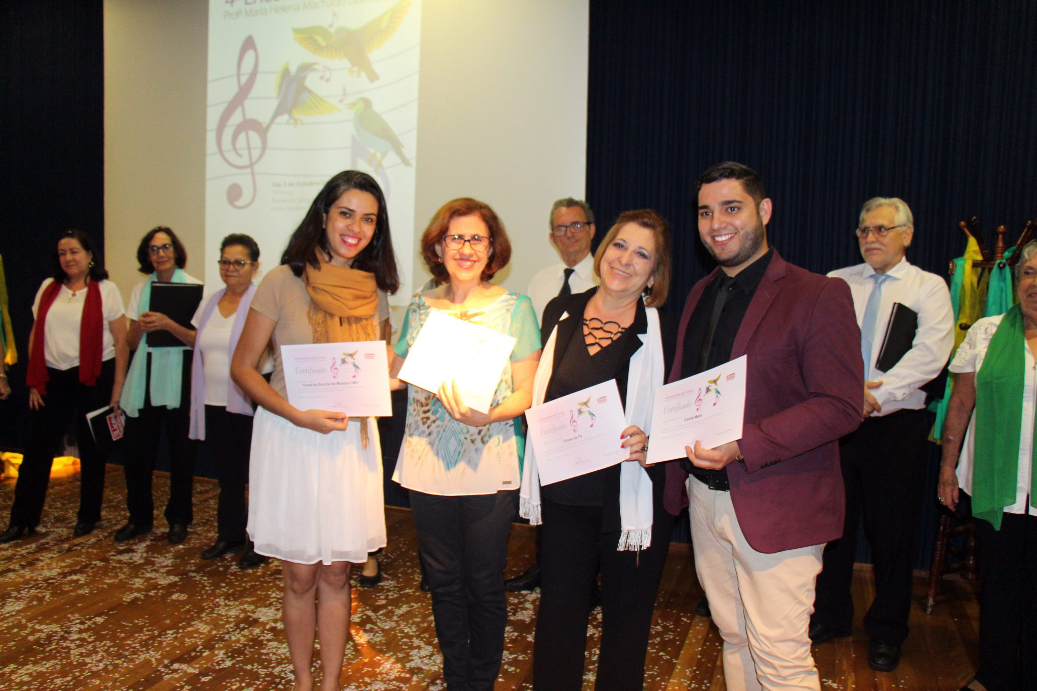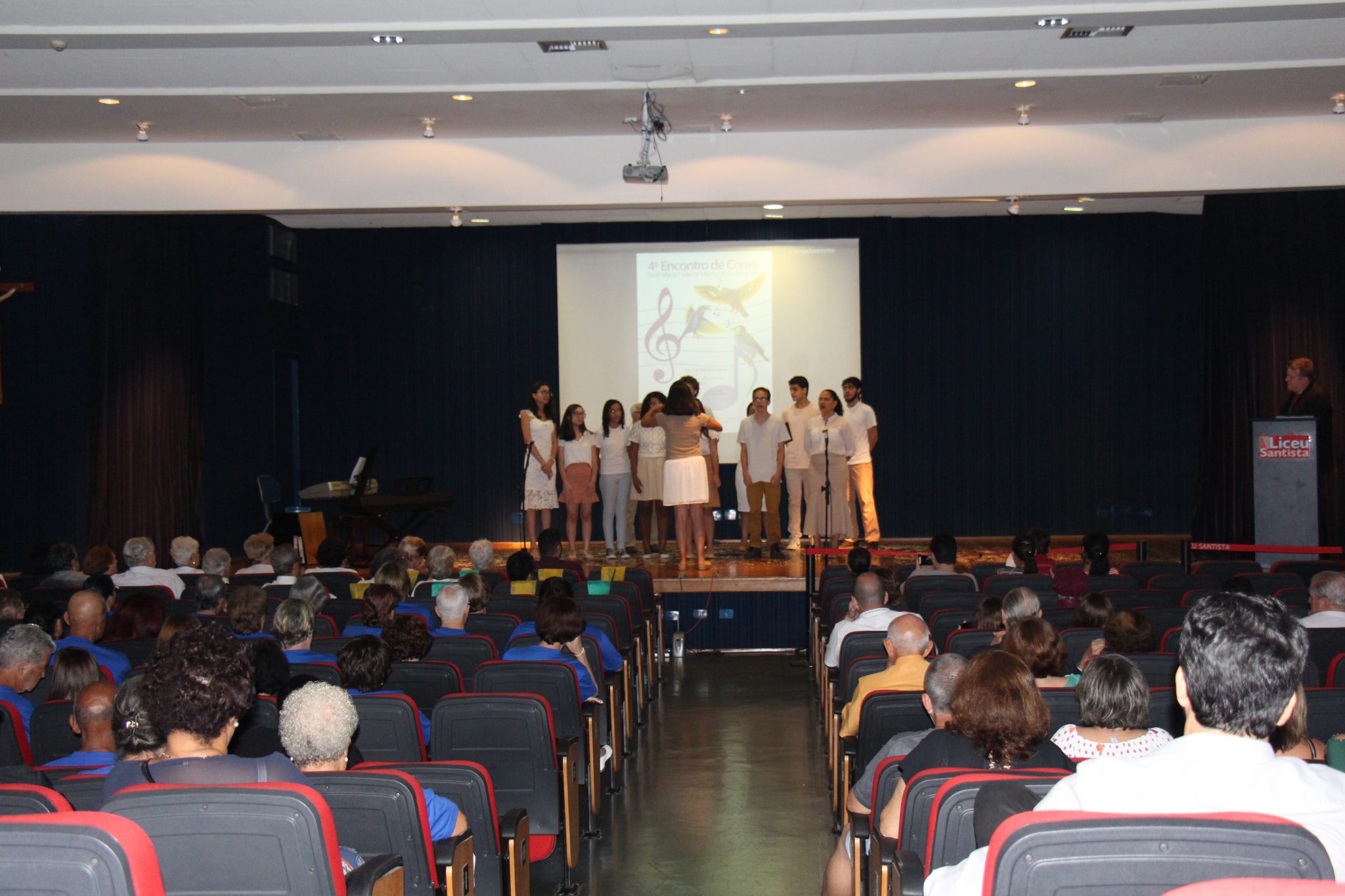 A paz foi a inspiração para as canções apresentadas no 4º Encontro de Corais Profª Maria Helena Machado Guimarães, que reuniu quatro grupos vocais no auditório Santa Bakhita. Além do coral anfitrião, o Canta Mais, do Liceu Santista, outros três se apresentaram no evento, que homenageia a ex-diretora do Liceu Santista: Vozes da Fé, Coral da Escola CMV e Univozes.
