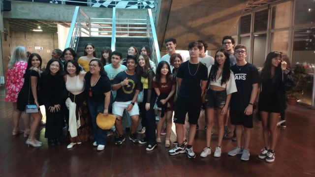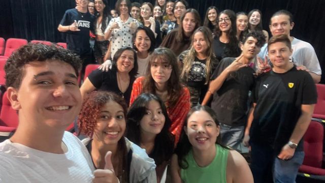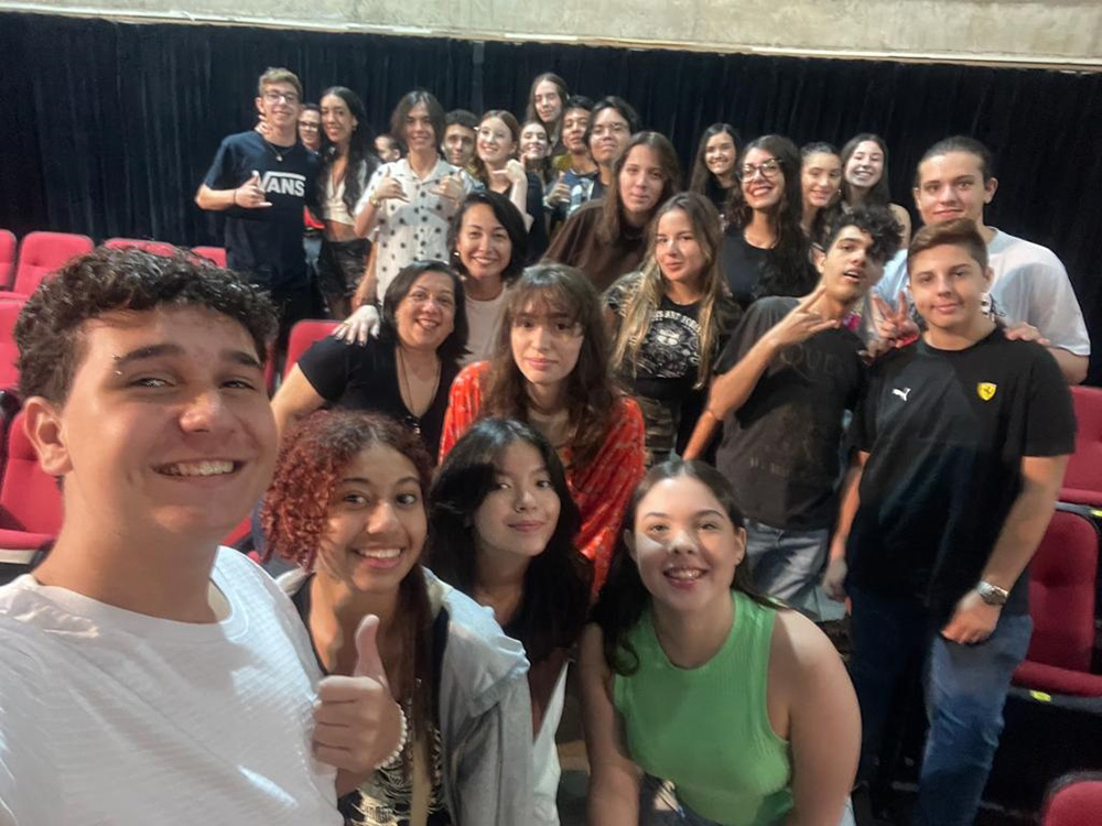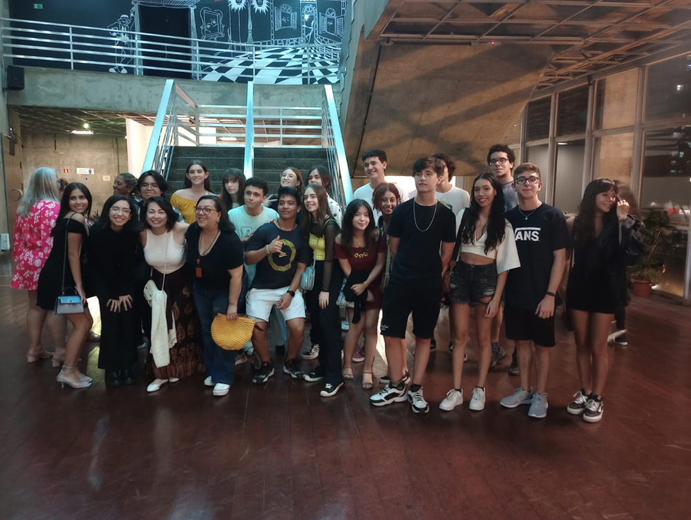Acompanhados pelas professoras Cláudia Heloísa Andria, de Literatura, e Andréa Gameiro, de Arte, os estudantes do Ensino Médio tiveram a oportunidade de assistir à encenação da obra “Quincas Borba”, de Machado de Assis, em uma adaptação do Grupo Trapiche no Teatro Municipal de Santos.