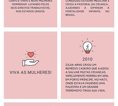 Após a realização de pesquisas sobre a vida e atuação de cada uma delas, e com o auxílio das respectivas professoras, cada turma elencou os tópicos considerados mais importantes para a produção dos banners, que podem ser visualizados abaixo. Clique para ampliá-los.