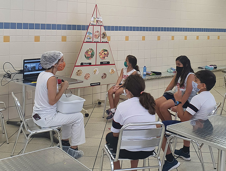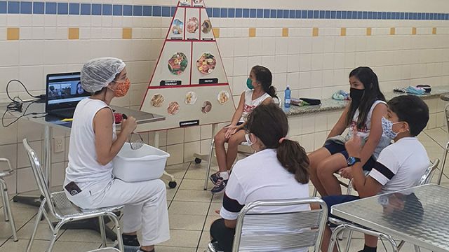 As aulas de culinária com a nutricionista Carina Schena sempre chamaram a atenção dos estudantes do 1º ao 5º ano do Ensino Fundamental que frequentam o Período Ampliado. Não apenas pelas receitas especiais escolhidas para essa faixa etária, mas também pela alegria das crianças de colocarem as mãozinhas na massa e fazerem elas mesmas as preparações.