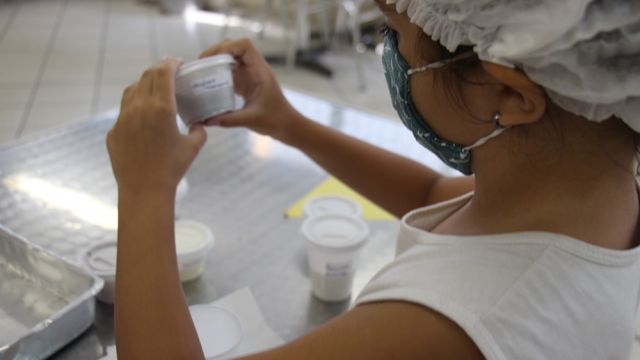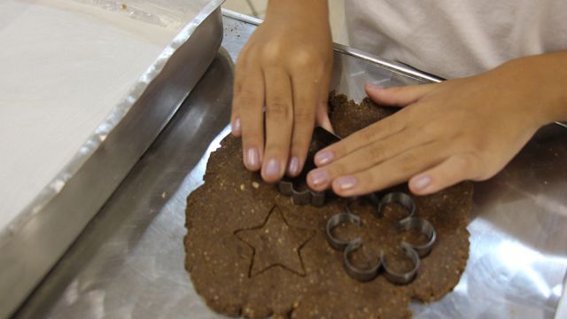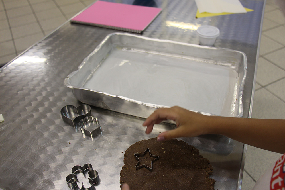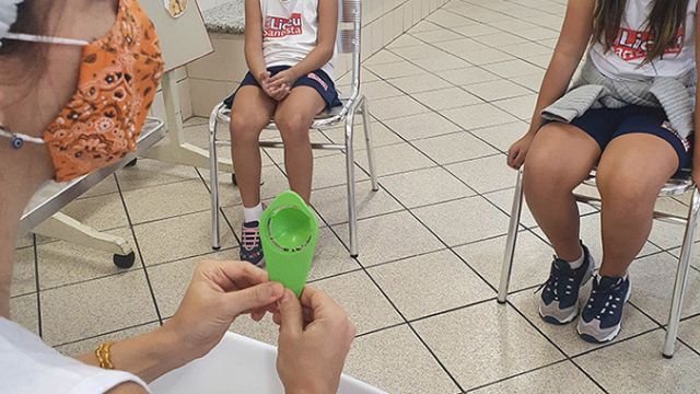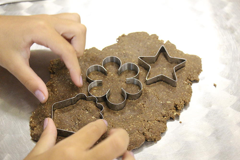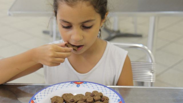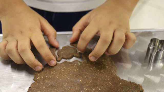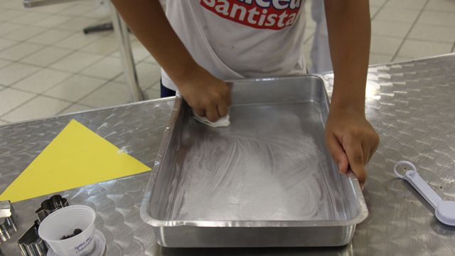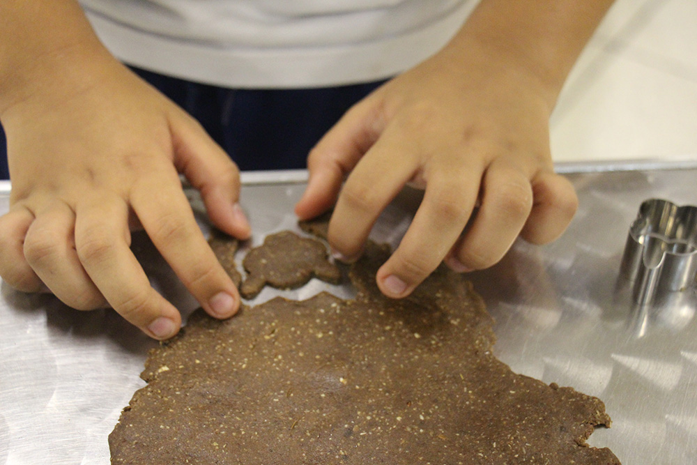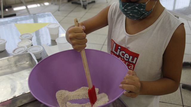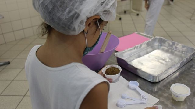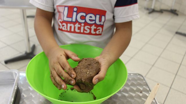 A partir daí, seguindo a orientação da nutricionista, os estudantes foram misturando os itens para fazer a massa, untaram as fôrmas, usaram os cortadores para moldar os biscoitos. Para Carina, incentivar a participação dos estudantes na preparação de receitas estimula uma cultura de alimentação saudável, autonomia, além de possibilitar o fazer e o experimentar de maneira prazerosa, organizada e segura. “Quando são as próprias crianças que fazem as receitas, o envolvimento é diferente. Elas ficam orgulhosas de terem produzido e felizes com o resultado”.