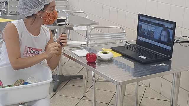 A aula inaugural da culinária do Período Ampliado, com liceístas participando da aula na escola e em casa assistindo on-line, foi para apresentar-lhes os equipamentos que são utilizados na cozinha para a preparação de refeições. Os estudantes conheceram o misturador de massa, separador de gemas, conjunto de medidores, espátulas, amassador de batatas, rolo de abrir massa, ralador de legumes, moldes para biscoitos, timer entre outros.