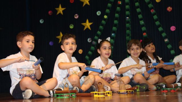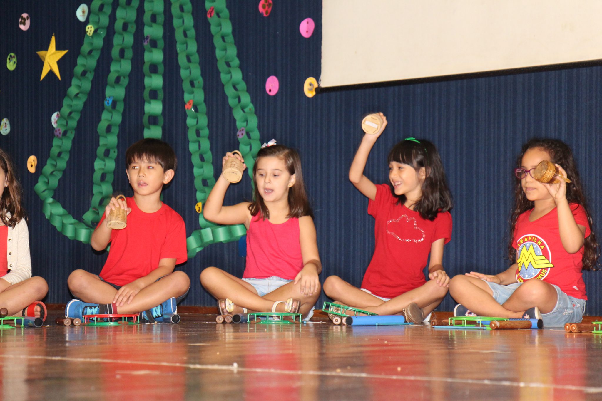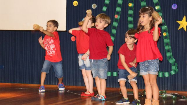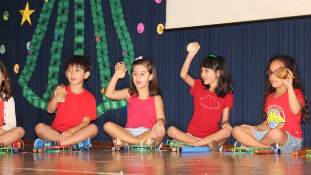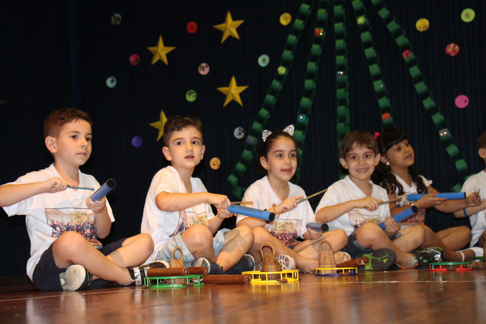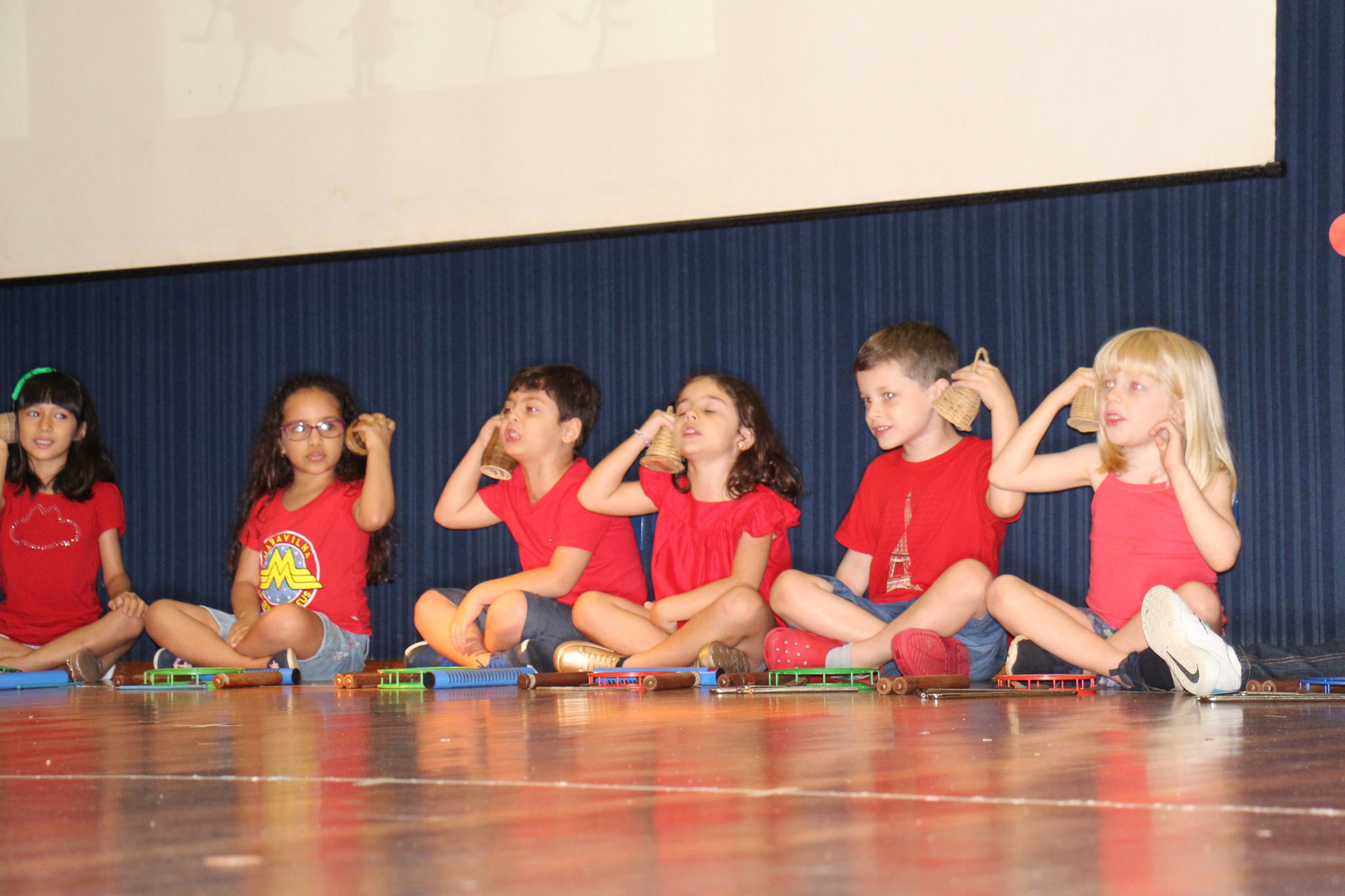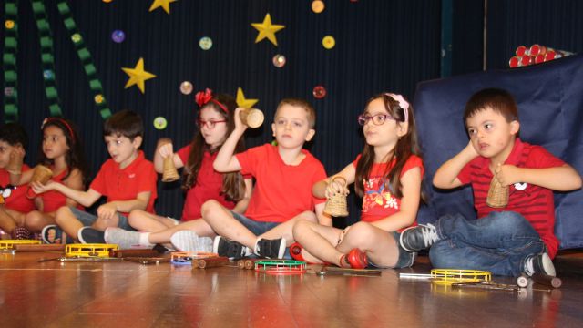 Por meio da música, é possível conhecer outras culturas e sonoridades. As as crianças do Grupo 3 foram descobrindo, de modo lúdico, elementos musicais, como timbres, intensidade, altura do som, relação pausa / som, andamento… O resultado foi uma apresentação encantadora.