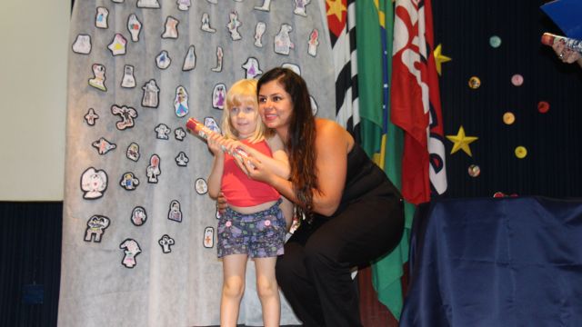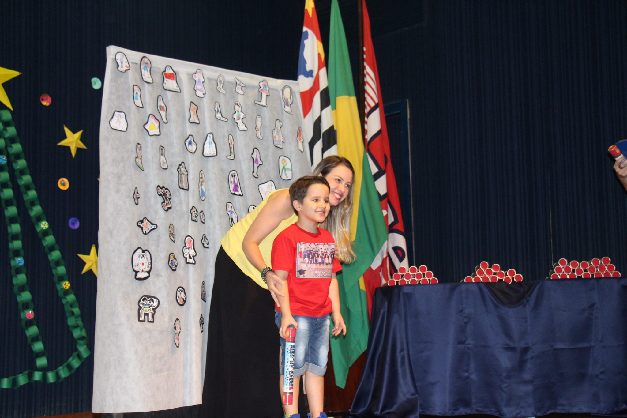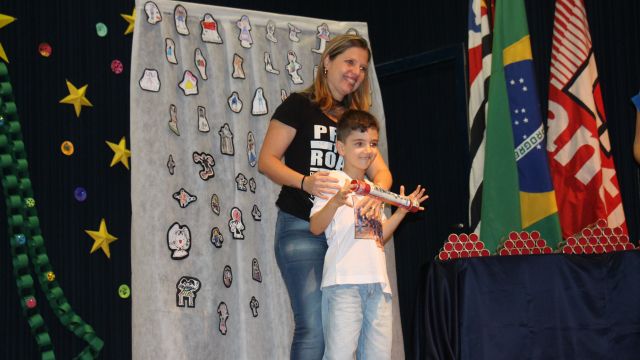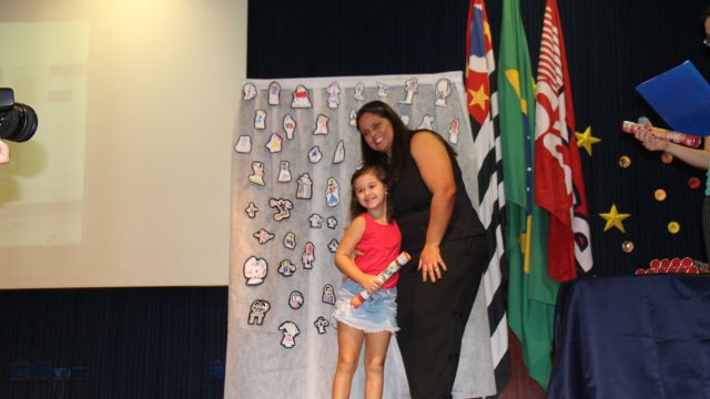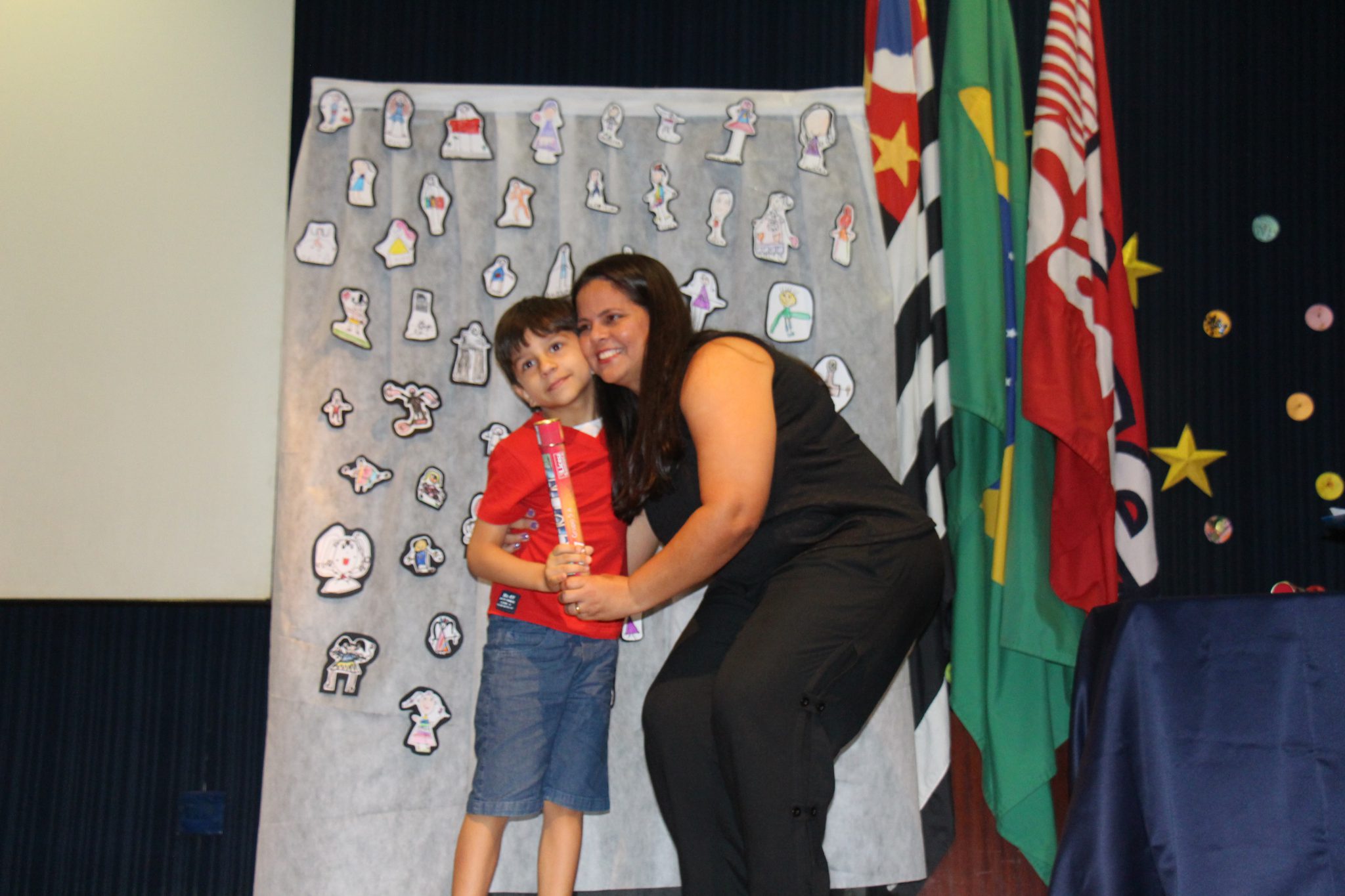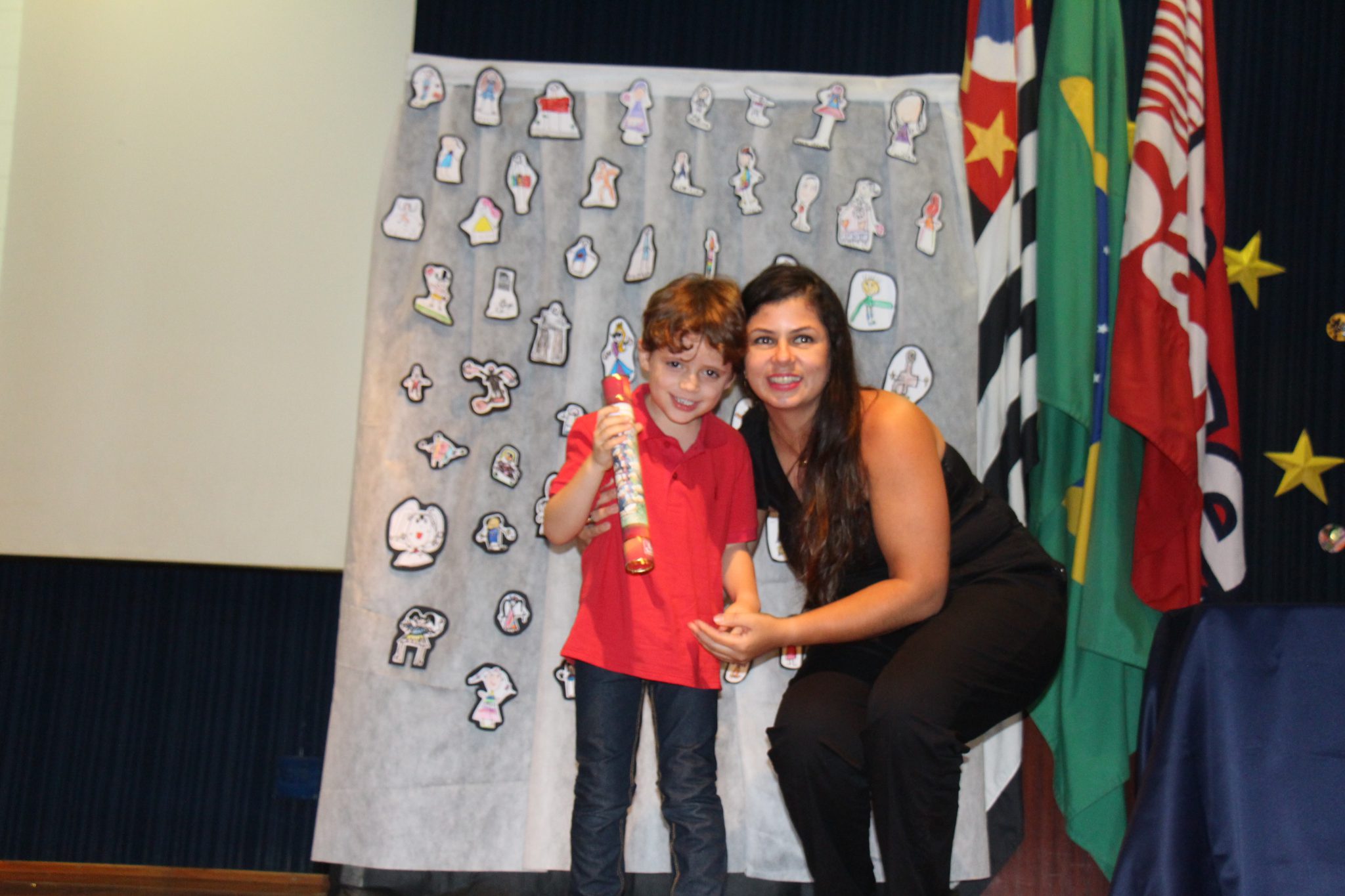 Para marcar a passagem das crianças da Educação Infantil para o 1º ano do Ensino Fundamental, foi realizada uma cerimônia com a entrega de canudos ilustrados com todas as classes.