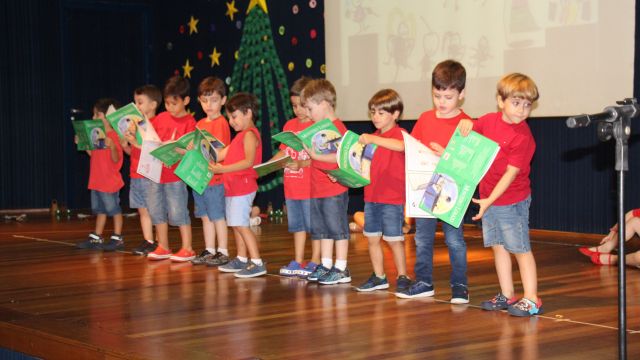 Canções intercaladas com poesias de Cecília Meireles, José Paulo Paes, Lalau, Sérgio Caparelli, entre outros, trouxeram graça e alegria para a apresentação dos alunos do Grupo 4. O escritor Monteiro Lobato foi homenageado pelas crianças, que se apresentaram para as famílias lembrando as aventuras dos personagens do Sítio do Pica Pau Amarelo.