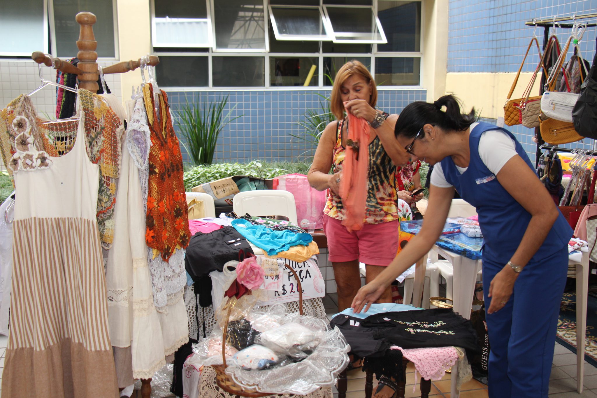 Destaque para o stand das vovós do projeto “Vamos Tricotar?”, que trará peças de tricô, como mantas, colchas, sapatinhos, gorros, cachecóis, entre outros. Há mais de 10 anos elas se dedicam ao trabalho voluntário no Liceu Santista, produzindo e doando as peças para hospitais e asilos da cidade.