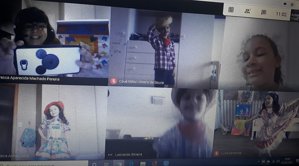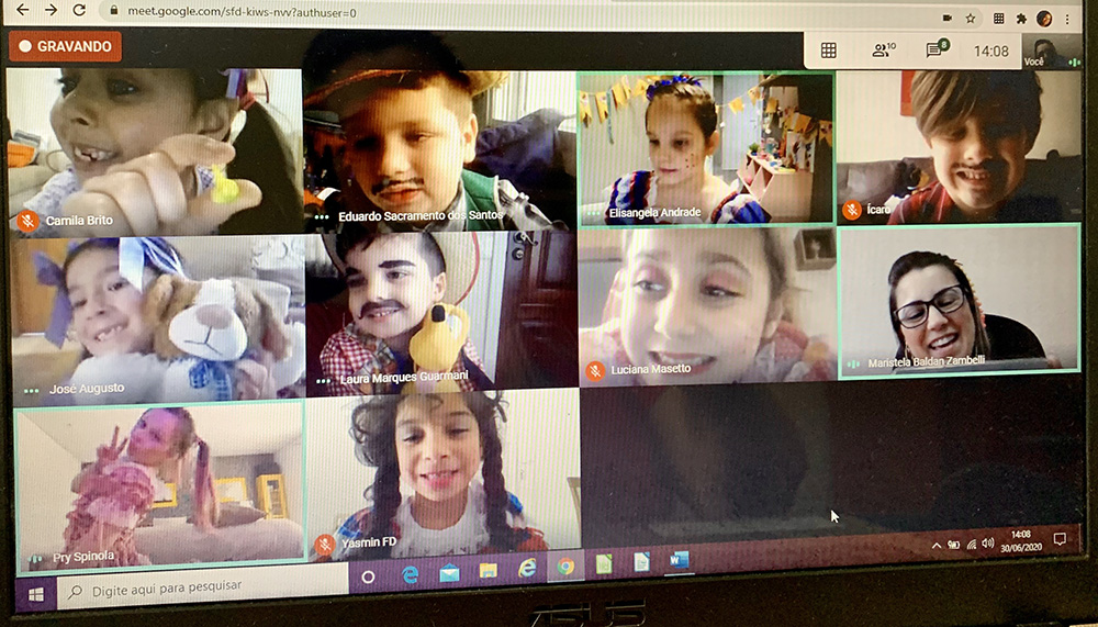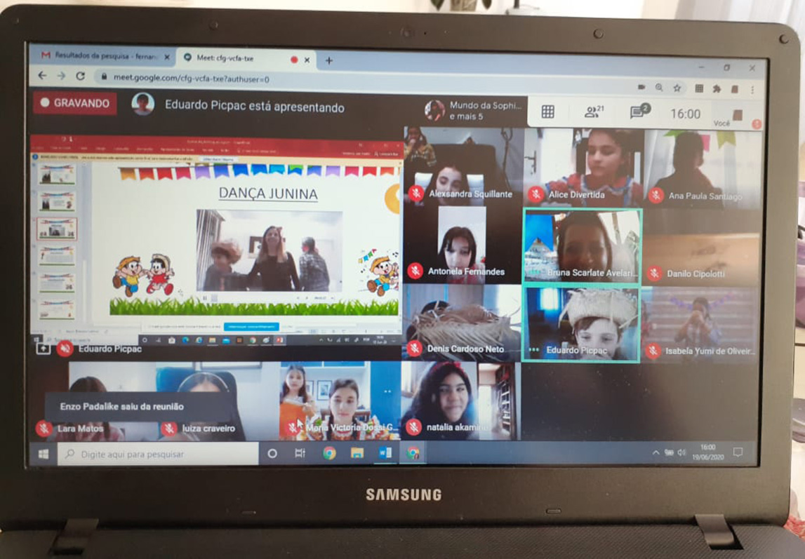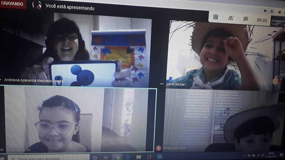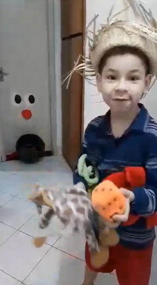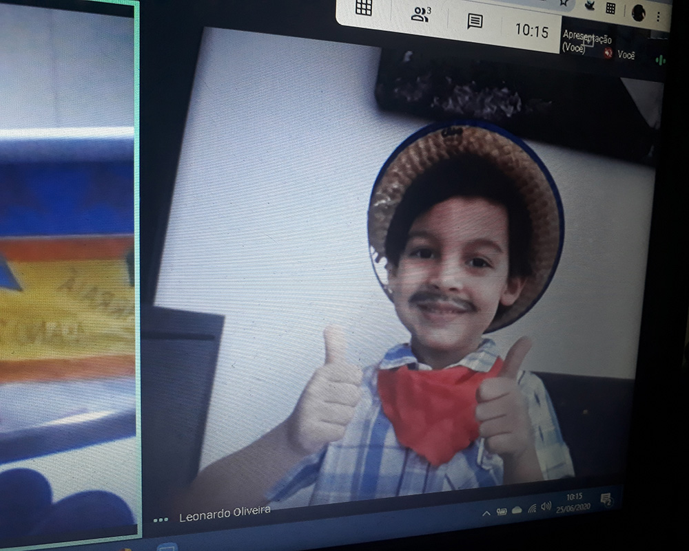 Este ano muita coisa mudou, outras foram adaptadas para barrar a propagação da Covid-19. A Festa Junina, por exemplo, aconteceu on-line e trouxe um novo jeito para a diversão. Não teve estalinho, pescaria e muitas comidinhas, mas não faltou alegria com uma gincana pra lá de animada que a turma do 1º ao 5º ano do Ensino Fundamental participou de casa.