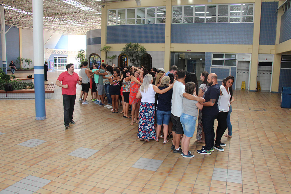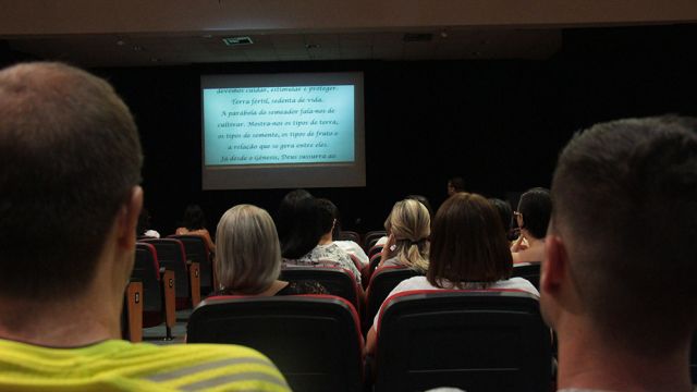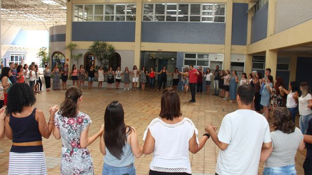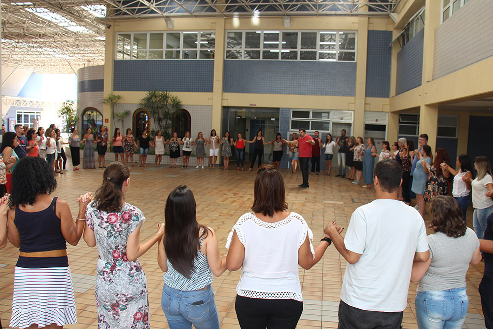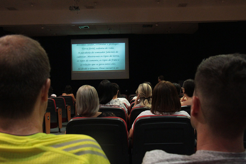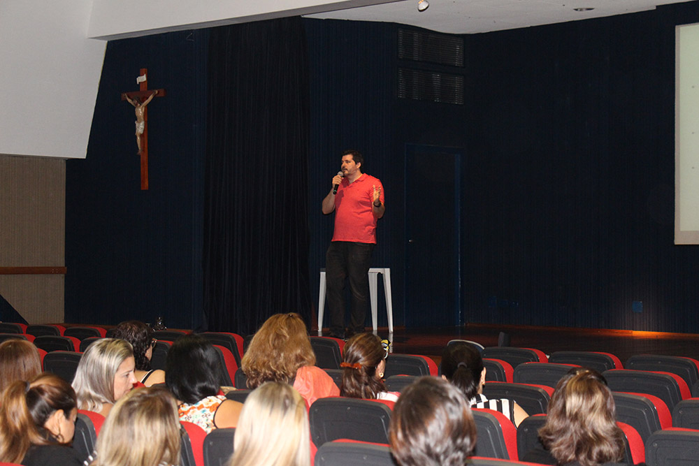 A cada dia, o coordenador de Pastoral, Sérgio Pereira Nogueira Júnior, fez a acolhida e a reflexão com os educadores, convidando-os a refletir o significado da vida, da partilha, do amor ao próximo.