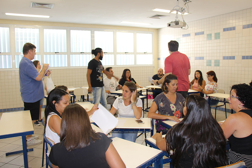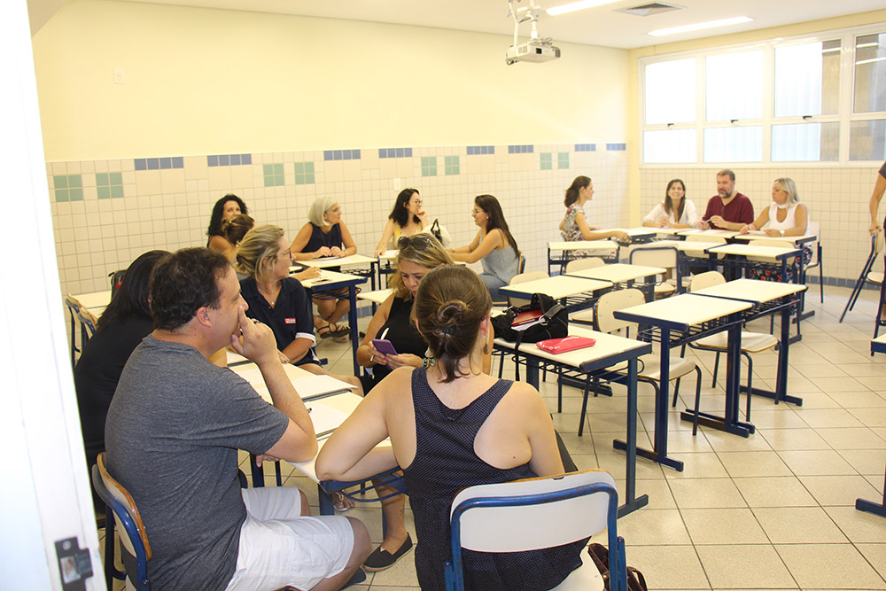 A direção e os coordenadores ficaram à frente da discussão do Projeto Político-Pedagógico no coletivo. Inspirados na fala do professor Alexandre Saul, os docentes liceístas se debruçaram para atualizar as diretrizes que posicionam o Liceu Santista como escola de referência na cidade.