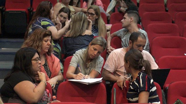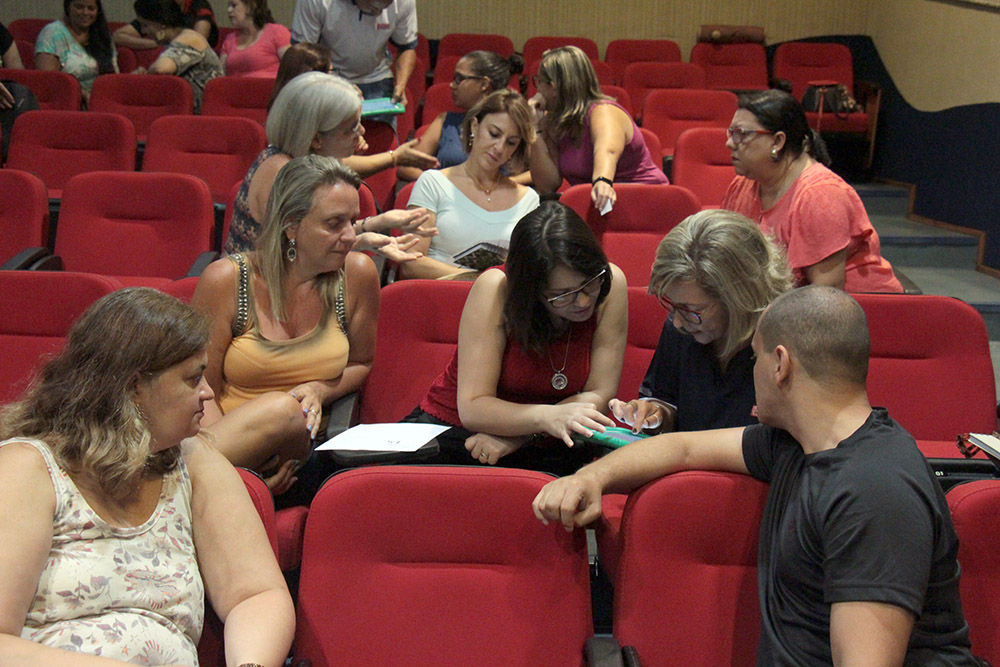 Divididos em grupos, também os educadores debateram o assunto e elencaram quais são as características e habilidades que se espera encontrar em um bom professor. O resultado foi partilhado entre o grupo e comporá ainda outros momentos de formação.