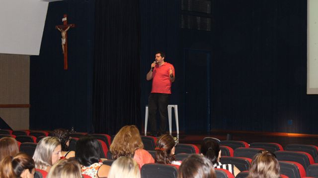 A diretora Cláudia Cristina T.M. Santiago fez uma explanação sobre as concepções que norteiam o perfil do professor, como o respeito aos princípios católicos da instituição, a administração de sua formação contínua e permanente, a mediação de situações de aprendizagens, a valorização dos conhecimentos prévios dos alunos, o estímulo ao protagonismo estudantil entre outros.