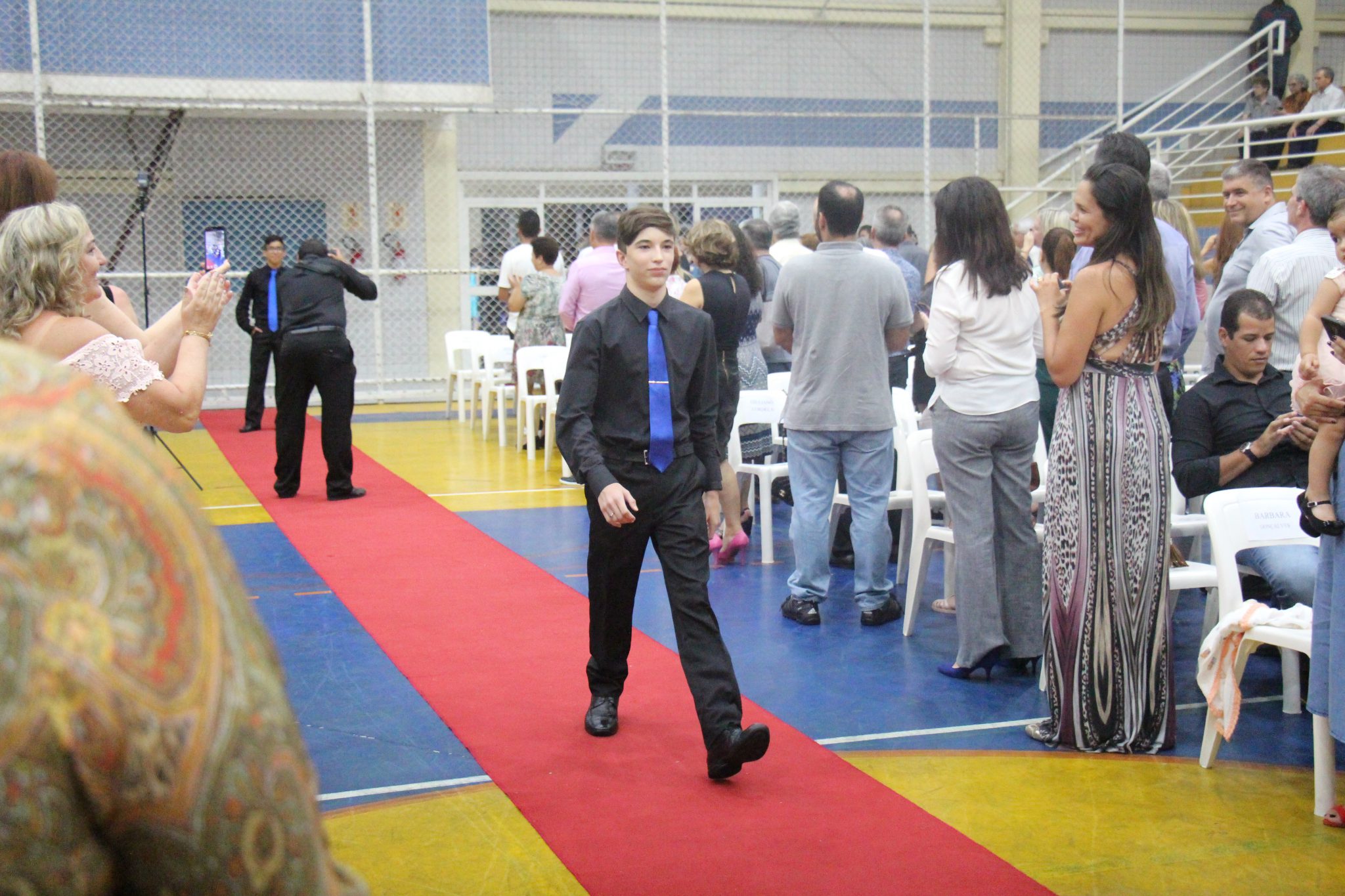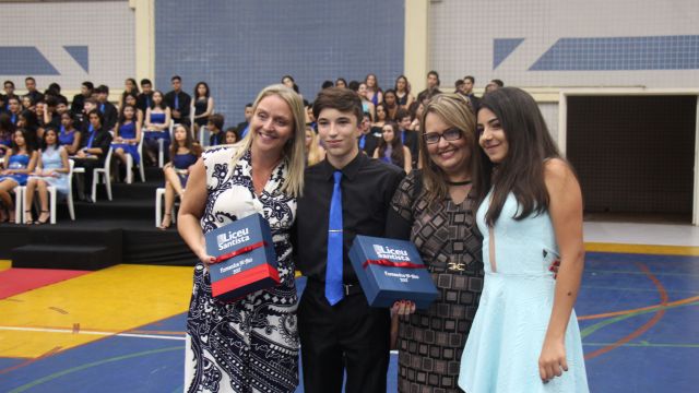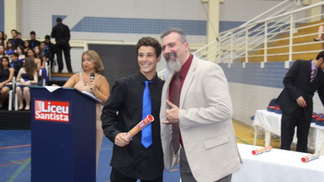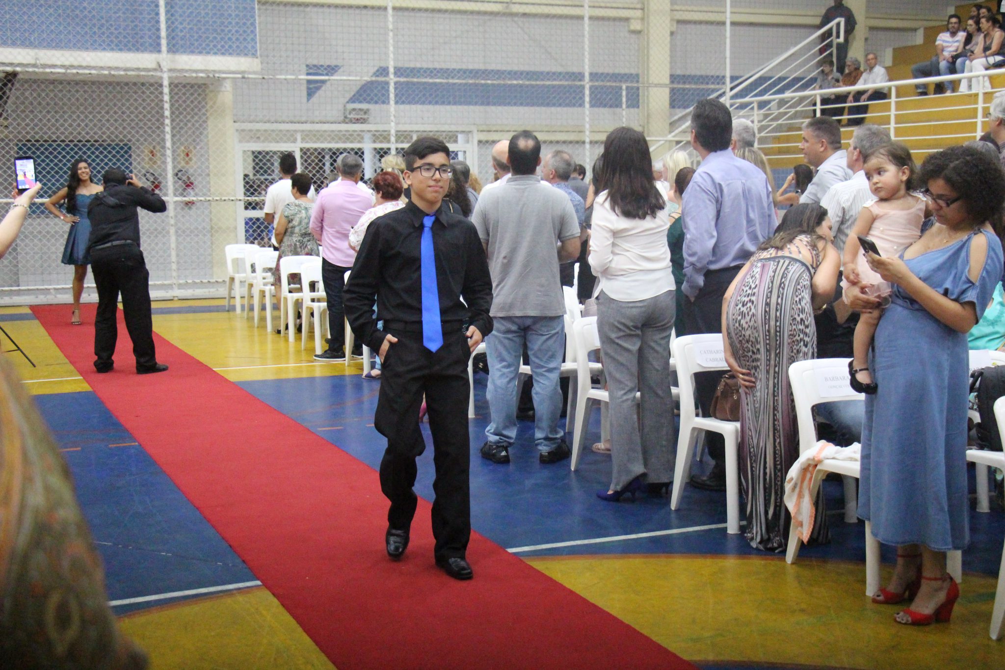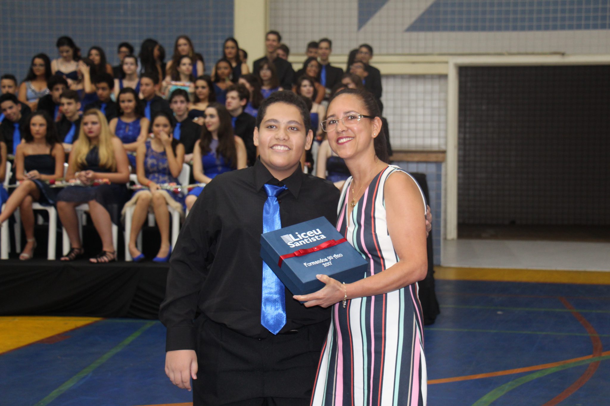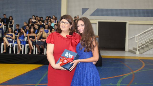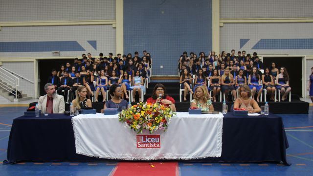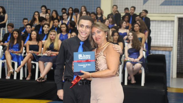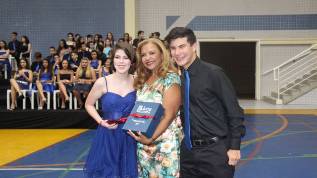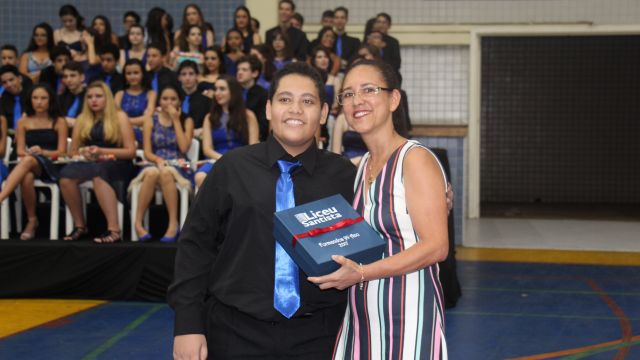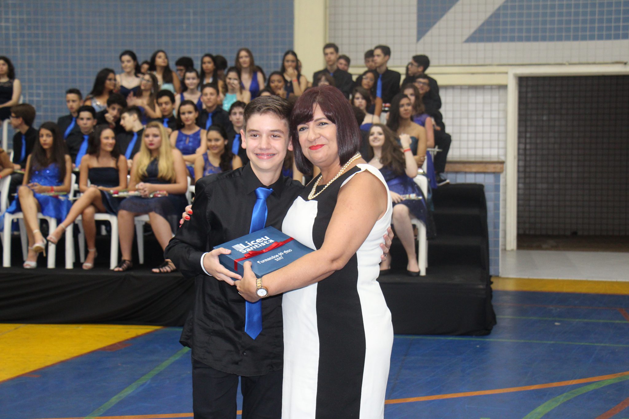 A formatura dos alunos do 9º ano do Ensino Fundamental marcou a passagem dos liceístas para o próximo nível de estudos, desta vez no Ensino Médio. Muitos professores, funcionários, familiares e convidados prestigiaram o evento, realizado na segunda-feira, 18 de dezembro, no ginásio poliesportivo da escola. Momentos de alegria e de descontração foram compartilhados pelos formandos, que em 2018 iniciam nova jornada.