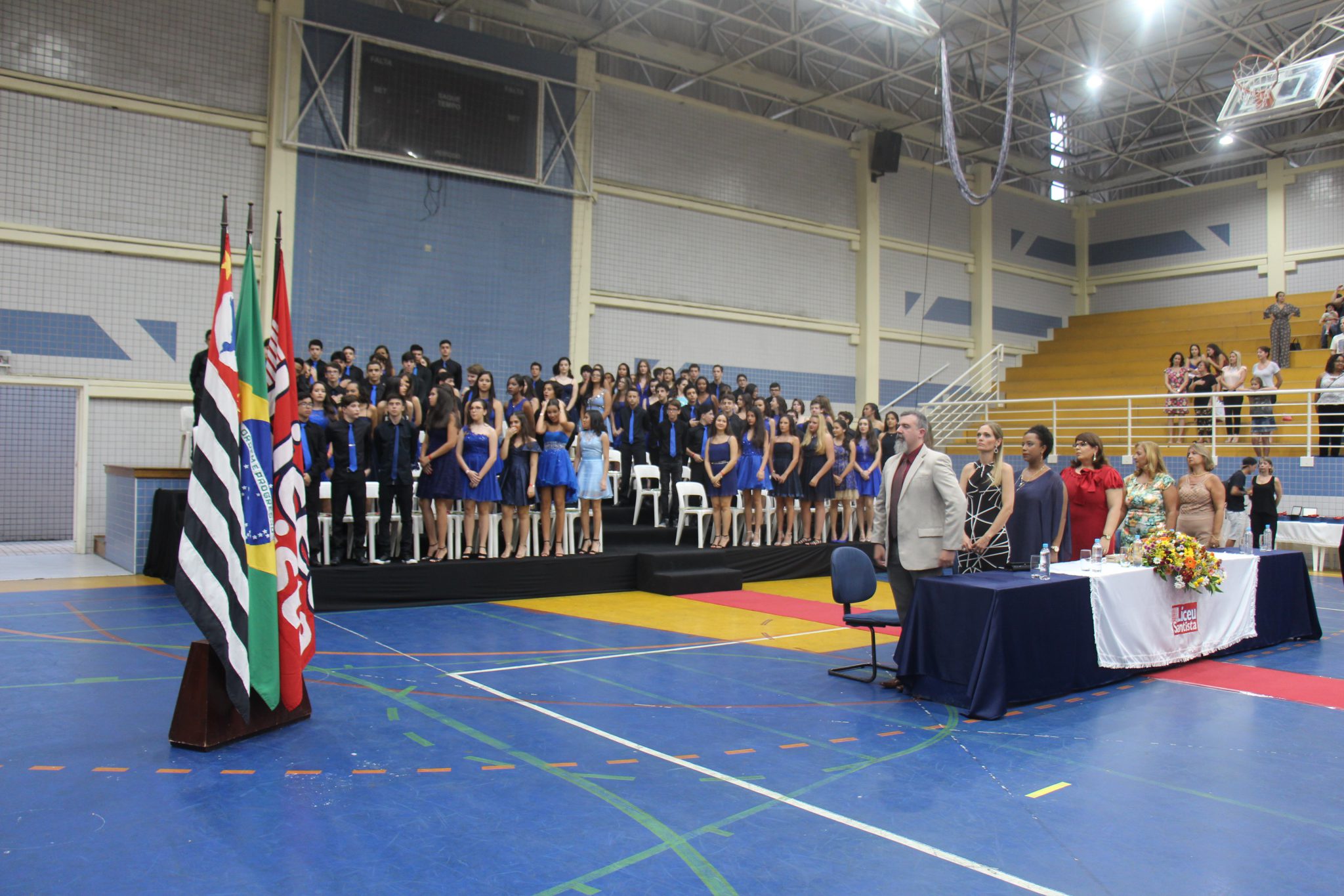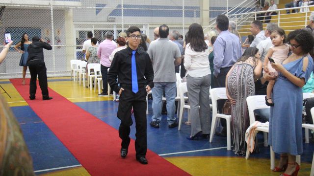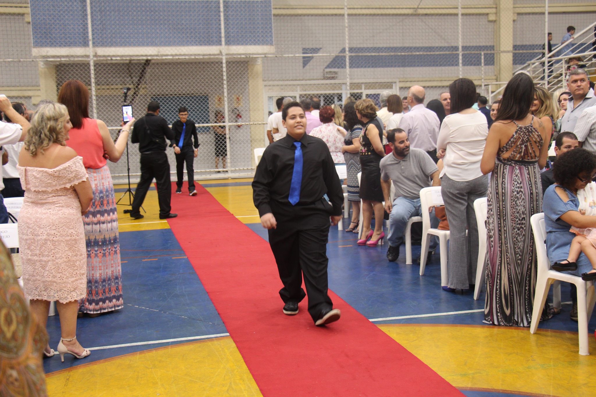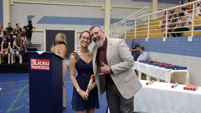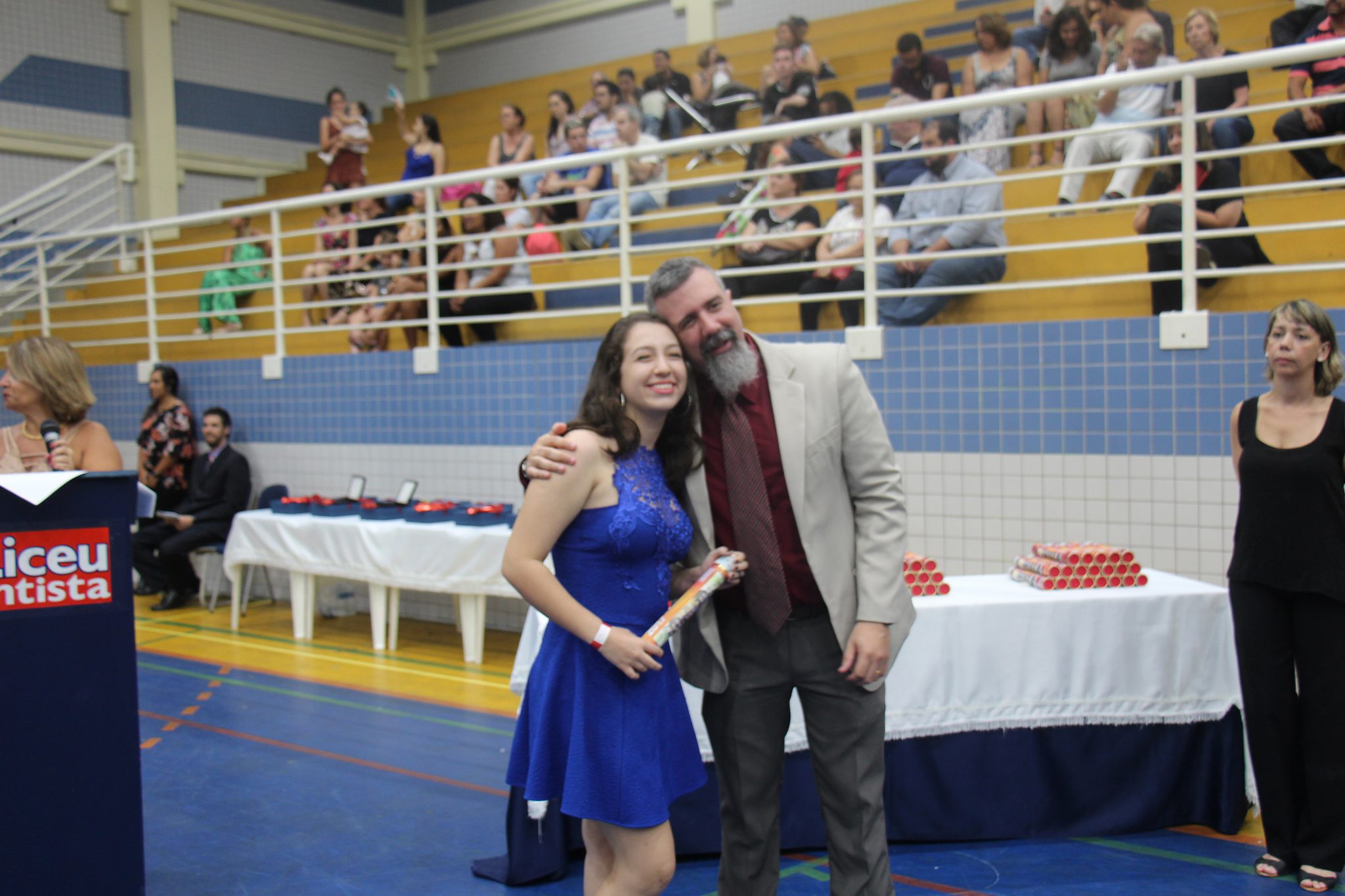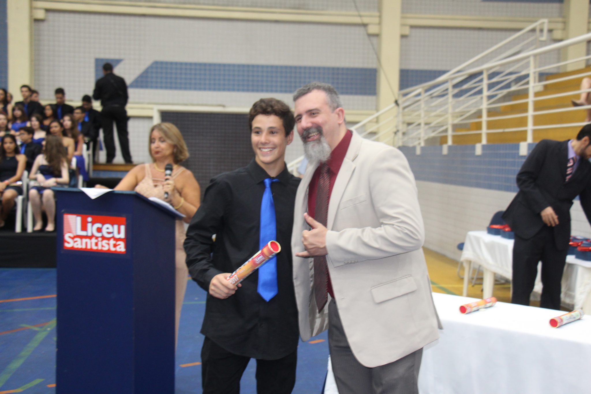 A formatura dos alunos do 9º ano do Ensino Fundamental marcou a passagem dos liceístas para o próximo nível de estudos, desta vez no Ensino Médio. Muitos professores, funcionários, familiares e convidados prestigiaram o evento, realizado na segunda-feira, 18 de dezembro, no ginásio poliesportivo da escola. Momentos de alegria e de descontração foram compartilhados pelos formandos, que em 2018 iniciam nova jornada.