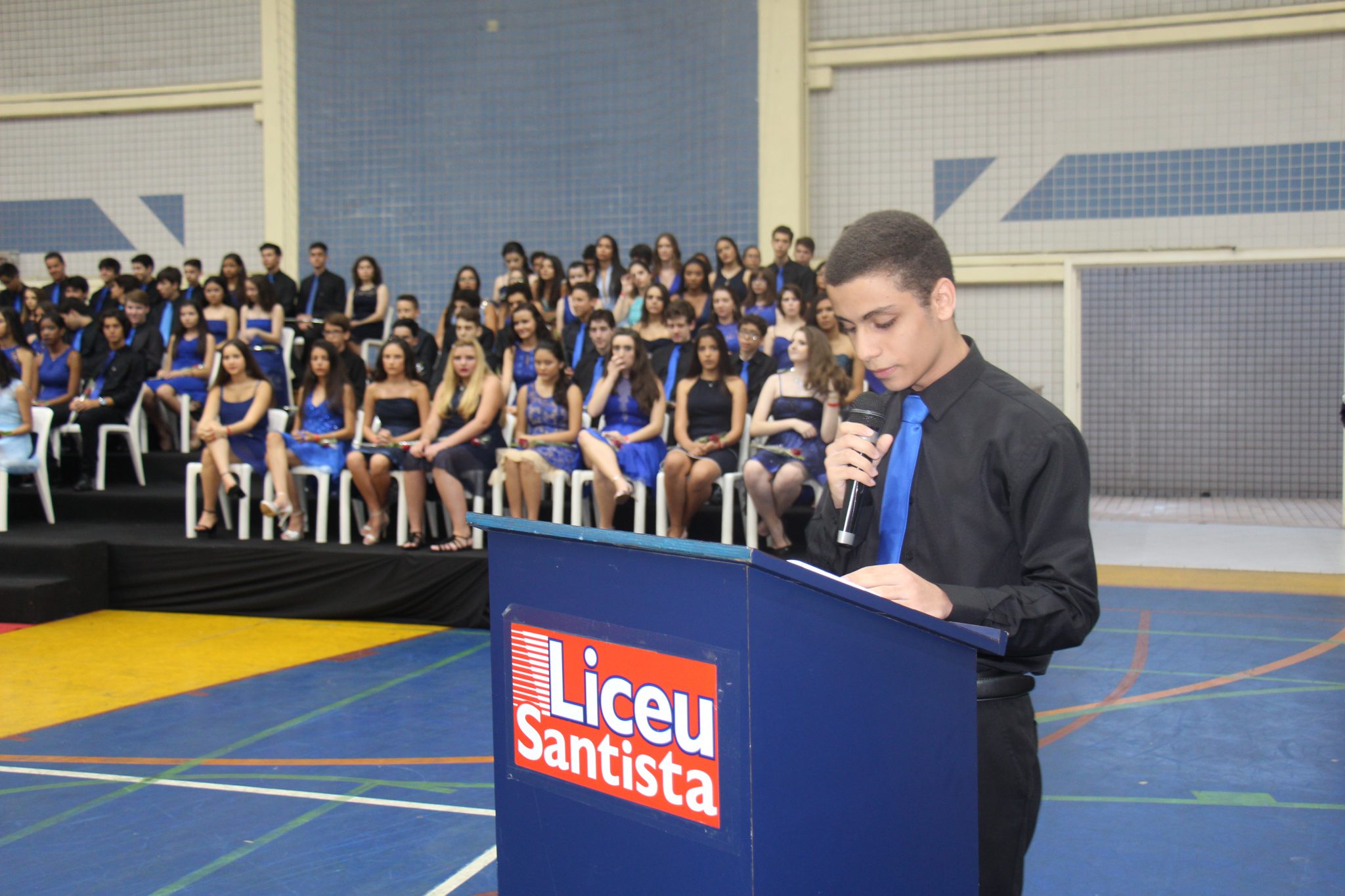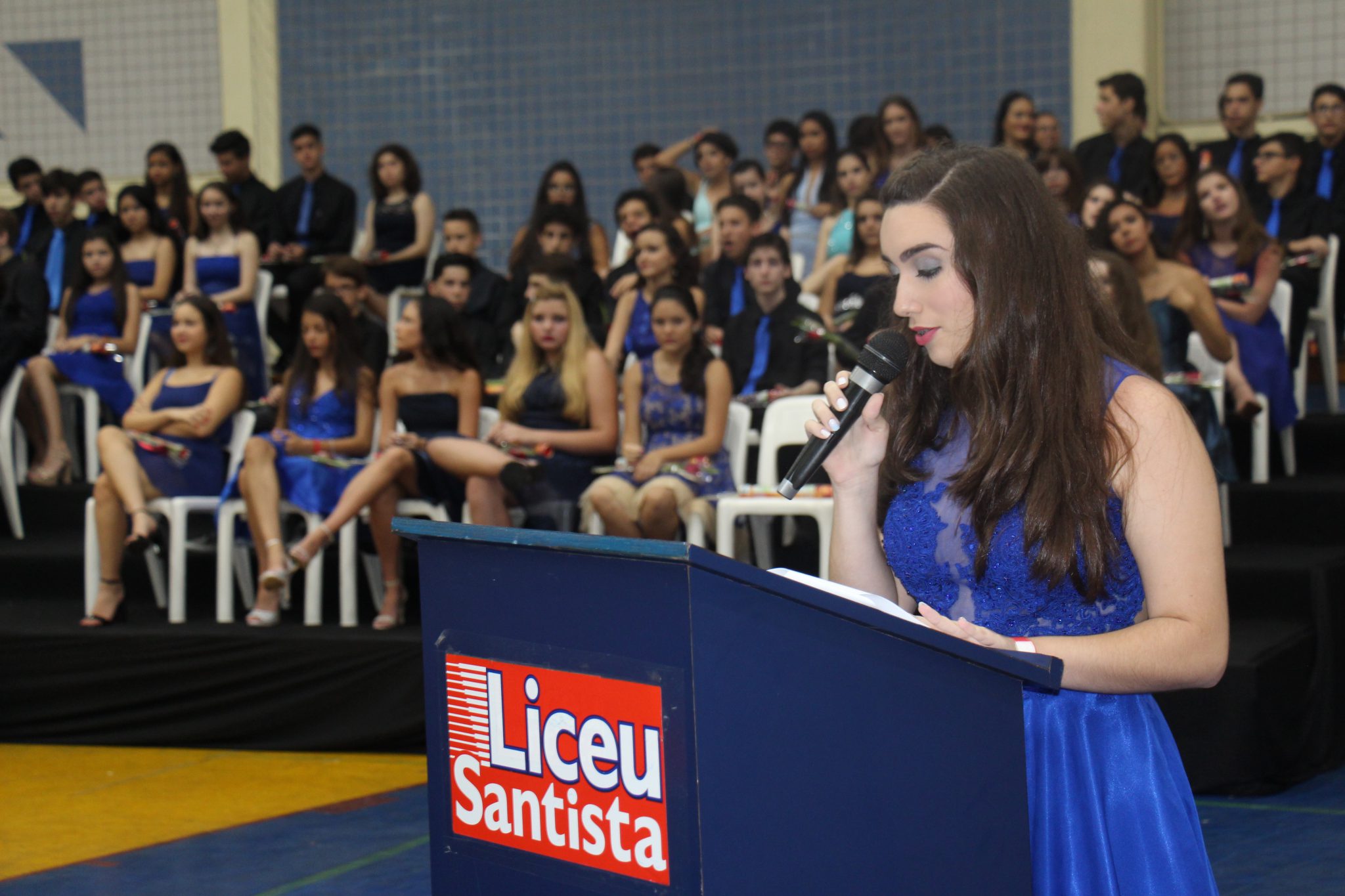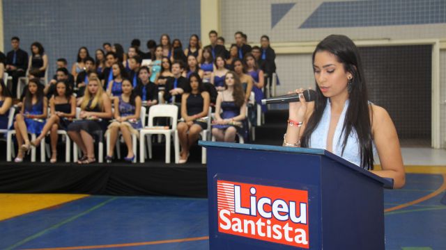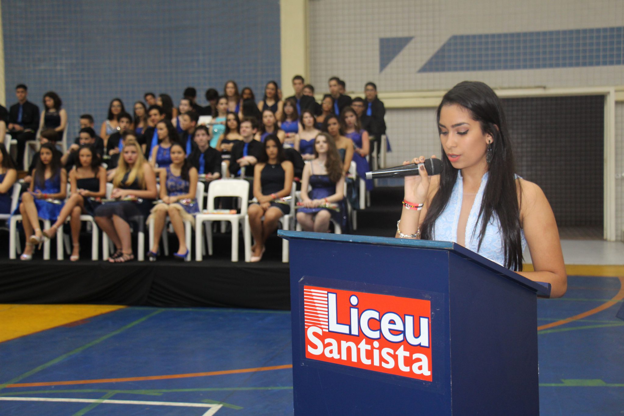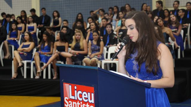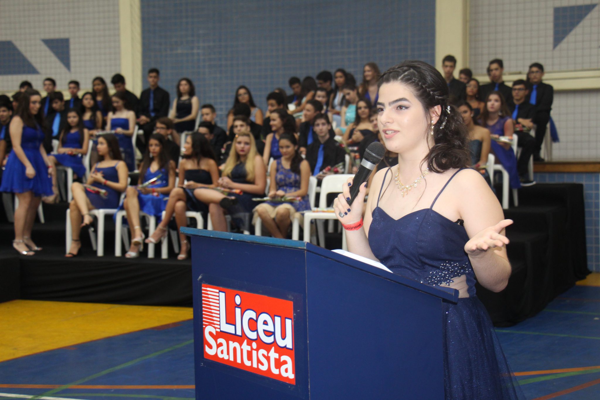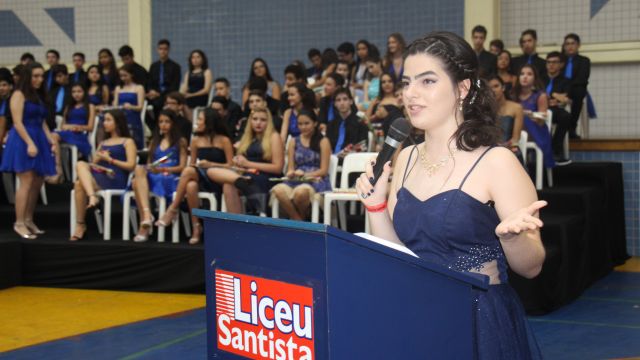 Em seu discurso, a oradora Maria Fernanda de Jesus Neves, do 9º ano A, lembrou dos colegas da turma, desde aqueles que chegaram à escola “muito pequenos e dependentes” até os “recém-chegados”. A aluna também homenageou os pais, “que confiaram ao Liceu a missão de ensinar, pois o mesmo sempre zelou pela boa ética, valores e profissionalismo, que levaremos para sempre, independentemente do rumo que cada um vai seguir.” E finaliza: “Não podemos esquecer de registrar nossa gratidão a cada professor que fez parte da jornada do 9ºA, imprimindo com seu jeitinho peculiar doces lembranças que levaremos para o resto de nossas vidas”.