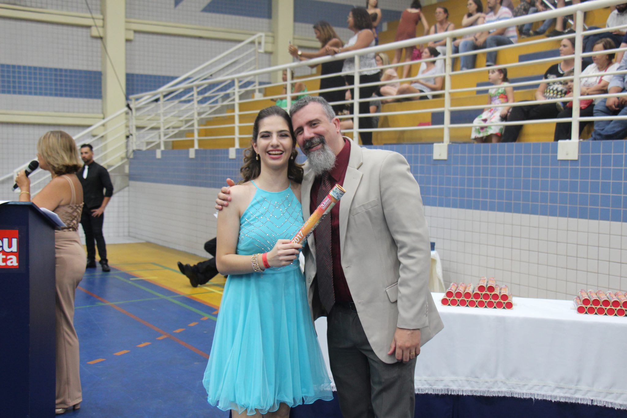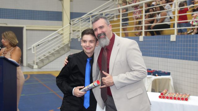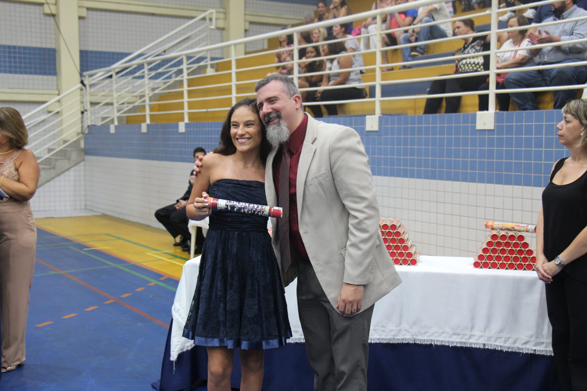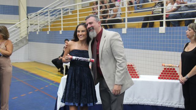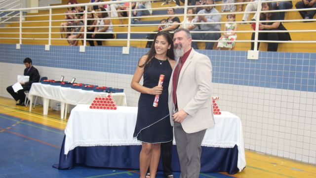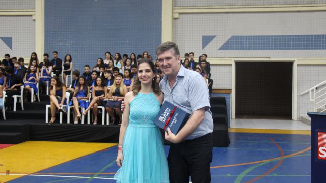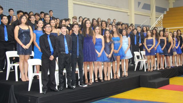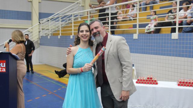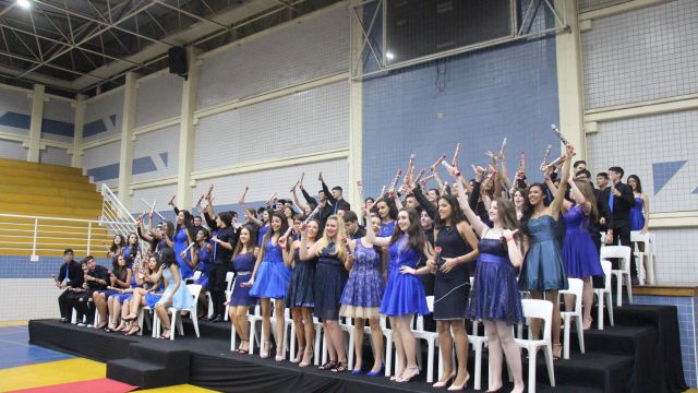 Mariana Dezotti Rüegger, oradora do 9º ano C, lembrou que a caminhada dos alunos continua no próximo ciclo de estudos, o Ensino Médio. “A responsabilidade traz o esforço, uma palavra tão simples, porém tão difícil de consegui-la, principalmente do adolescente. Muitos almejam algo grande para si, e isso é maravilhoso, pois, como Fernando Pessoa disse, “o homem é do tamanho dos seus sonhos”. Entretanto, poucos se movimentam para alcançá-lo. Somente por meio da dedicação e do estudo é possível realizar um sonho. O Ensino Médio nos trará esta ideia, a ideia de correr atrás do que queremos para nós mesmos e lutar por isso.”
