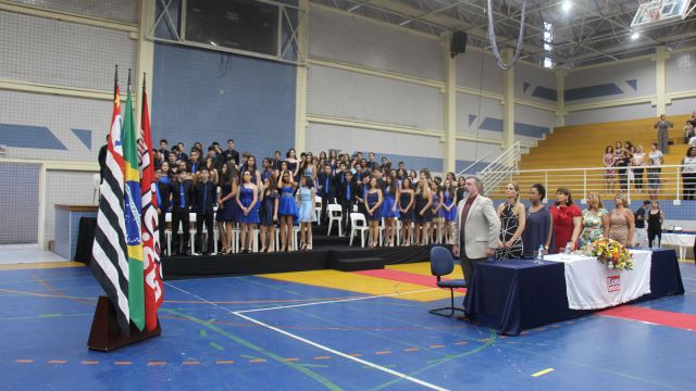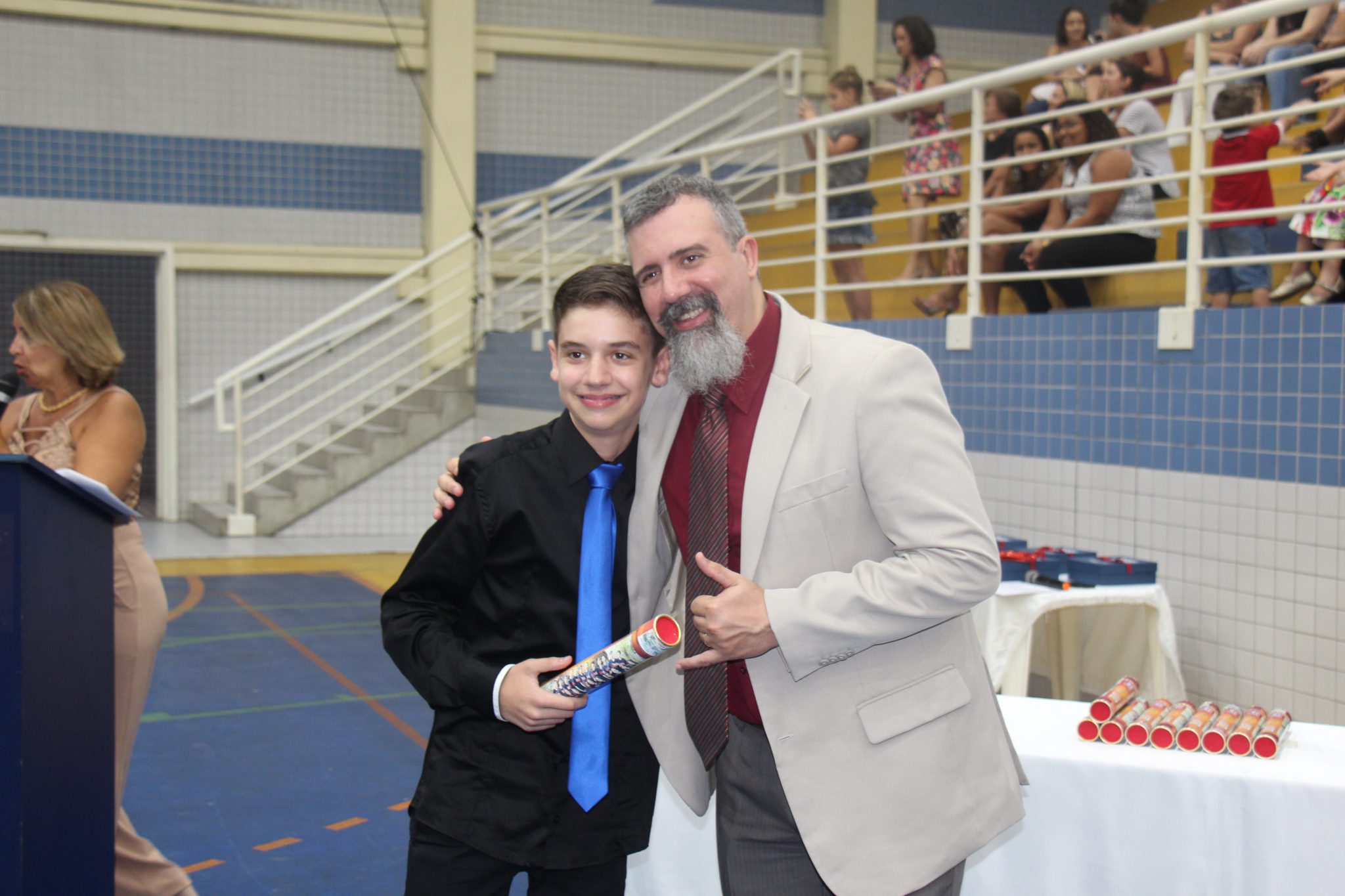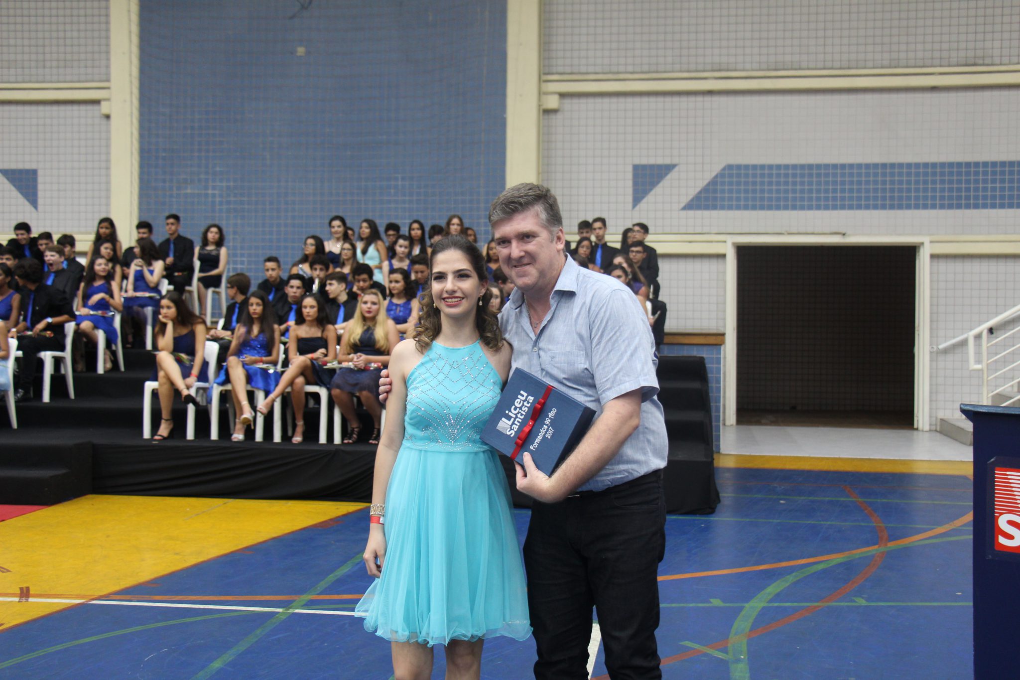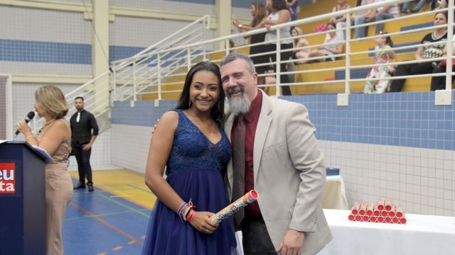 Mariana Dezotti Rüegger, oradora do 9º ano C, lembrou que a caminhada dos alunos continua no próximo ciclo de estudos, o Ensino Médio. “A responsabilidade traz o esforço, uma palavra tão simples, porém tão difícil de consegui-la, principalmente do adolescente. Muitos almejam algo grande para si, e isso é maravilhoso, pois, como Fernando Pessoa disse, “o homem é do tamanho dos seus sonhos”. Entretanto, poucos se movimentam para alcançá-lo. Somente por meio da dedicação e do estudo é possível realizar um sonho. O Ensino Médio nos trará esta ideia, a ideia de correr atrás do que queremos para nós mesmos e lutar por isso.”
