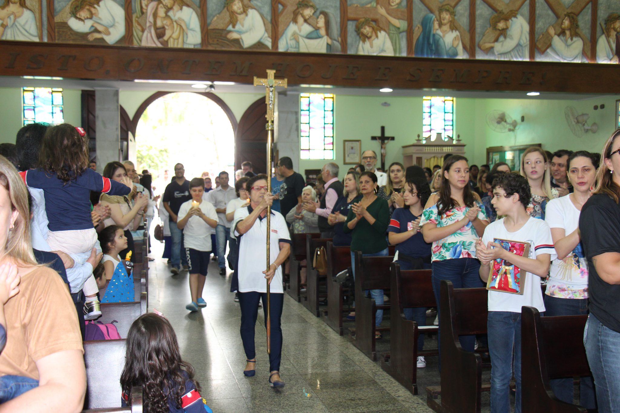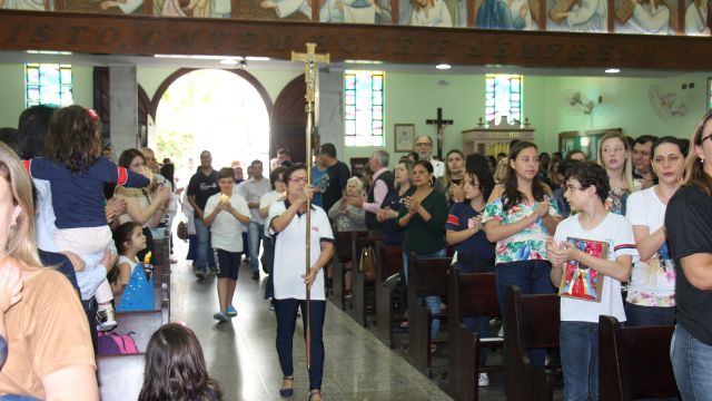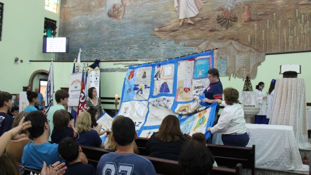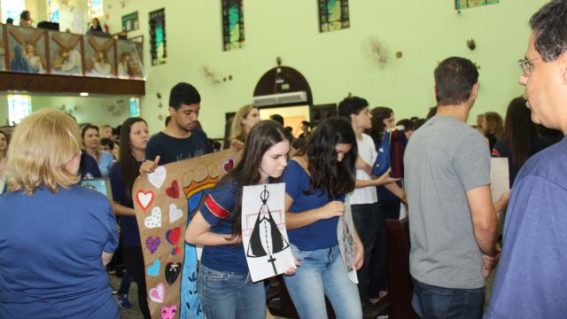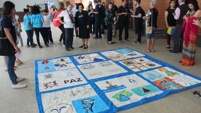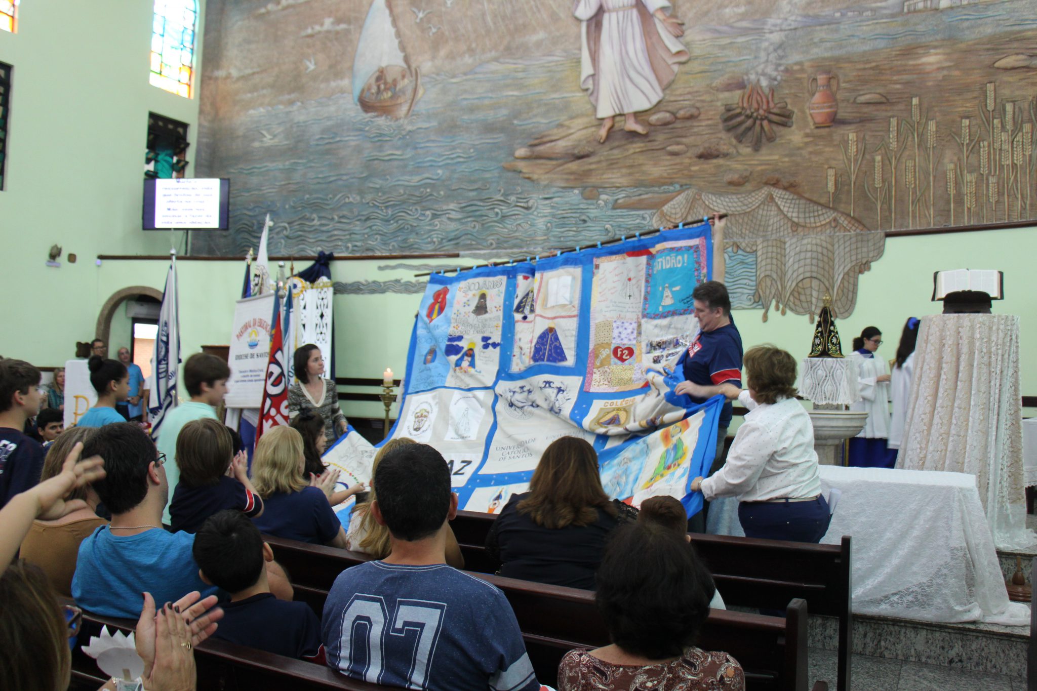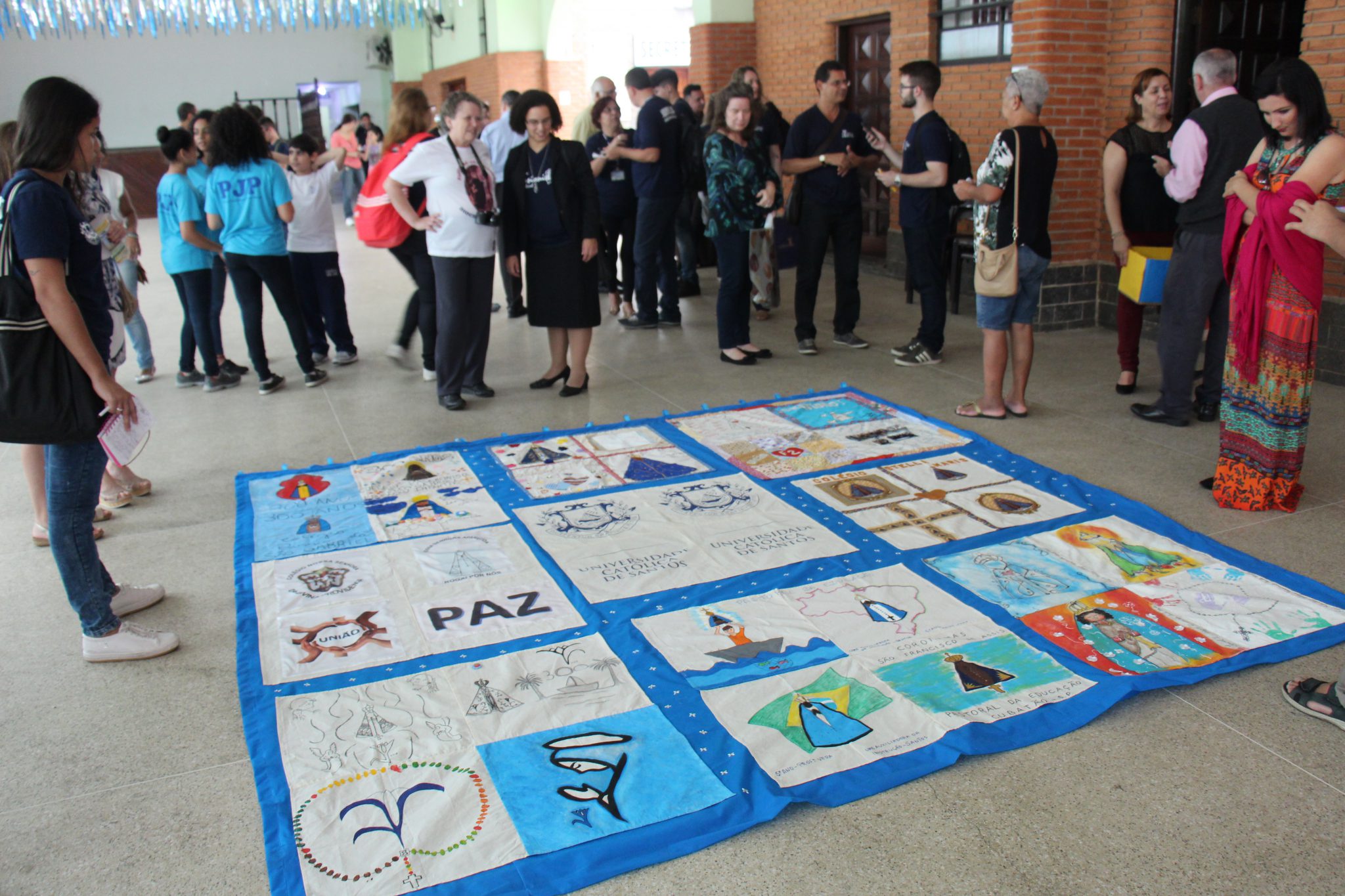 Bandeiras de todas as escolas que fazem parte da ANEC, imagens de Nossa Senhora Aparecida confeccionadas por alunos da Educação Infantil aos Ensinos Fundamental e Médio e um tapete produzido coletivamente por educadores de todas as instituições marcaram o compromisso da Associação Nacional das Escolas Católicas em contribuir para uma sociedade mais justa, solidária e fraterna.