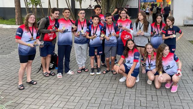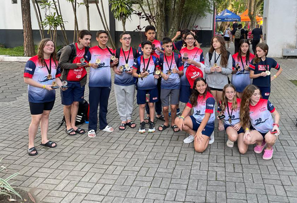Os 19 nadadores da equipe de natação do Liceu Santista, com o reforço de mais 10 estudantes da oficina de natação do Ensino Fundamental Anos Finais, apresentaram excelente desempenho no 13º Torneio Timão de Natação – Troféu Mario Xavier, realizado no sábado, 8 de outubro, no Sport Club Corinthians. No total, foram conquistadas 23 medalhas, das quais 8 de ouro, 6 de prata e 9 de bronze.