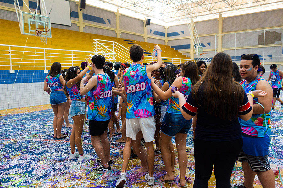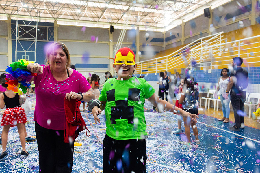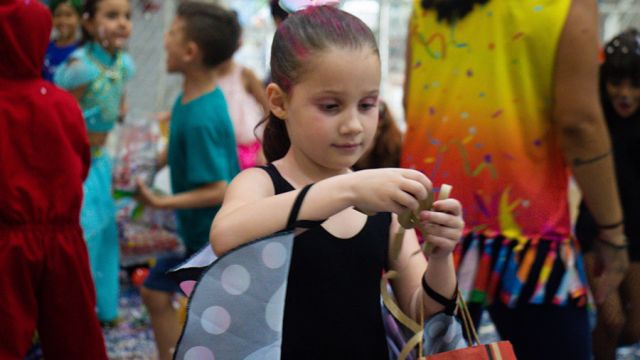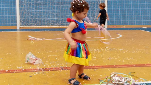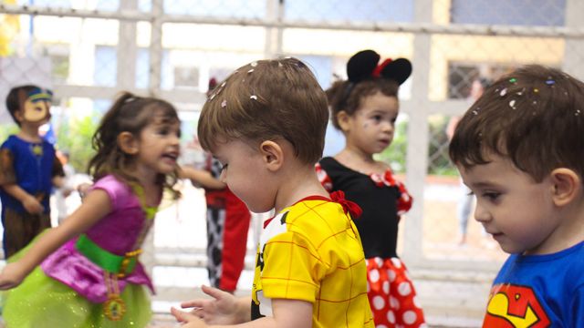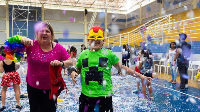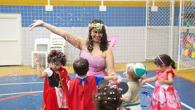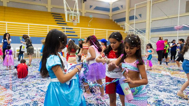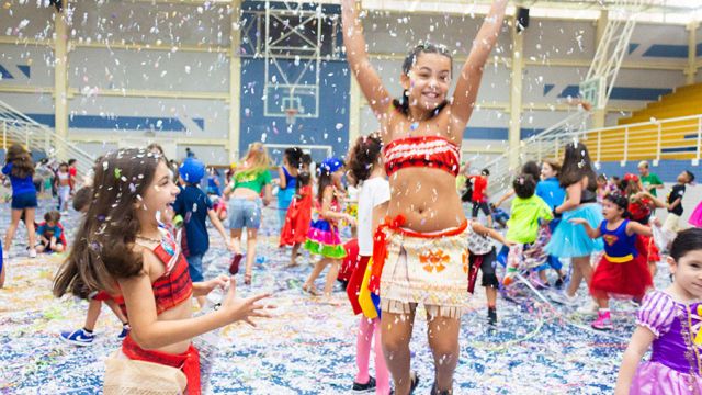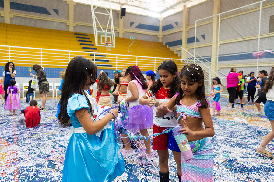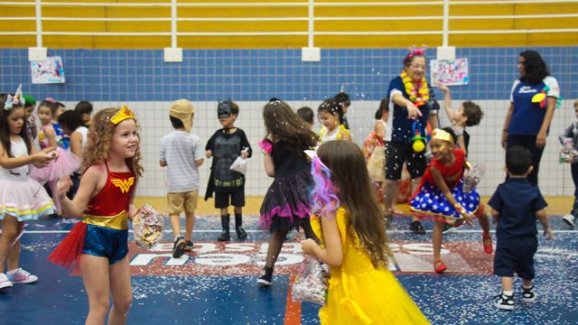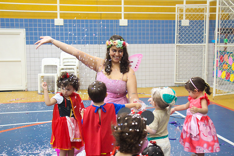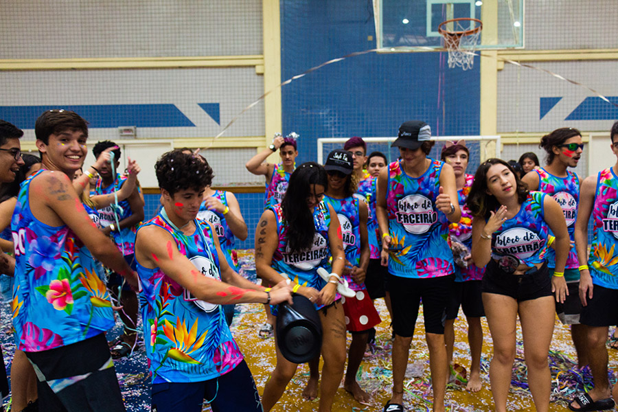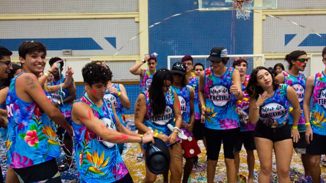 As fantasias são sempre um destaque na festa. Estavam todos lá: super-heróis, piratas, princesas, minnies, sereias, bailarinas, borboletas e até um dinossauro. O “terceirão”, como sempre, veste abadás personalizados.