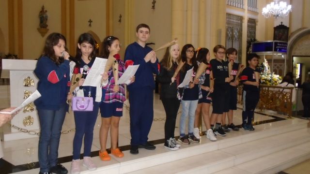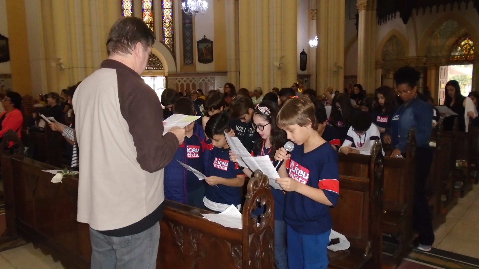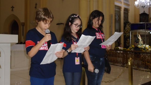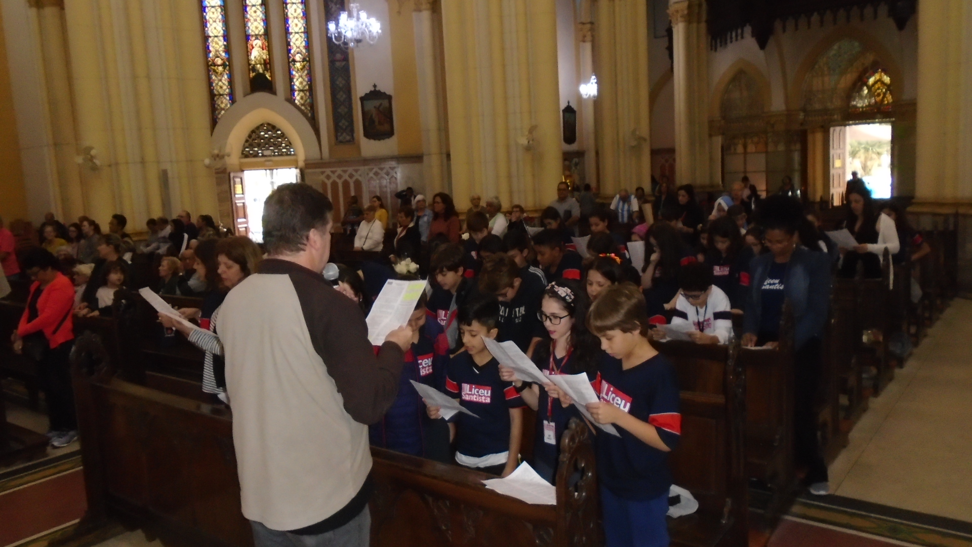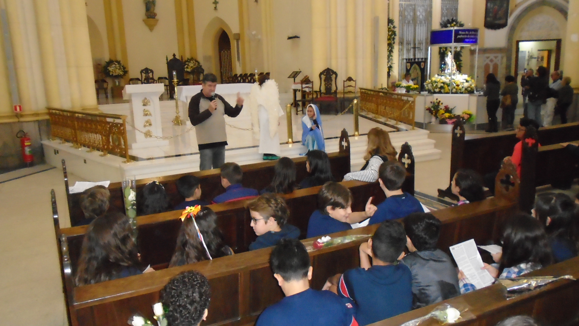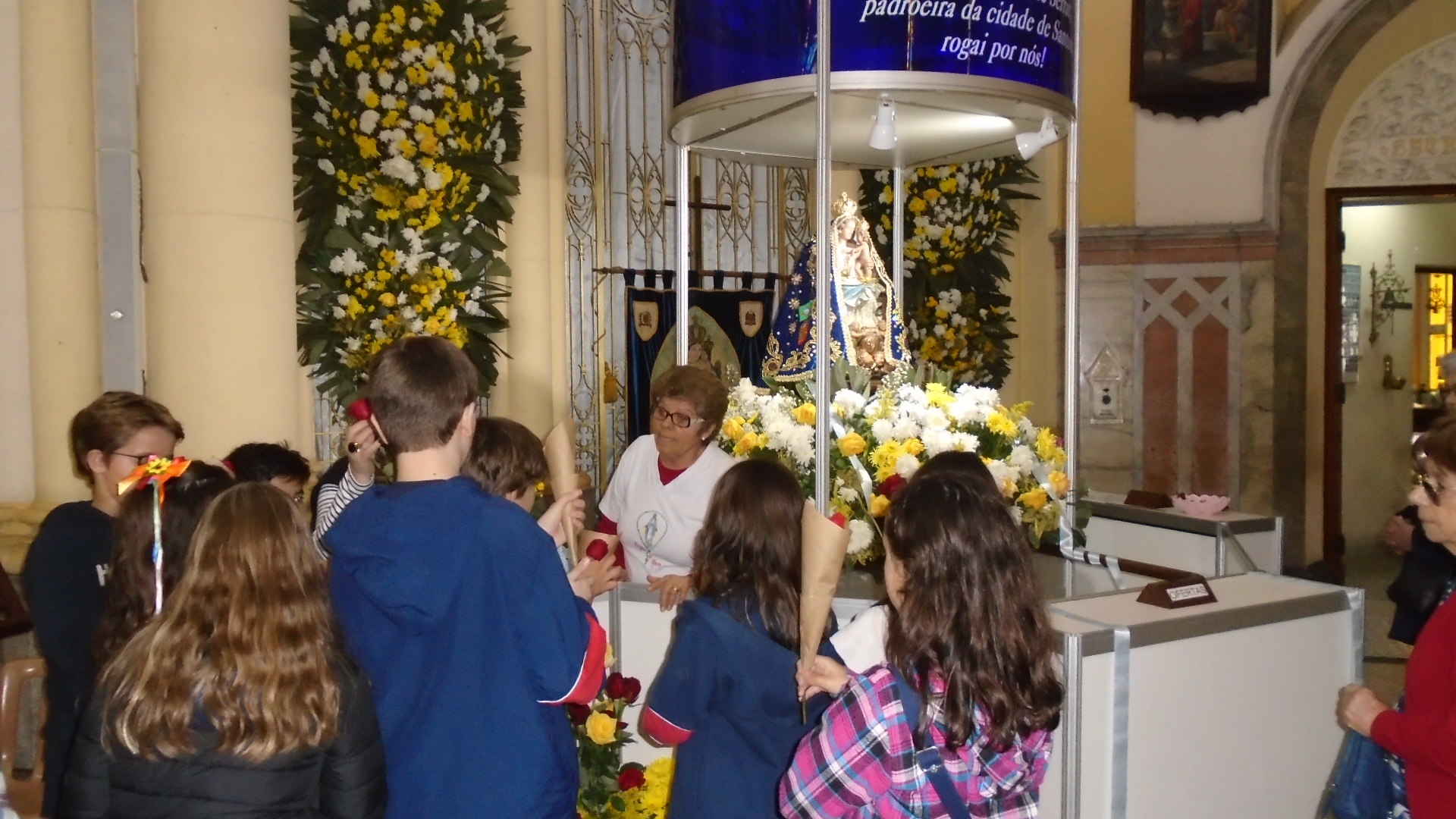 Acompanhados pelo coordenador de Pastoral, Sérgio Nogueira Júnior, e pelas professoras Márcia Bordin e Bruna Scarlate, os estudantes se reuniram na Catedral de Santos para louvar a padroeira com orações, música e flores. O Coral Canta Mais, sob a regência do professor Felipe Borges, também participou da Hora Santa.