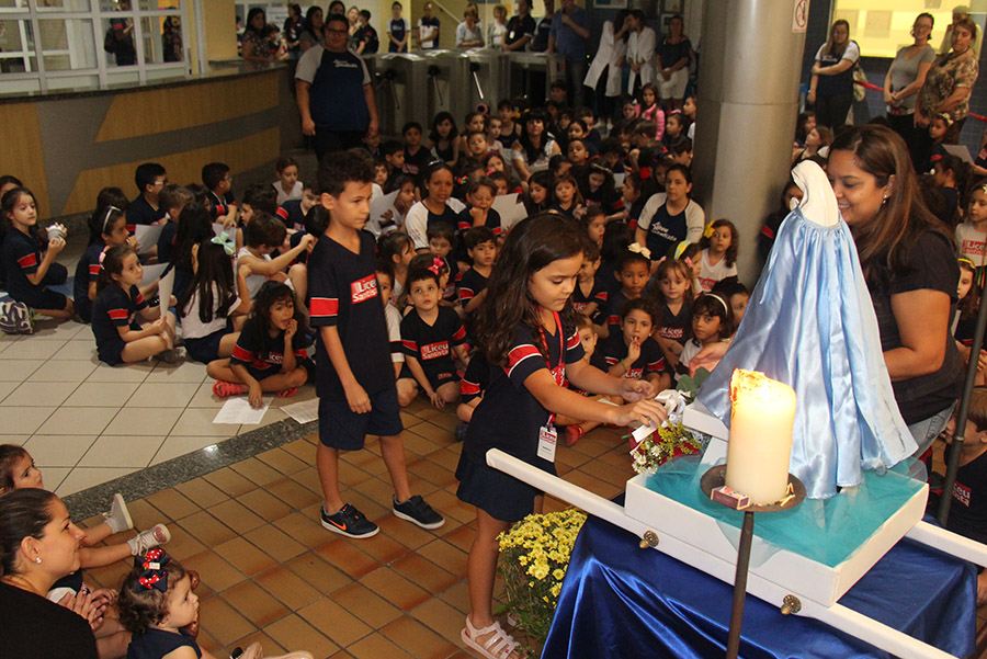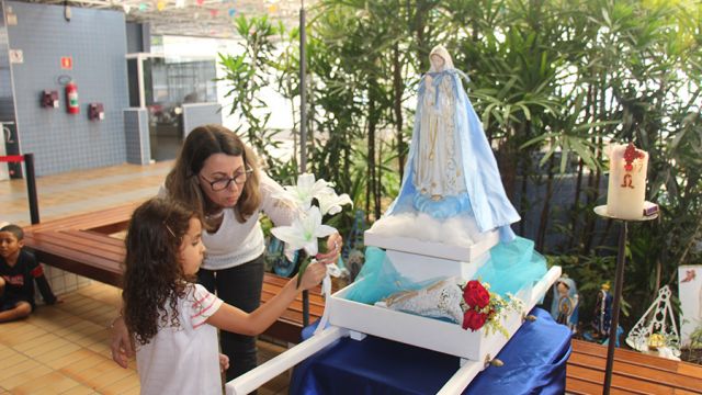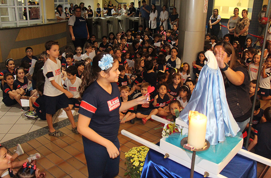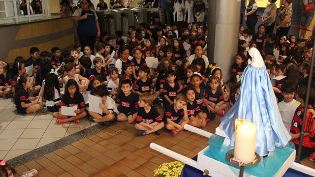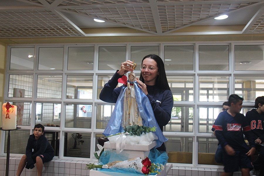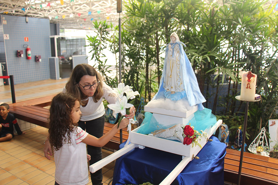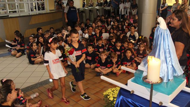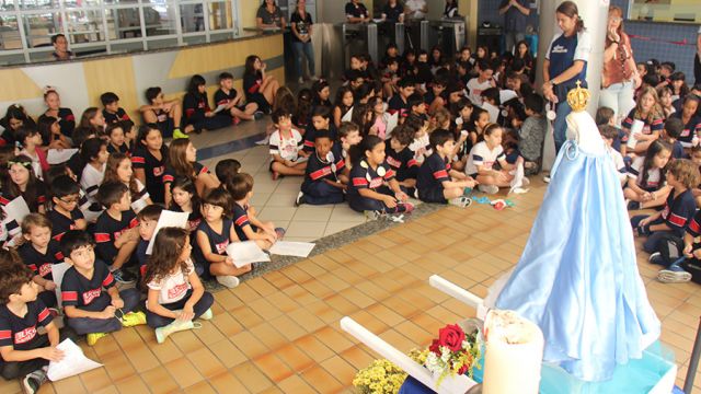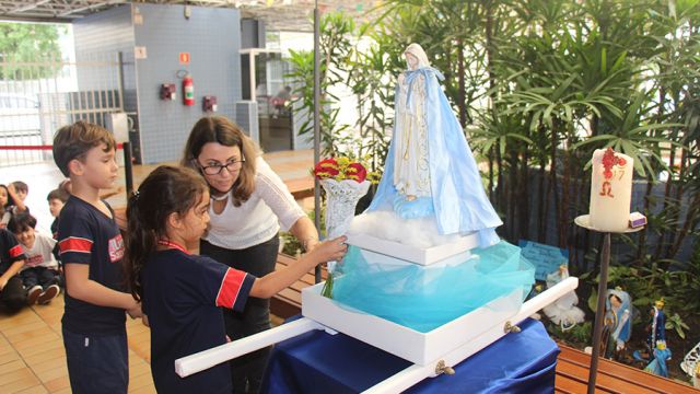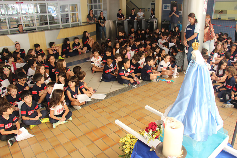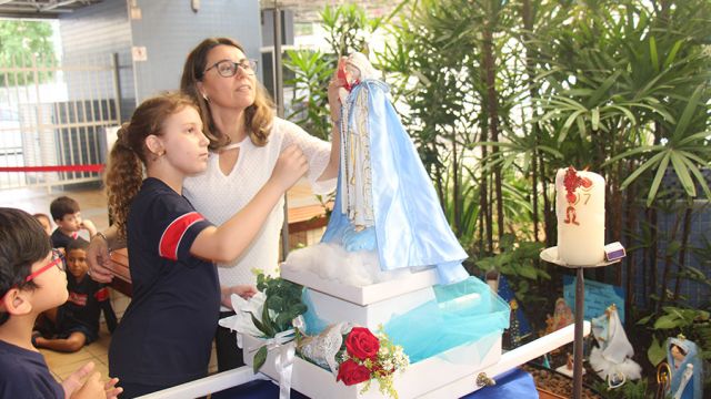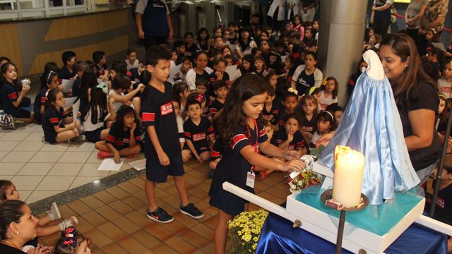 Após um mês de homenagens, Nossa Senhora foi coroada em cerimônias com a participação de alunos da Educação Infantil aos Ensinos Fundamental e Médio. Entre louvores e orações, a mãe de Jesus foi recebendo simbolismos que concretizam a fé católica.