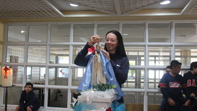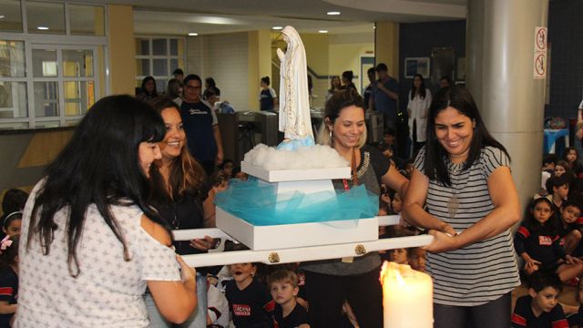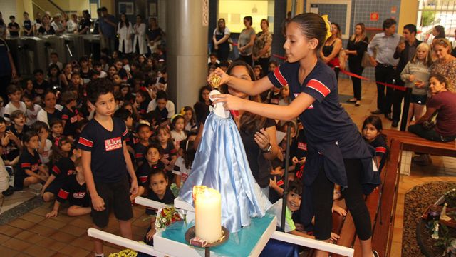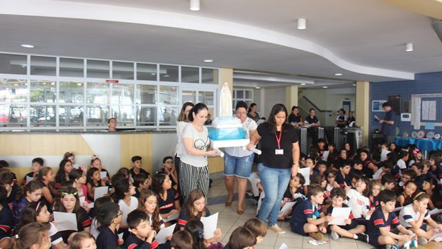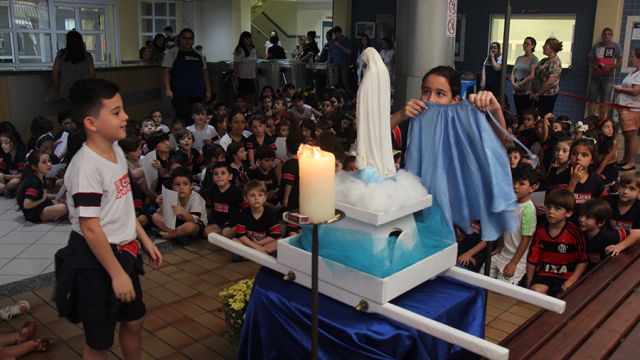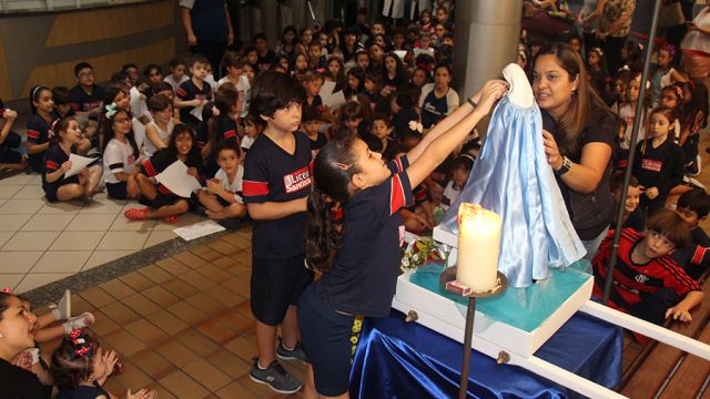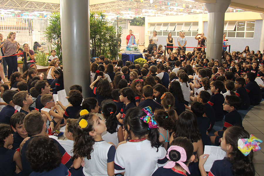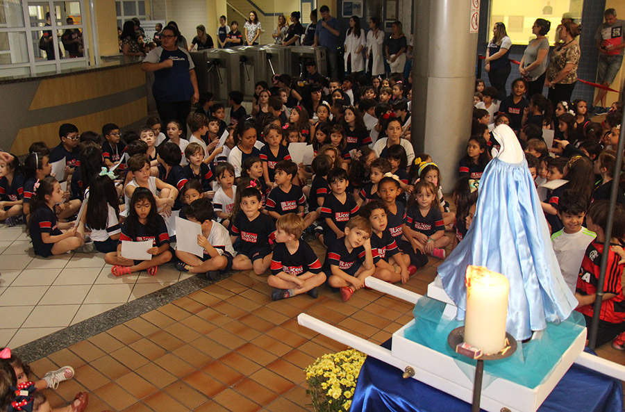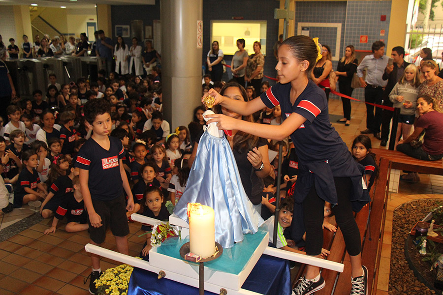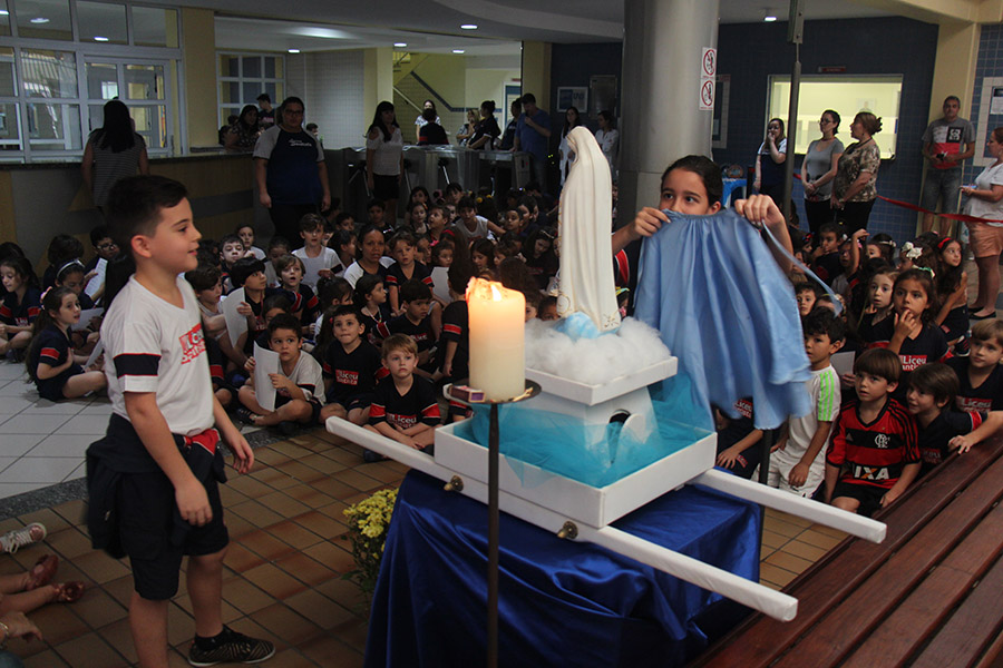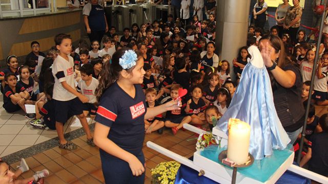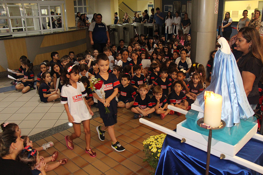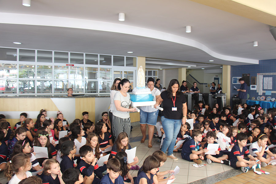 Após um mês de homenagens, Nossa Senhora foi coroada em cerimônias com a participação de alunos da Educação Infantil aos Ensinos Fundamental e Médio. Entre louvores e orações, a mãe de Jesus foi recebendo simbolismos que concretizam a fé católica.
