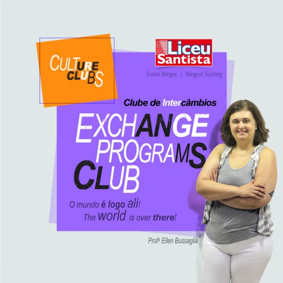 Participar de um programa de intercâmbio é uma das melhores formas de conhecer novas pessoas e culturas, aprender e praticar um idioma estrangeiro, ganhar autoconfiança e independência, melhorar seu currículo para alavancar a carreira. Assunto que gera muito interesse dos estudantes, Exchange Programs, ministrado pela professora Ellen Bussaglia, será o novo culture club disponível para os liceístas do 1º ano do Ensino Médio a partir de abril.