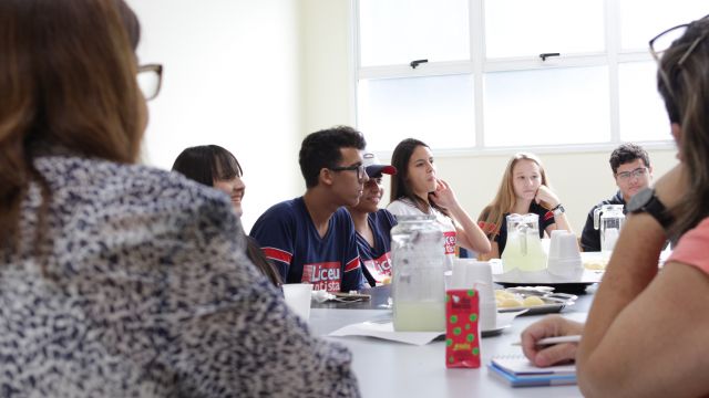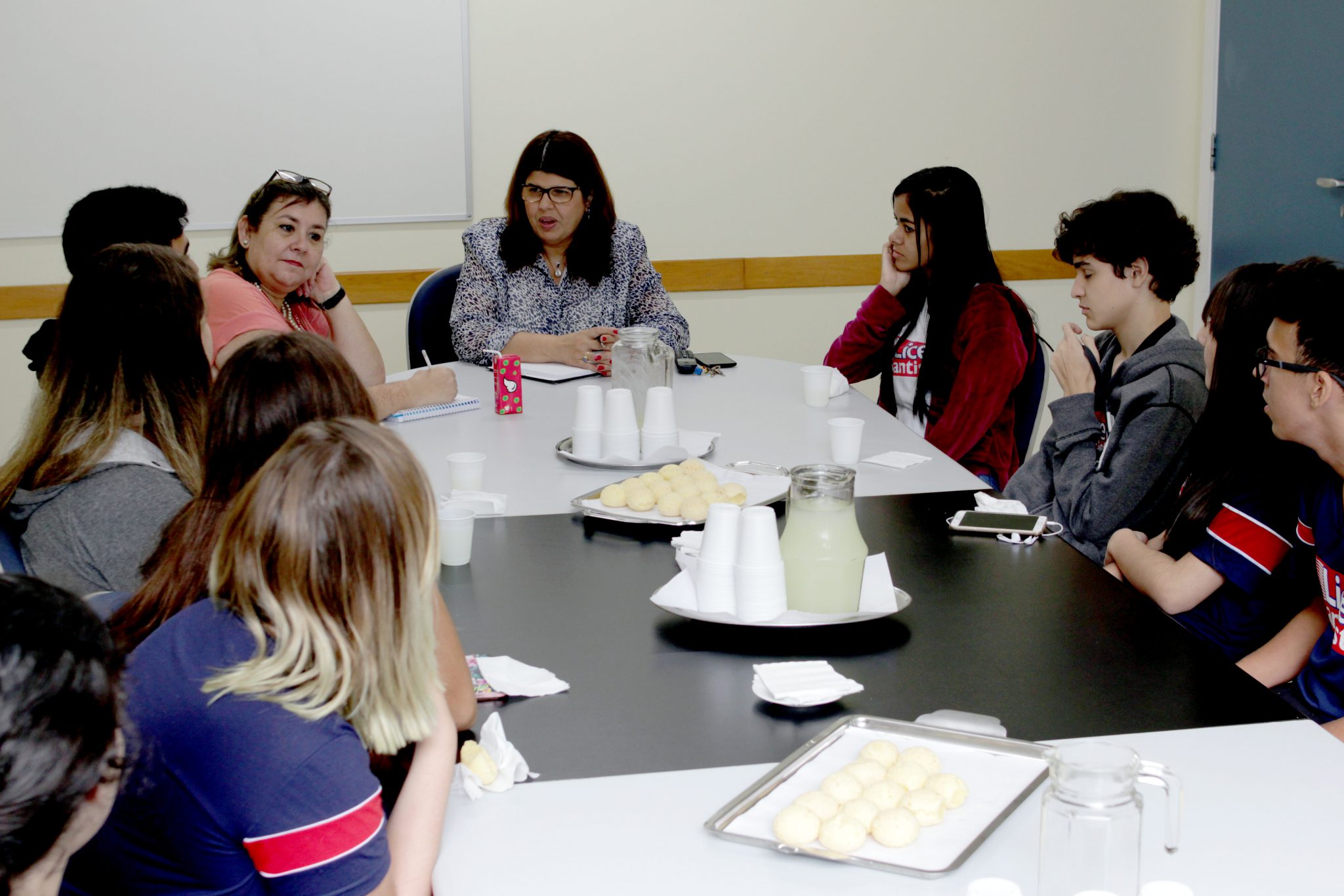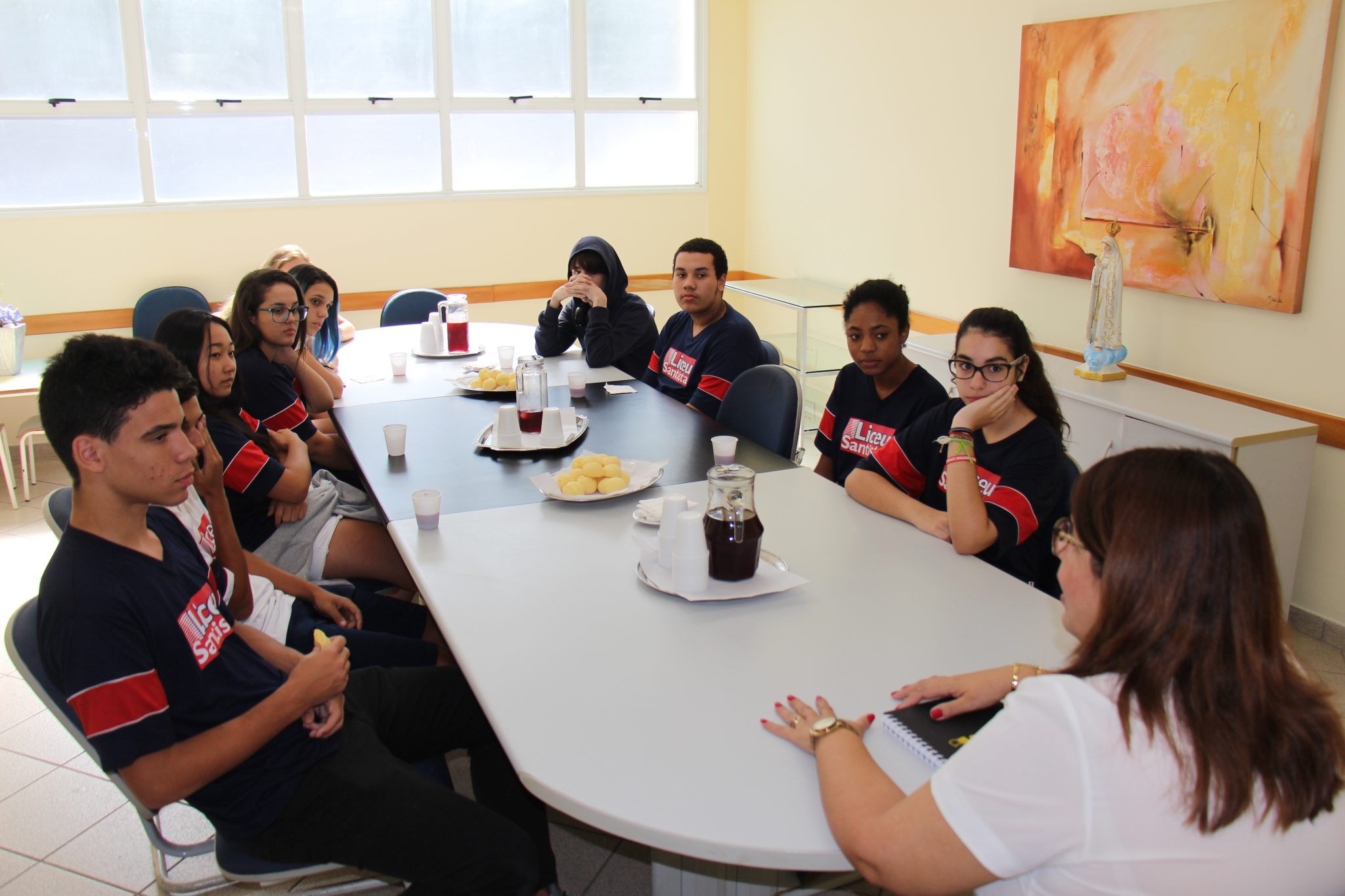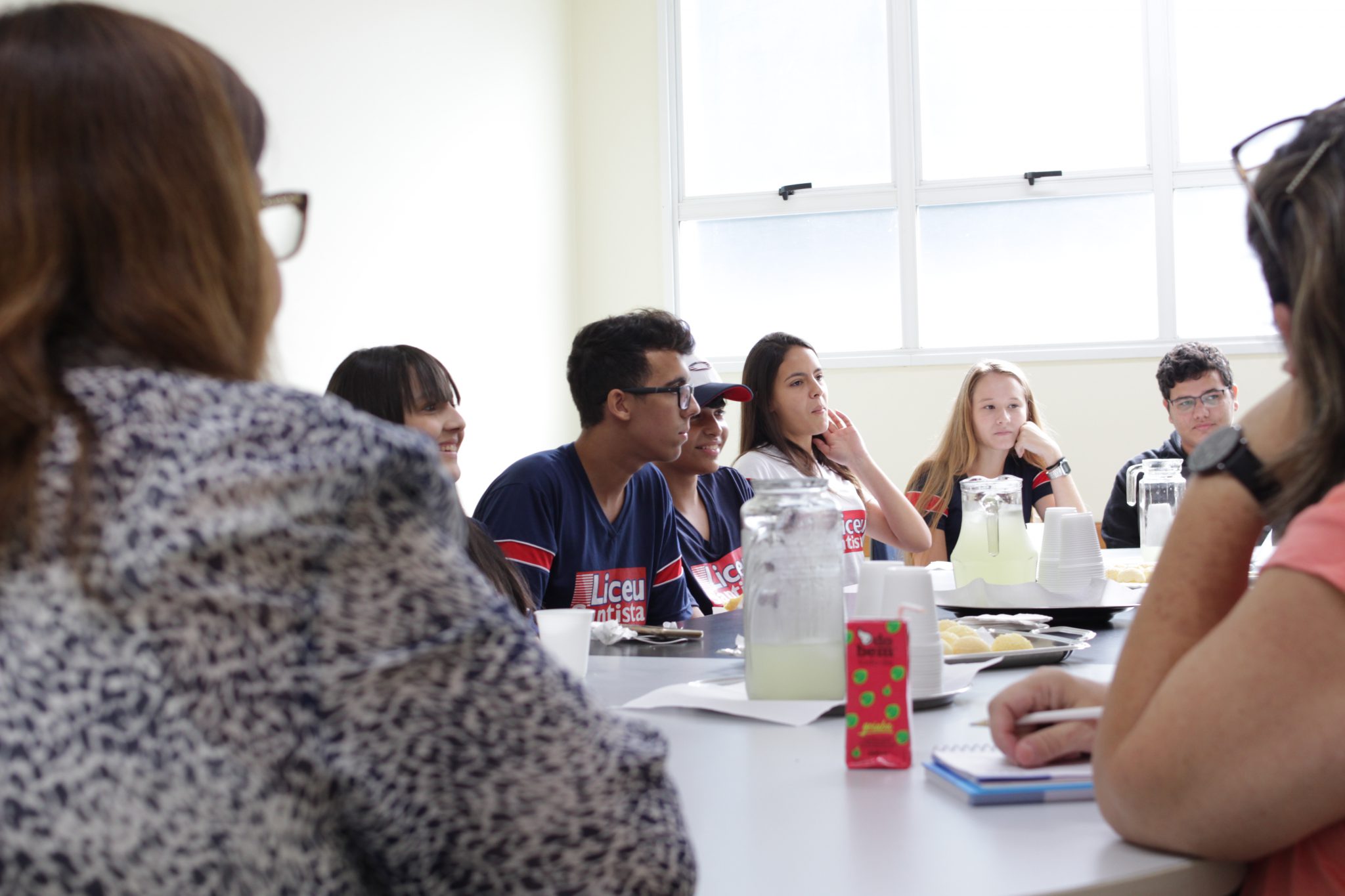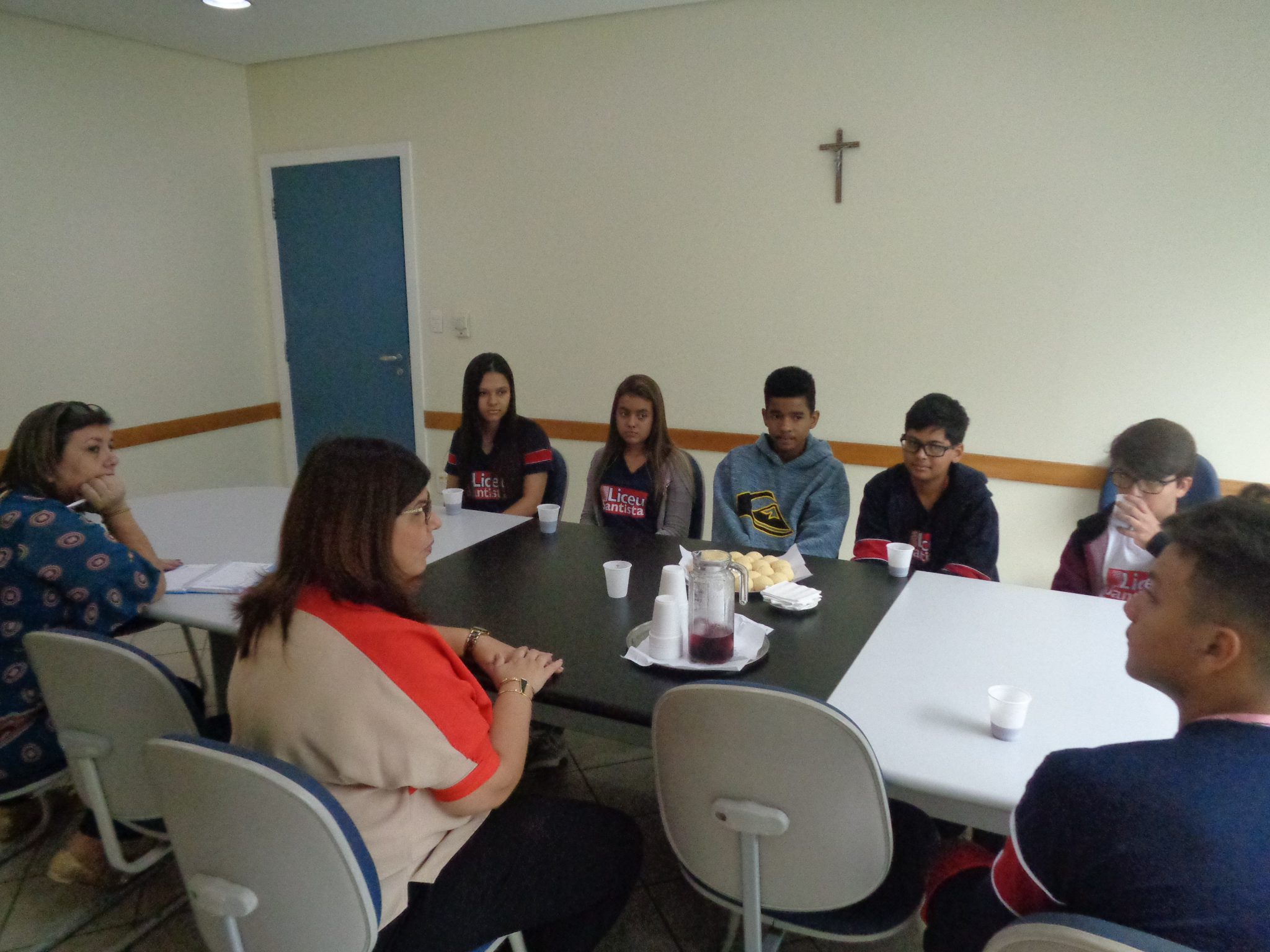 Um encontro com a diretora Cláudia Cristina T.M. Santiago e com a orientadora Rita de Cássia Erra teve o intuito de dar voz a esses novos liceístas nesse início de jornada. Dúvidas, expectativas, primeiras impressões, encontros e reencontros com outros colegas foram assuntos levantados pelos grupos, que foram recepcionados com um lanchinho.