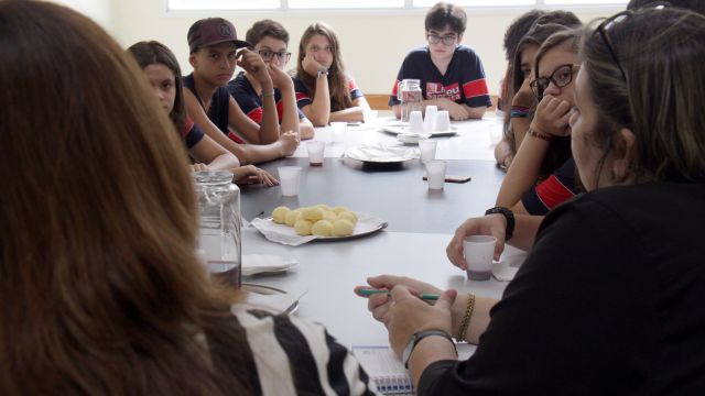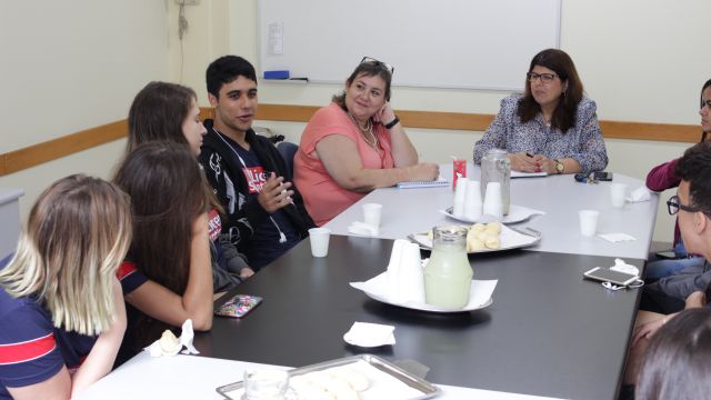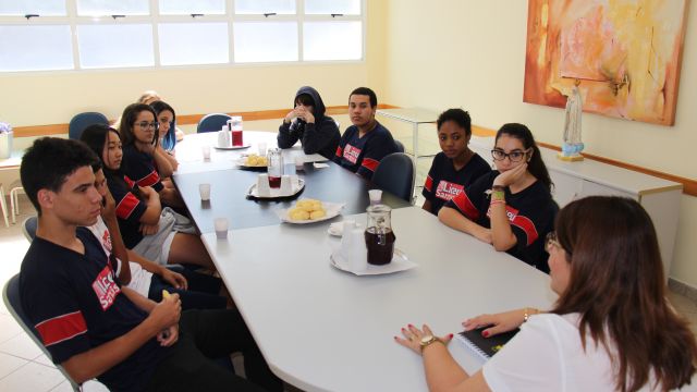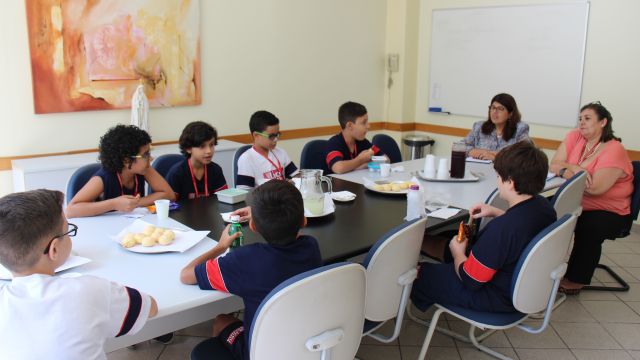 Diferentemente da acolhida, realizada em janeiro com as famílias recém-chegadas, essa reunião visa uma aproximação com os alunos, oferecendo-lhes um auxílio na adaptação à rotina escolar, ouvindo suas opiniões, suas ideias.