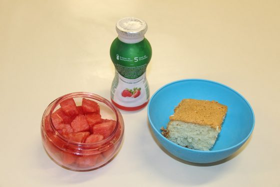 – uma fonte de carboidrato (pão, bolo sem recheio, biscoito sem recheio) para fornecer energia. Dê preferência aos integrais, que têm fibras e dão maior saciedade.