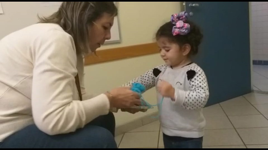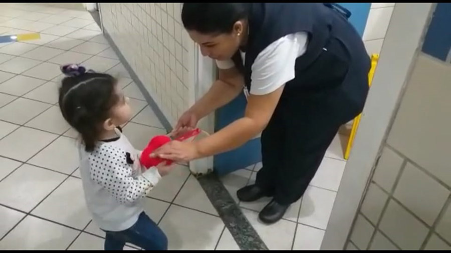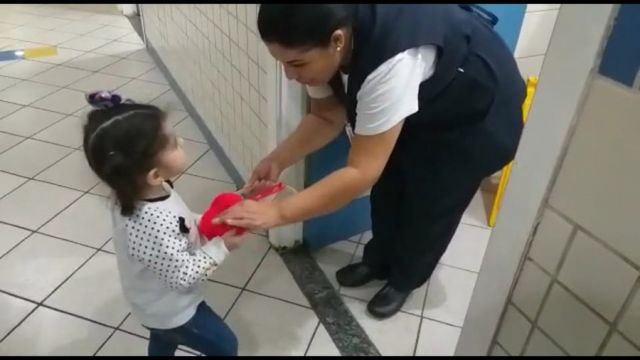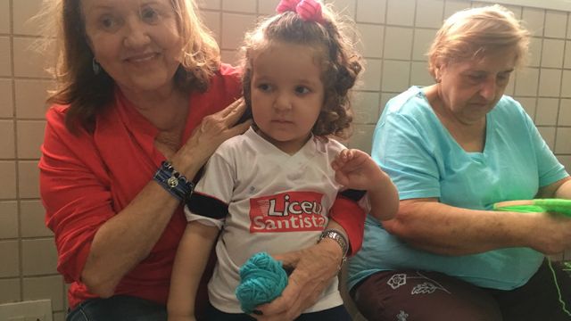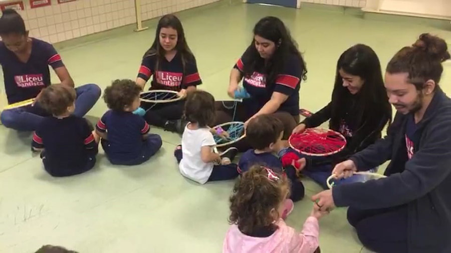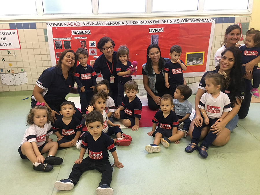 Na atividade com os alunos do Grupo 2, a ideia foi seguir a orientação do artista de superar a experiência meramente visual, aguçando os outros sentidos. Foi por meio do amigurumi, uma técnica japonesa que cria pequenos bonecos de crochê ou tricô, que as crianças percorreram diversos setores do Liceu Santista, ampliando vínculos afetivos desde a direção até a equipe de limpeza.