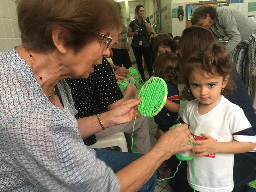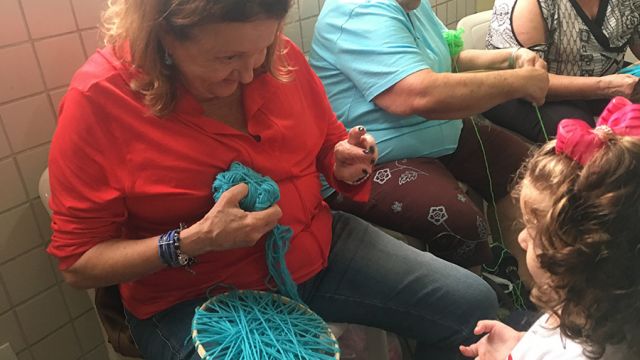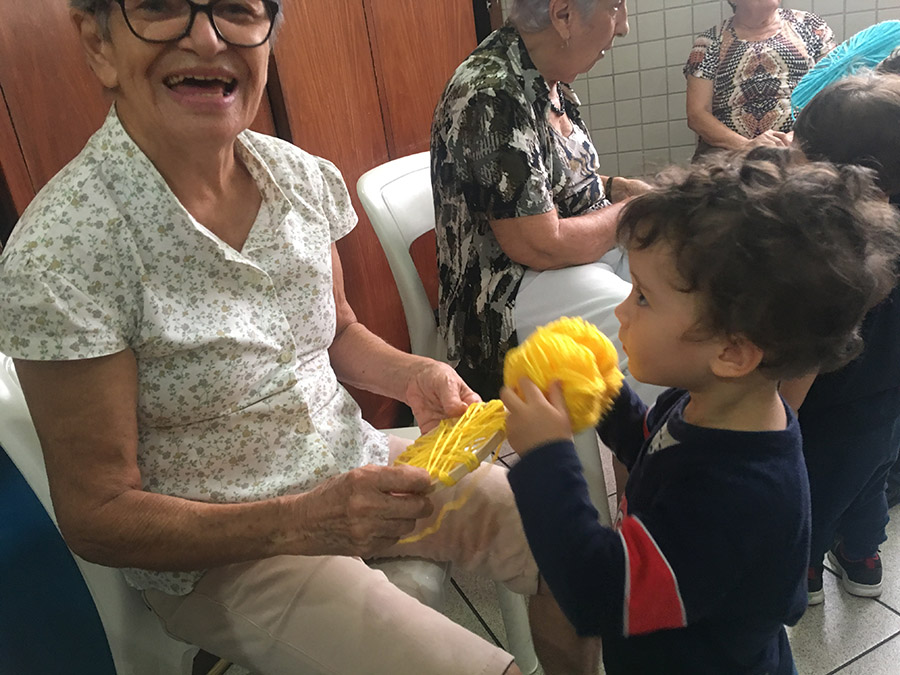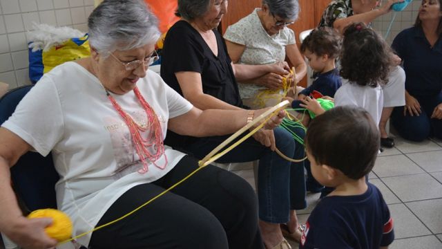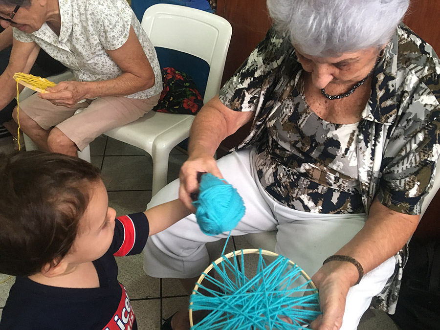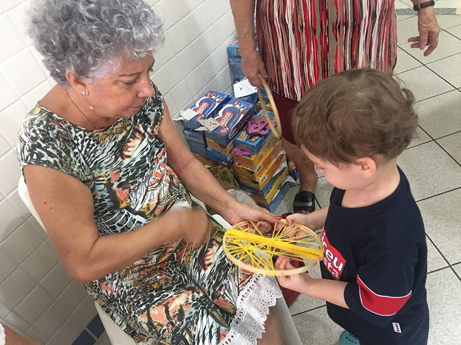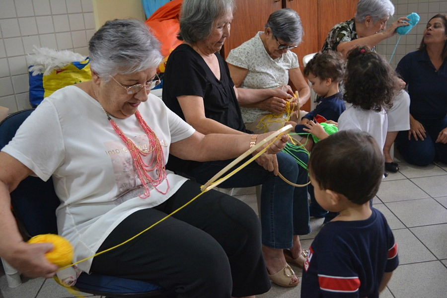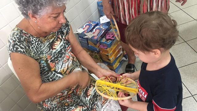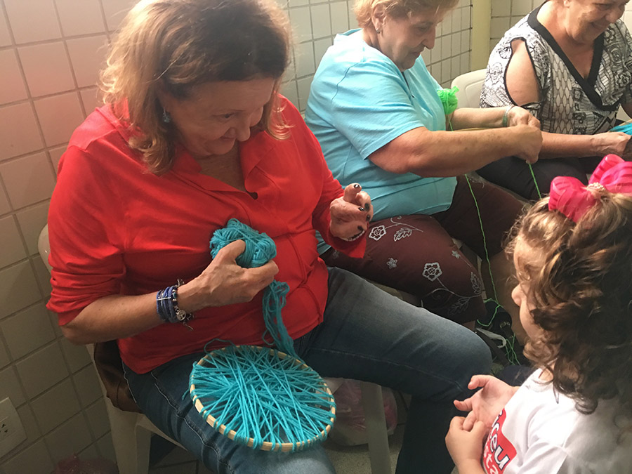 Foi essa ideia de carinho que permeou os encontros dos liceístas pela escola. No lugar do polvo, simbolicamente foram utilizados bastidores de madeira, que, trançados com lã, formaram mandalas coloridas. A cada parada, o mantra “Recebo o seu amor enquanto você recebe o meu” era recitado tanto pelos pequeninos quanto por quem era convidado a integrar a atividade. Um momento especial foi a participação das vovós do projeto “Vamos Tricotar”, tão envolvidas com a arte das agulhas para ajudar o próximo.