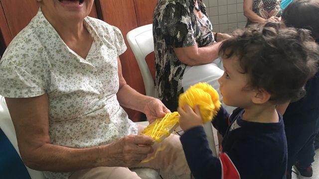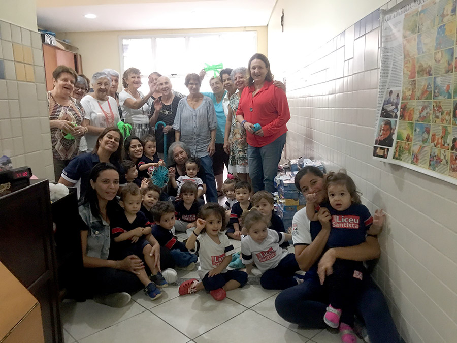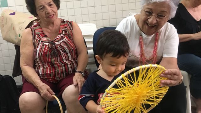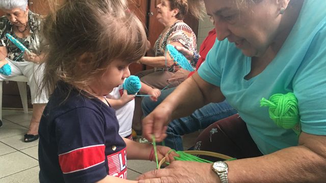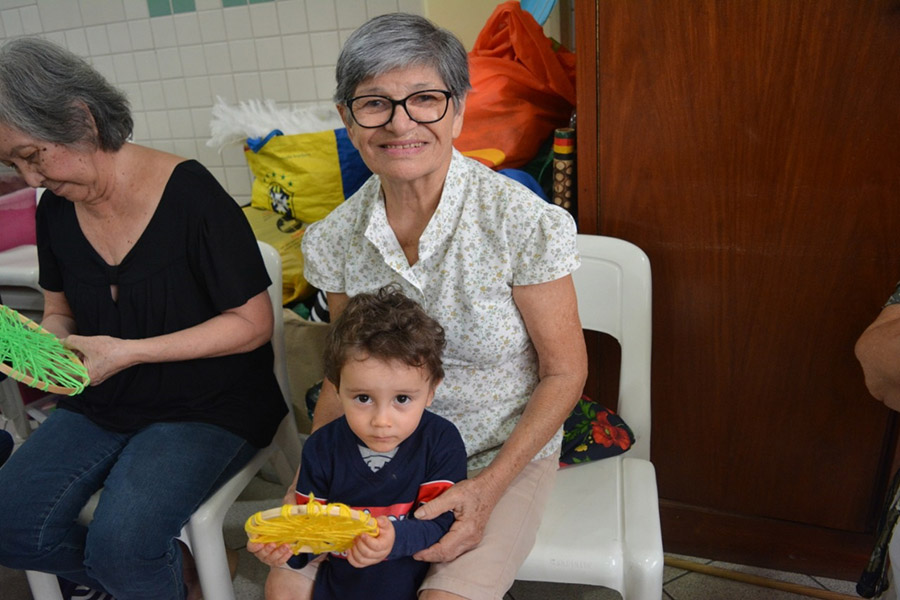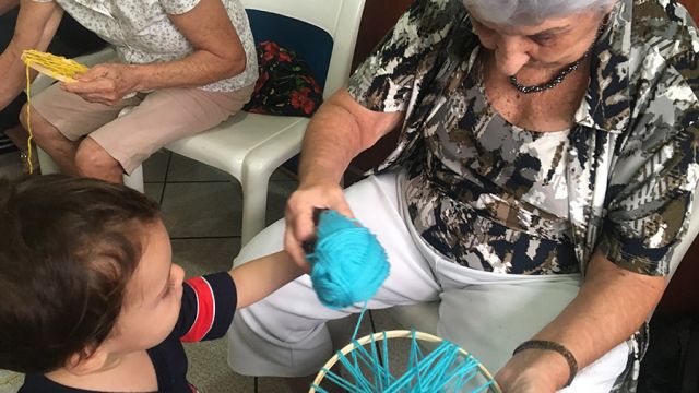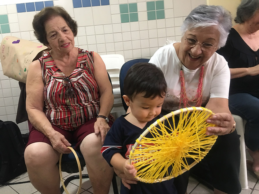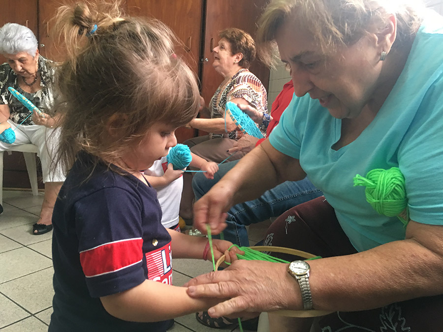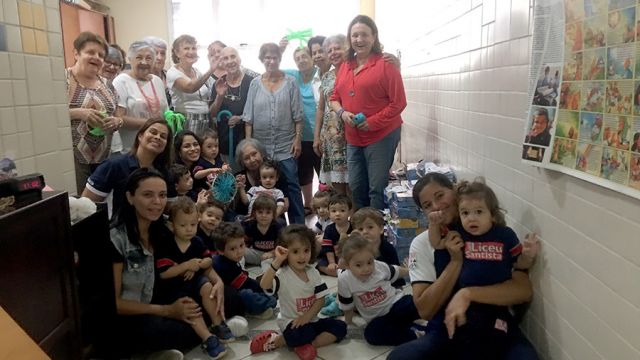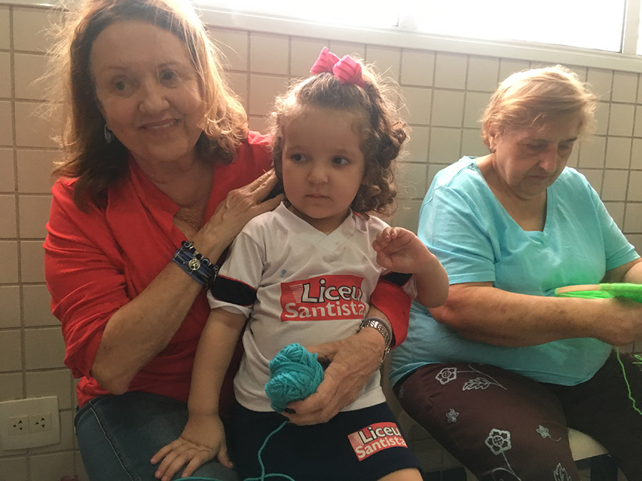 Foi essa ideia de carinho que permeou os encontros dos liceístas pela escola. No lugar do polvo, simbolicamente foram utilizados bastidores de madeira, que, trançados com lã, formaram mandalas coloridas. A cada parada, o mantra “Recebo o seu amor enquanto você recebe o meu” era recitado tanto pelos pequeninos quanto por quem era convidado a integrar a atividade. Um momento especial foi a participação das vovós do projeto “Vamos Tricotar”, tão envolvidas com a arte das agulhas para ajudar o próximo.