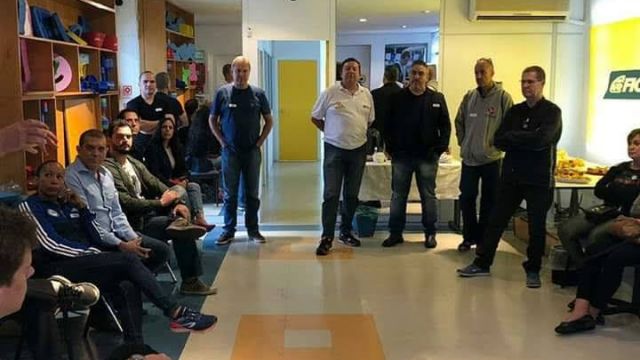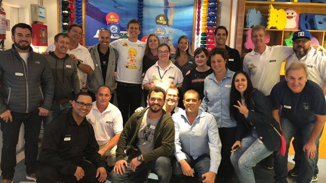 Após as explanações, os professores conheceram as instalações da Fiore Sports, que produz toucas de silicone, óculos, equipamentos para piscina entre outros.