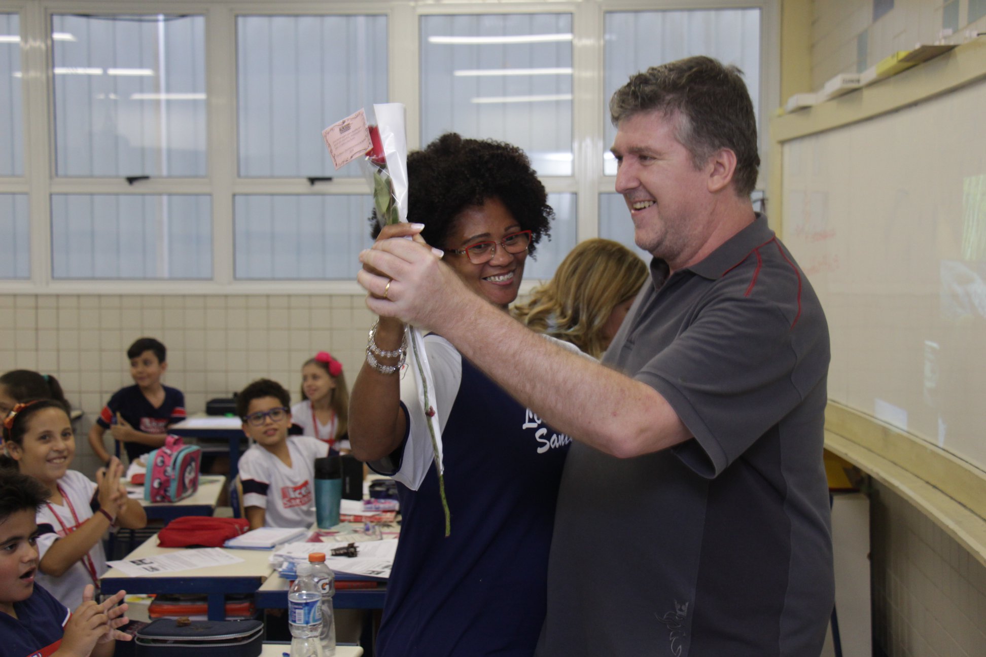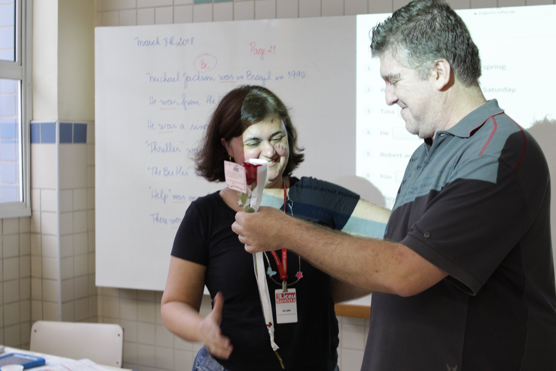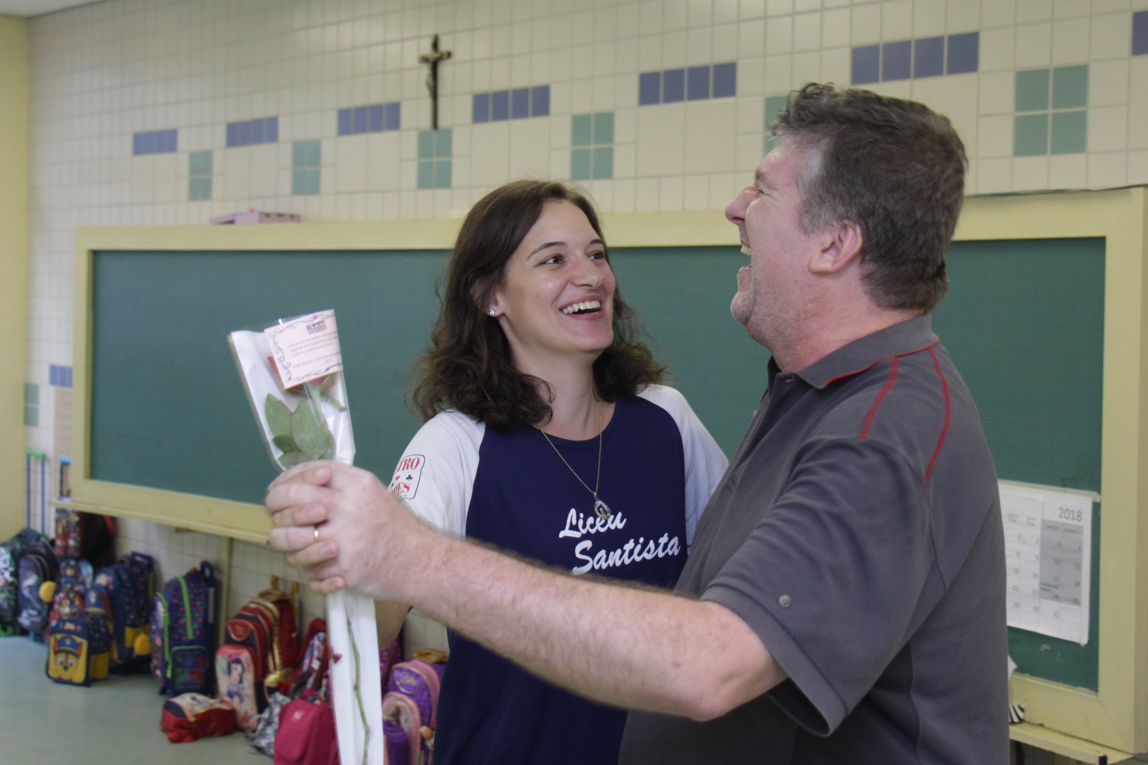 Data de reflexão e de luta pela igualdade de oportunidades, o 8 de março, Dia Internacional da Mulher, foi celebrado no Liceu Santista em forma de homenagem às suas professoras, funcionárias, estagiárias e terceirizadas. Além da entrega do botão de rosa, elas também foram surpreendidas pelo convite para dançar valsa, feito pelo coordenador de Pastoral Sérgio Nogueira Júnior.