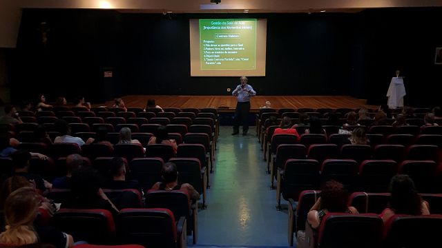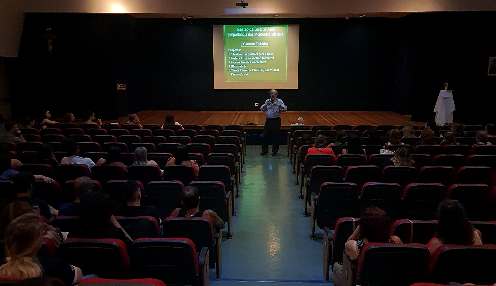 A abertura do encontro foi feita pela diretora, profª Me. Cláudia Cristina Santiago, que discorreu sobre os desafios e as perspectivas para esse ano letivo. Palestrante convidado, o prof. Celso Vasconcellos, doutor em Educação pela USP e mestre em História e Filosofia da Educação pela PUC/SP, trabalhou com o educadores o tema “Gestão da sala de aula”.