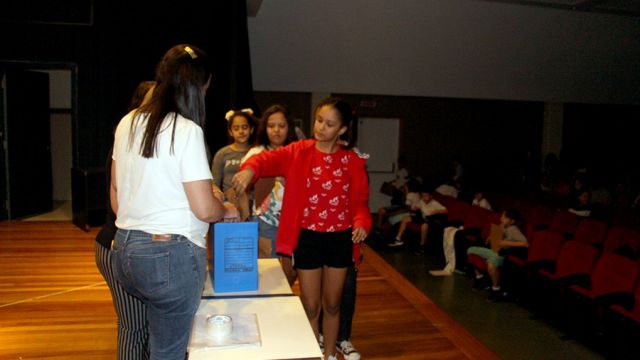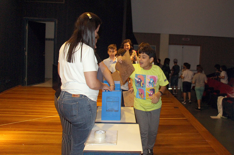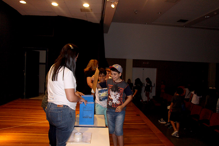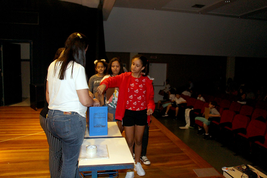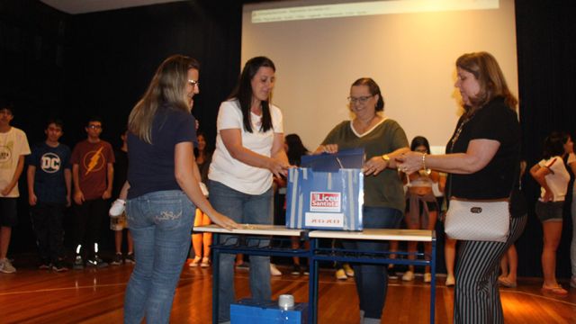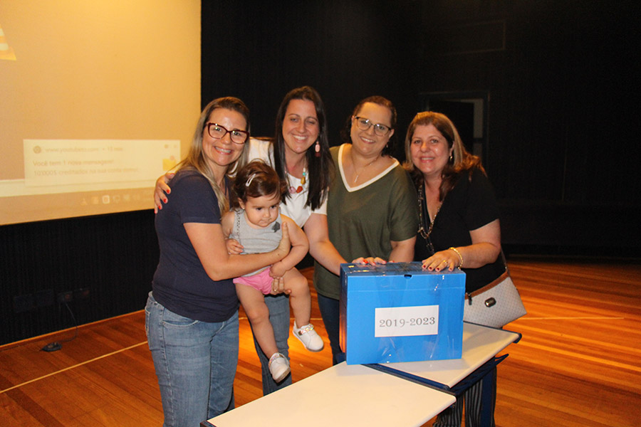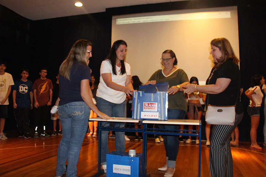 E essa data chegou. A turma que deu início ao projeto – hoje no 9º ano – foi a primeira a abrir a “caixa do tempo”, reviver aquela época em que tinham 10 ou 11 anos e reler seus próprios escritos. Como as professoras dos menores estavam presentes para fechar a caixa do 5º ano, houve um lindo reencontro delas com os seus ex-alunos do Fundamental 1. As famílias foram convidadas para assistir a essa última etapa do projeto, confraternizando o final do ano letivo.