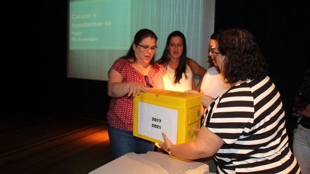 Todos os envelopes com as cartas, fotos e outras produções foram acondicionados em uma caixa e lacrada pelas atuais professoras do 5º ano. Essa “cápsula do tempo” ficará guardada na escola e voltará a ser aberta como parte de um projeto na disciplina de Ensino Religioso.