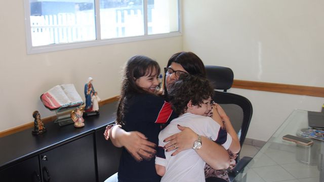 Para o Enzo, ela “é legal e tem uma educação que é de nível máximo”. Opinião compartilhada pela Rafaela, que diz se encontrar com a diretora pela escola e até passeando no shopping. “Ela é calma, não briga nunca com as pessoas.”