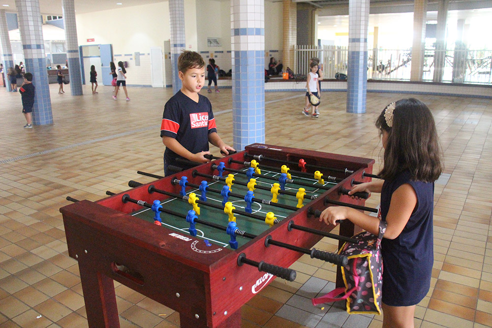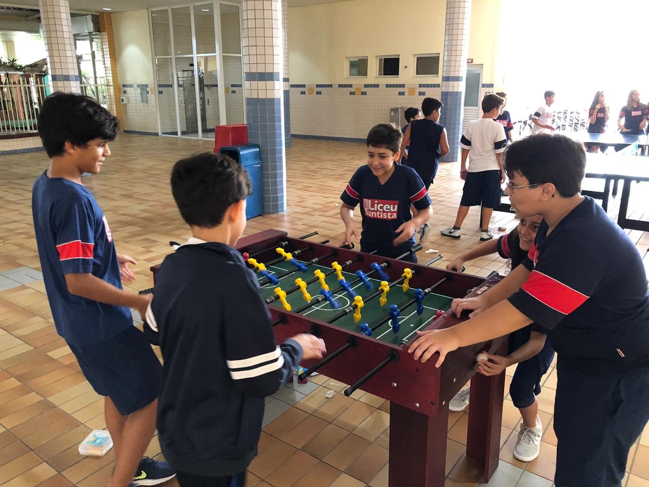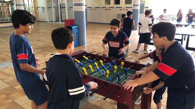 O intervalo entre as aulas é curto, mas sempre é possível aproveitá-lo ao máximo. Com organização e escolhas conscientes, como reservar um tempo para lanchar e relaxar um pouquinho, é possível desfrutar de experiências significativas com a nova opção disponibilizada pelo Liceu Santista em parceria com o Grêmio Estudantil: mesas de pebolim e de ping-pong no pátio.
