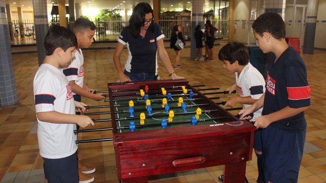 Recreios mais animados com mesas de pebolim e ping-pong