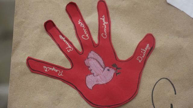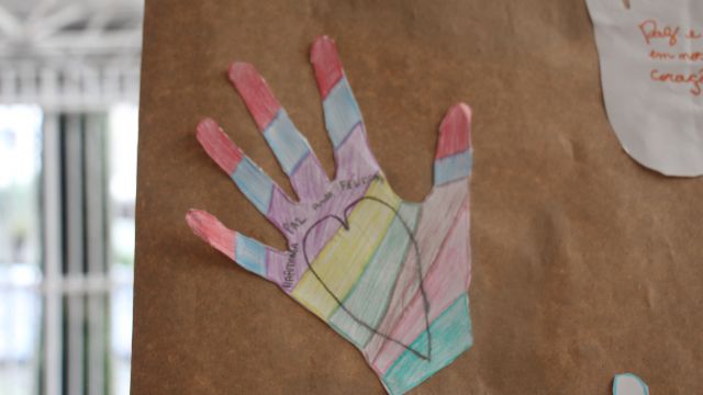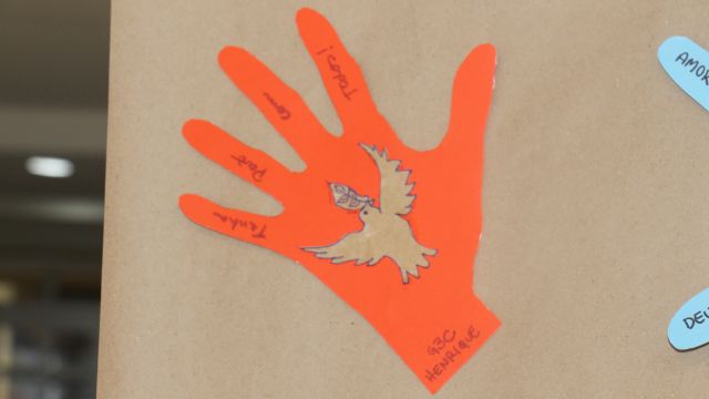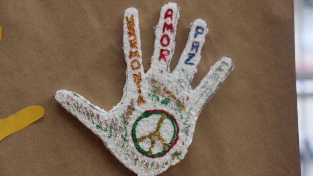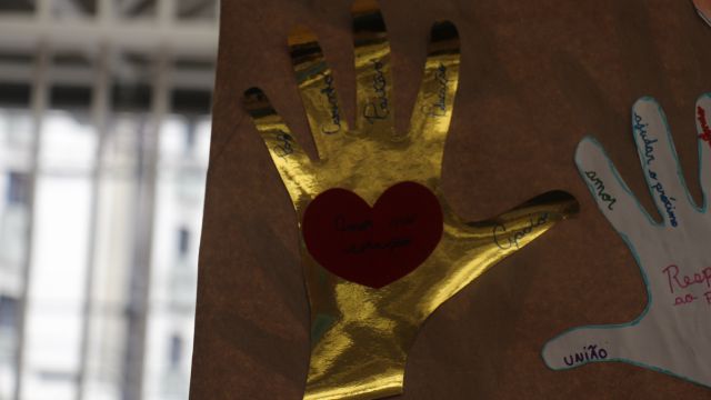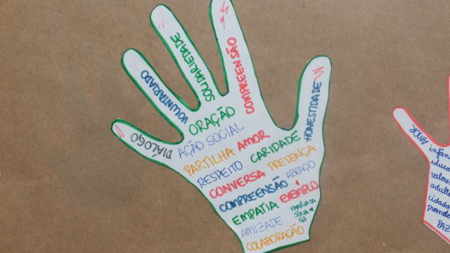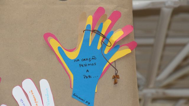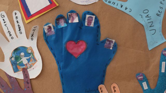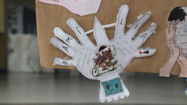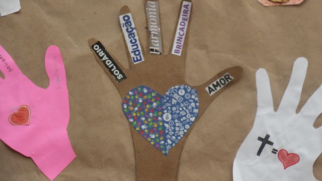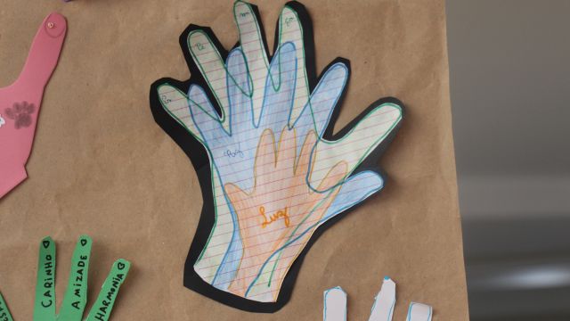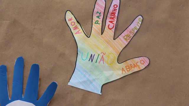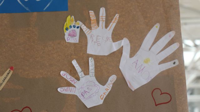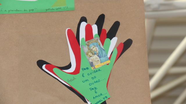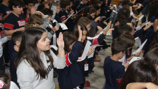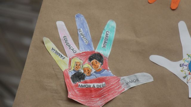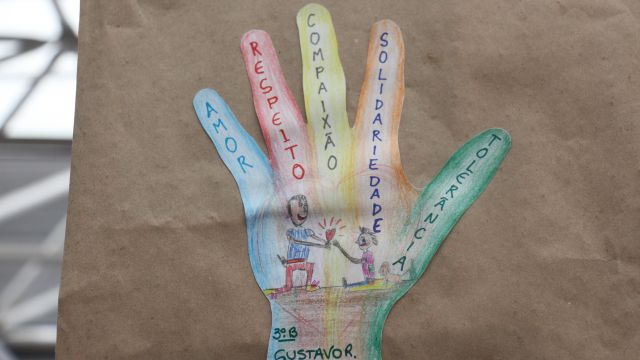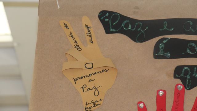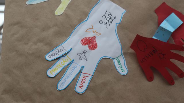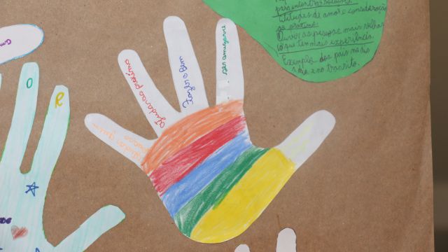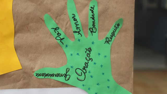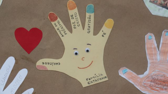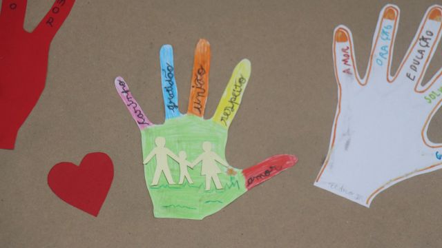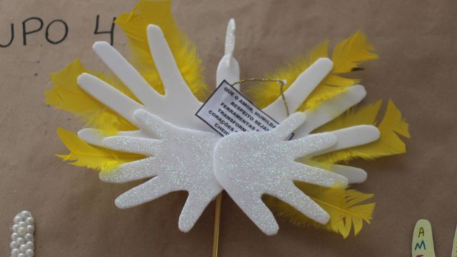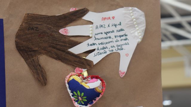 Que valores sua família acredita serem importantes para um mundo de paz? Será que não está nas mãos de cada um ajudar um pouquinho para que tenhamos uma sociedade mais fraterna? Foi a partir de indagações com essas, inspiradas no tema da CF 2018, Fraternidade e Superação da Violência, que as famílias dos alunos da Educação Infantil e do Ensino Fundamental 1 colocaram seus melhores sentimentos nas palmas de centenas de mãozinhas de papel que coloriram a entrada da escola no encerramento da Semana da Família.
