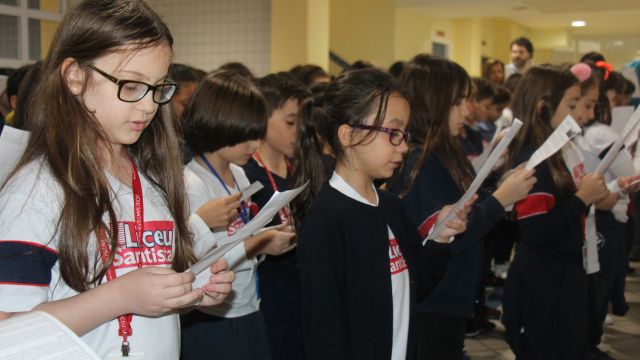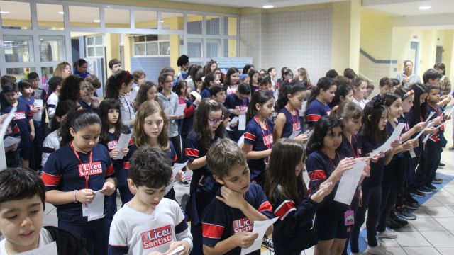 A atividade integrou a programação da Semana da Família, realizada no Liceu Santista entre os dias 13 e 17 de agosto. Sob a supervisão do coordenador de Pastoral, Sérgio Pereira Nogueira Júnior, na sexta-feira, alunos e familiares reuniram-se para um momento de música e oração.