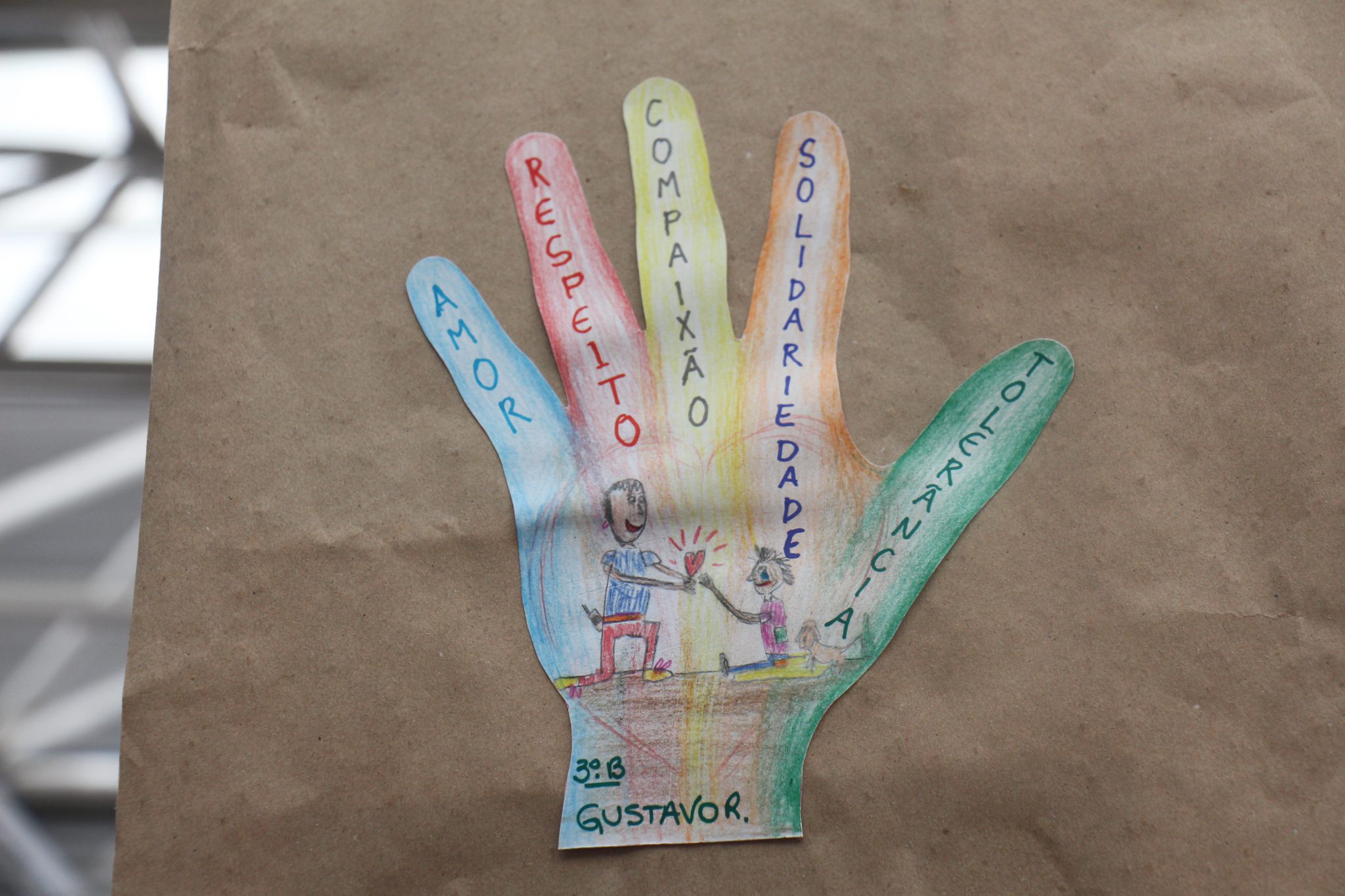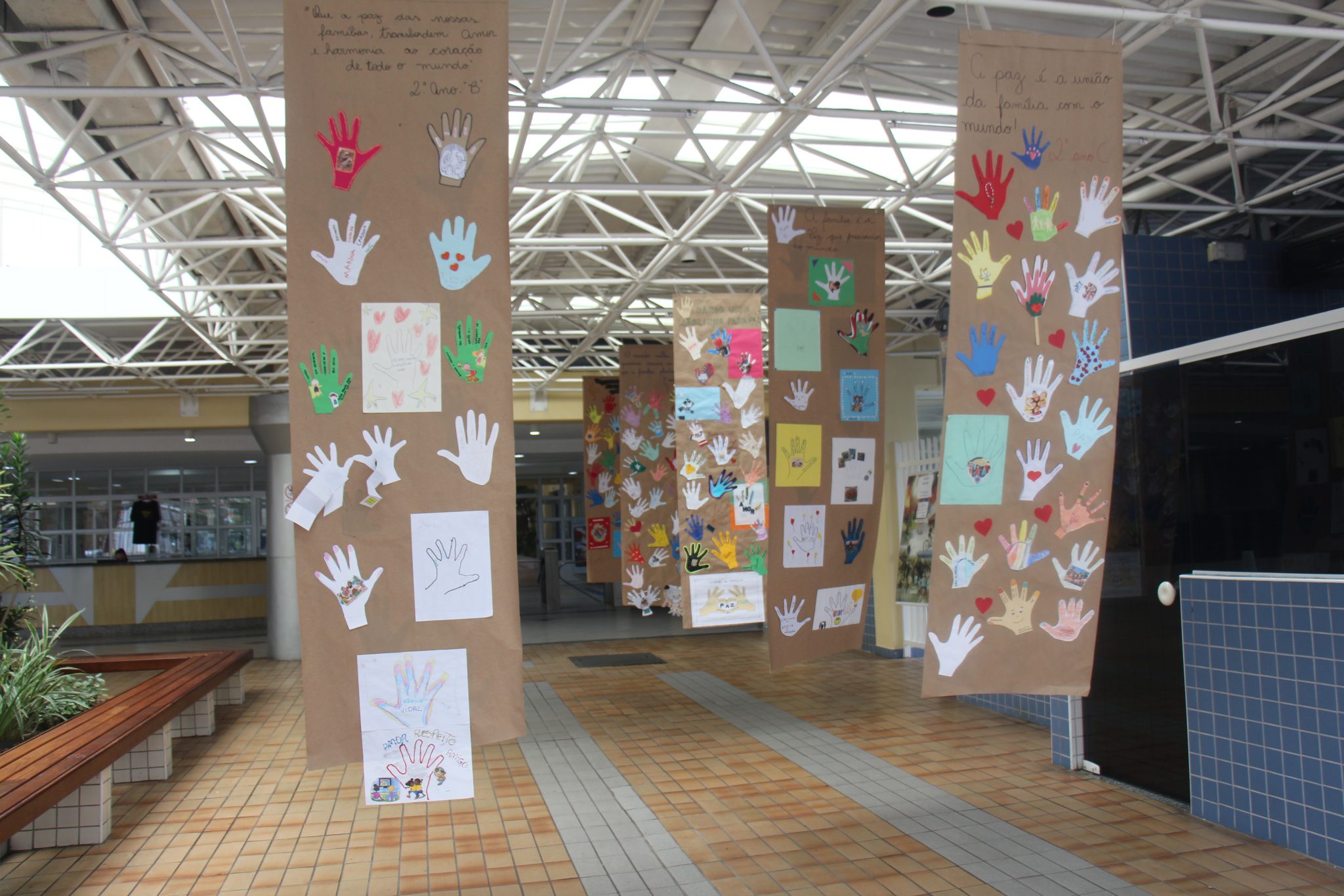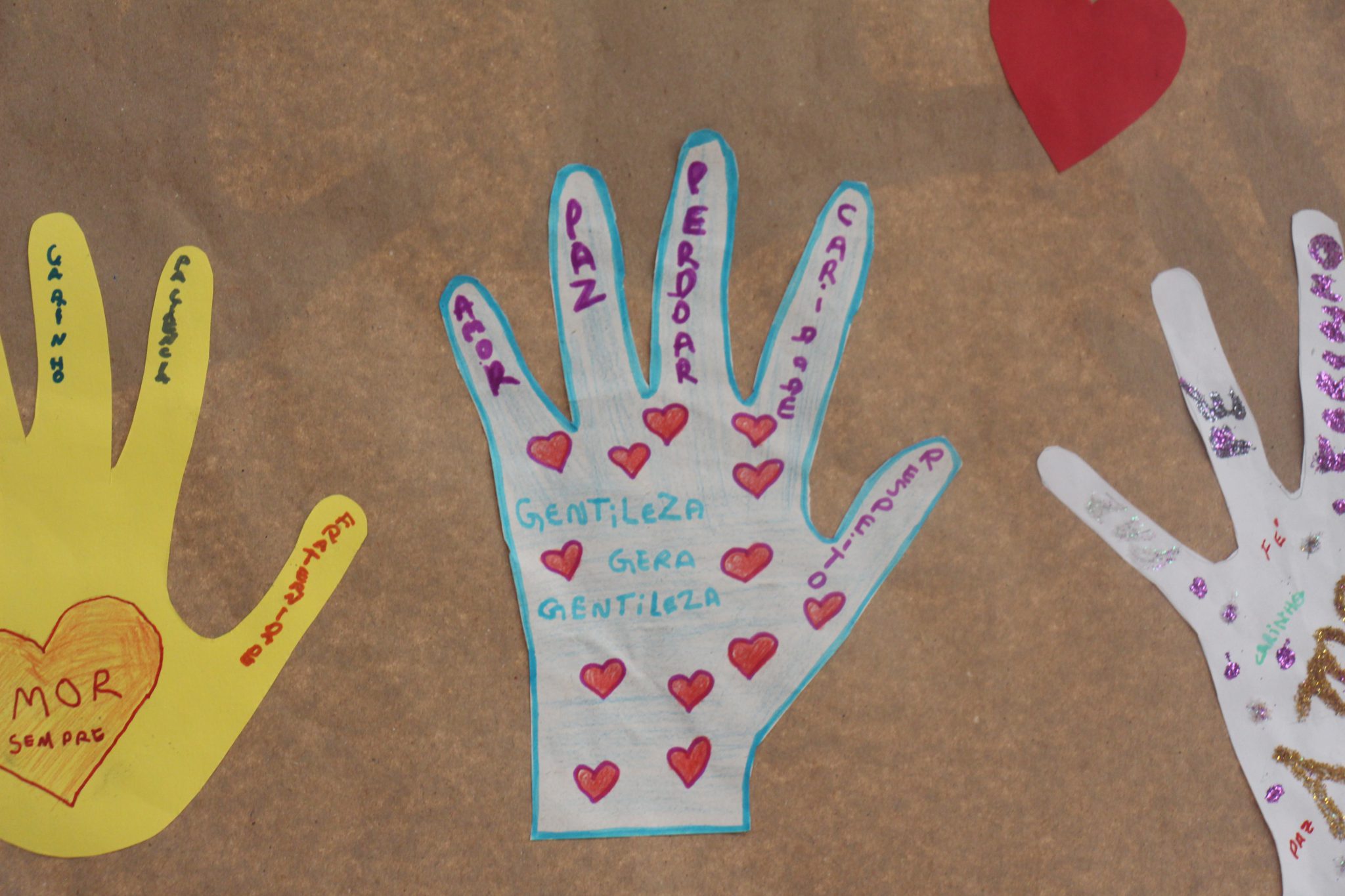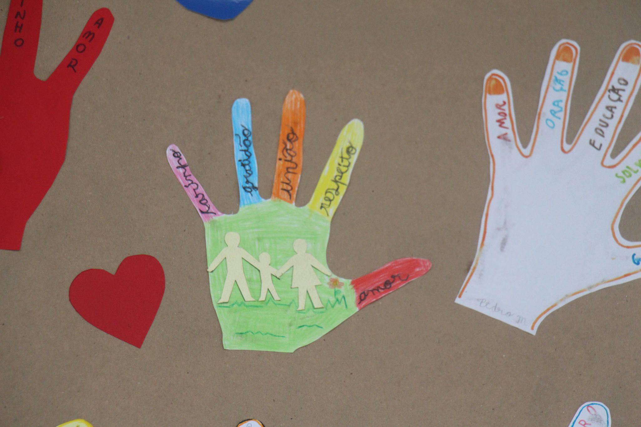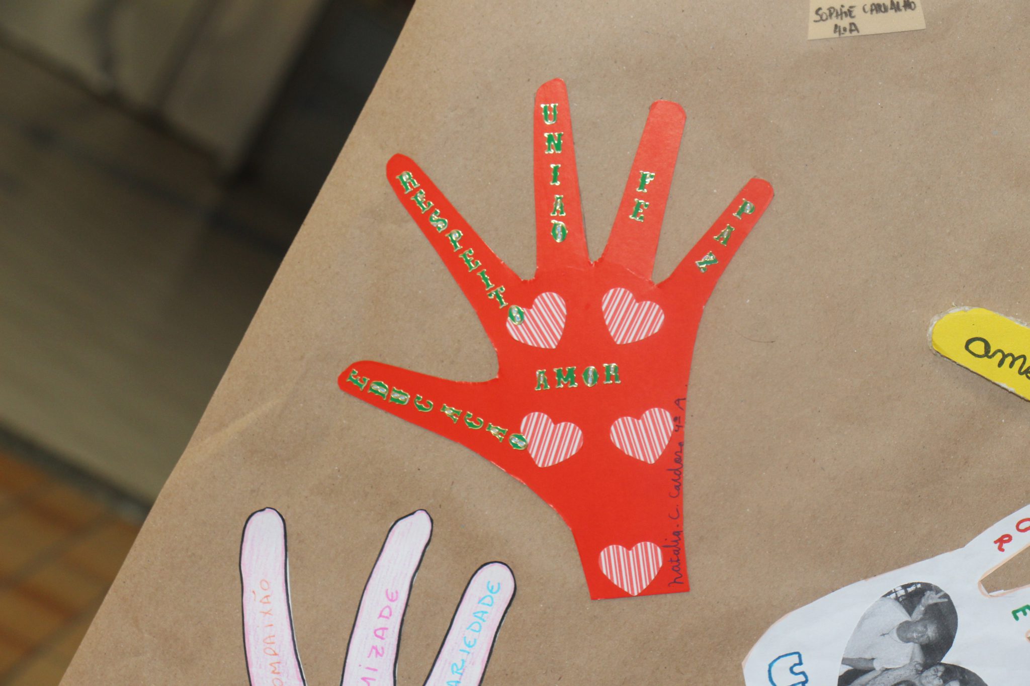 Que valores sua família acredita serem importantes para um mundo de paz? Será que não está nas mãos de cada um ajudar um pouquinho para que tenhamos uma sociedade mais fraterna? Foi a partir de indagações com essas, inspiradas no tema da CF 2018, Fraternidade e Superação da Violência, que as famílias dos alunos da Educação Infantil e do Ensino Fundamental 1 colocaram seus melhores sentimentos nas palmas de centenas de mãozinhas de papel que coloriram a entrada da escola no encerramento da Semana da Família.